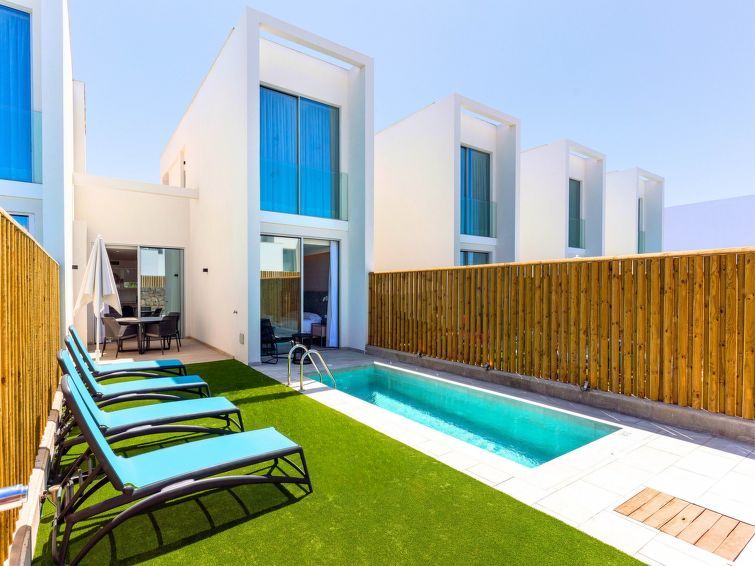 "Deluxe Duplex-Cordial Santa Águeda", 3-room apartment 86 m2 on 2 levels. Object suitable for 4 adults + 2 children. Comfortable and luxurious furnishings: living/dining room with 1 double sofabed (80 cm, length 200 cm), satellite TV, digital TV and air conditioning. Exit to the patio, to the swimming pool.