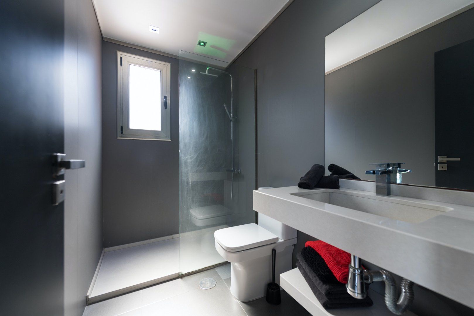 Large windows and glass doors bring plenty of natural light into the interior and this asset works particularly well with the wealth of reflective surfaces and stark white walls. There's a preference for minimalism in everything from the sleek kitchen to the pared-back approach to decoration, and we think the host has nailed it.