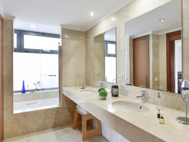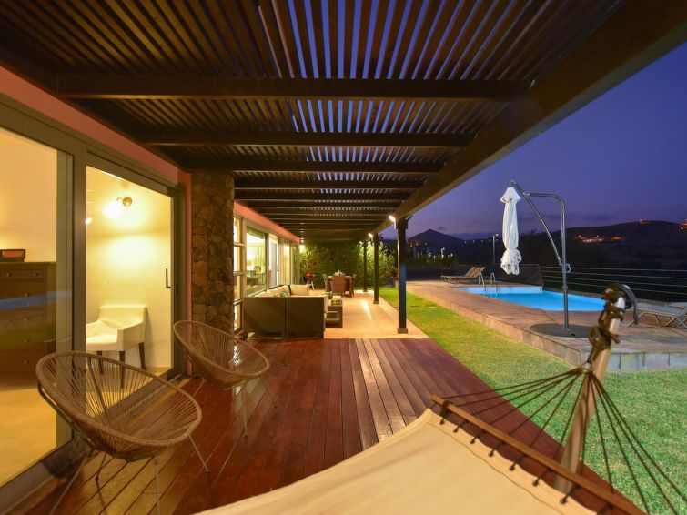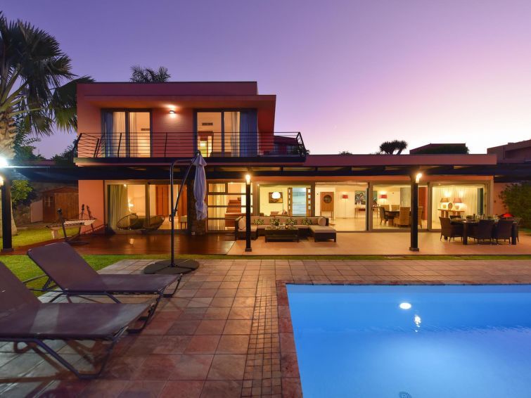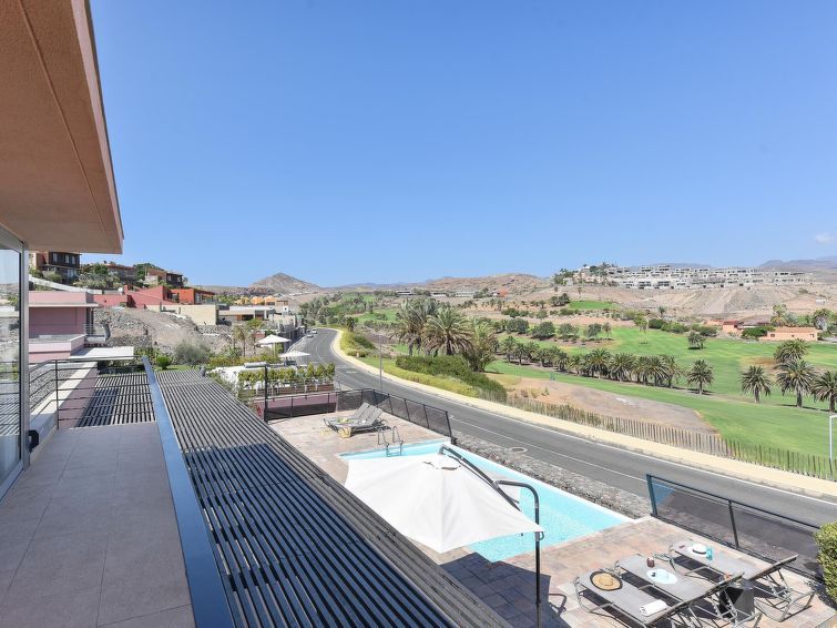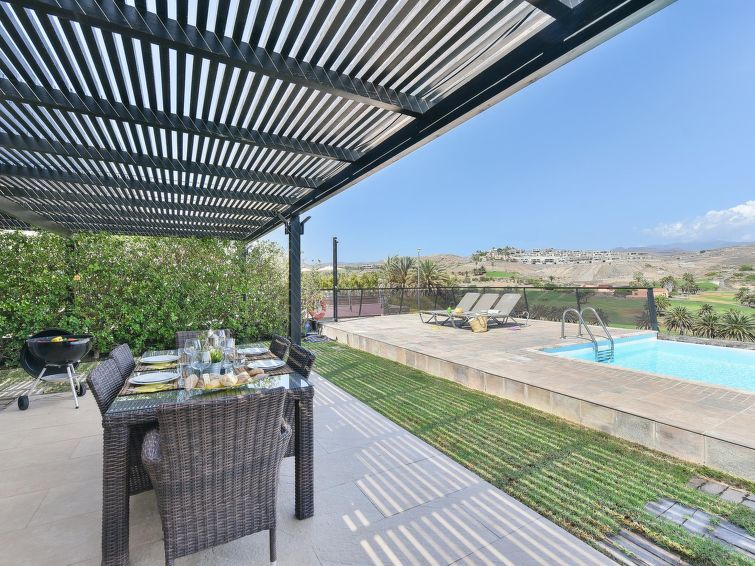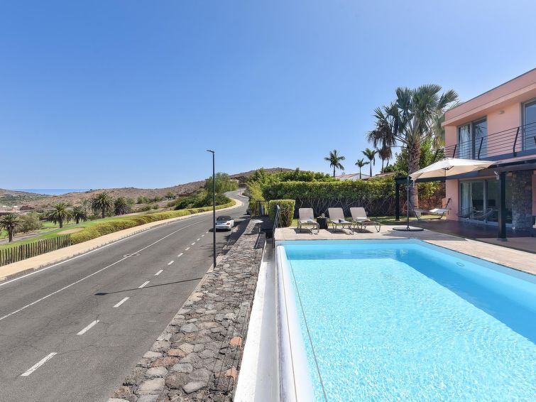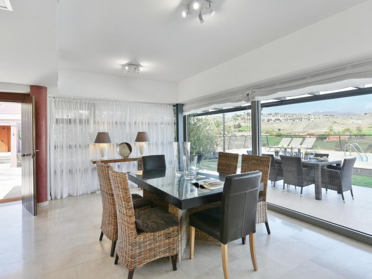 "Salobre Villa 2", 5-room house 200 m2. Living/sleeping room with TV and air conditioning. Exit to the patio with 1 double bed and shower/WC. Exit to the patio with 1 double bed and shower/WC with 2 beds and bathroom. Kitchen (oven, dishwasher, 3 ceramic glass hob hotplates, microwave, freezer) with dining table.