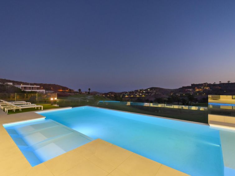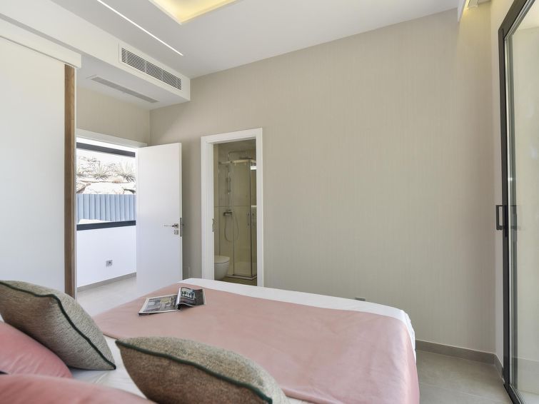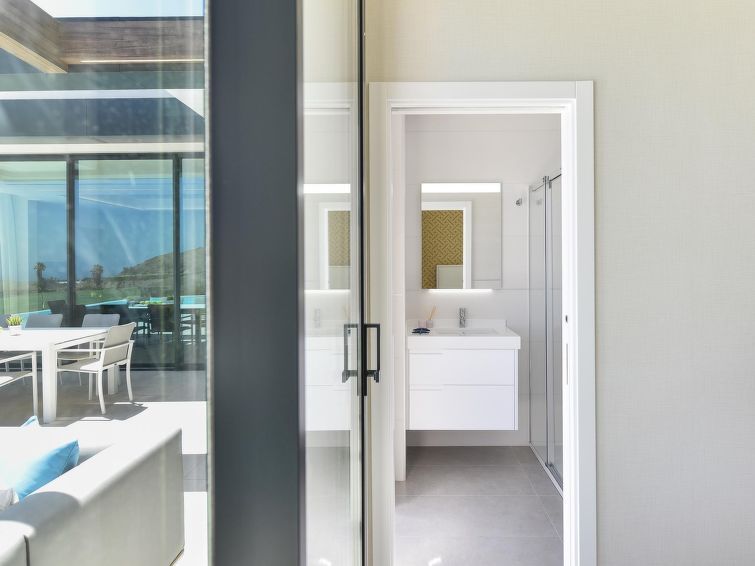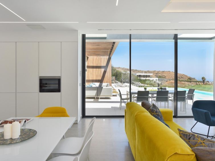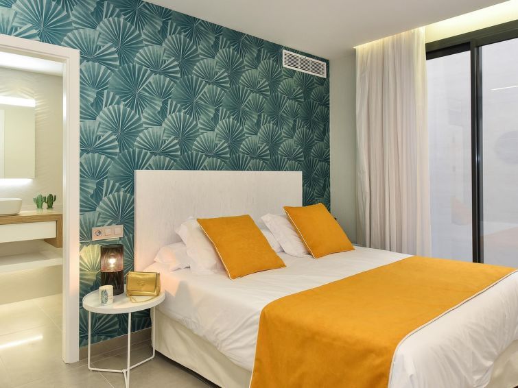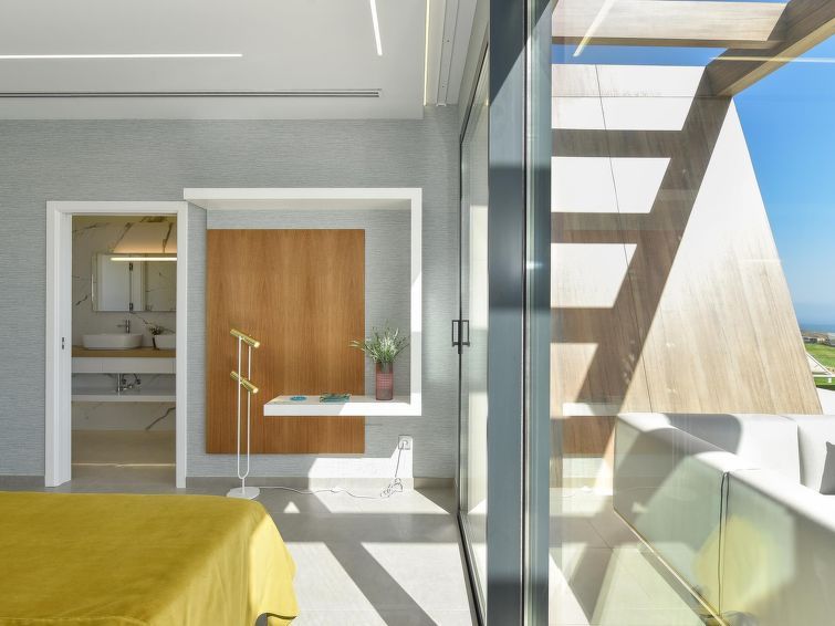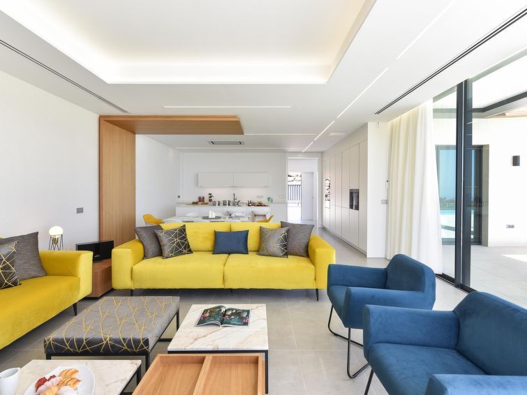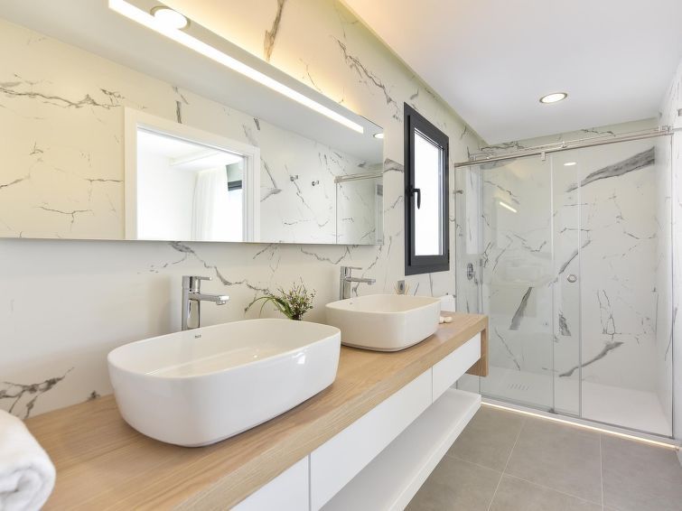 "Sunset 12PAX", 7-room house 480 m2 on 2 levels. Modern and luxurious furnishings: living/dining room with dining table, cable TV, digital TV and air conditioning. Exit to the patio. 3 rooms, each room with 1 french bed, shower/WC and air conditioning. 3 rooms, each room with 2 beds, shower/WC and air conditioning.