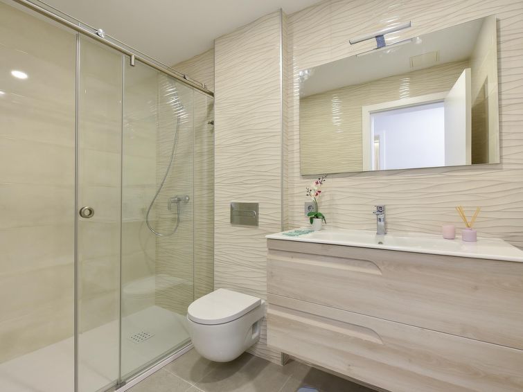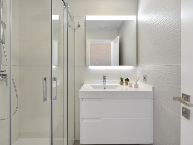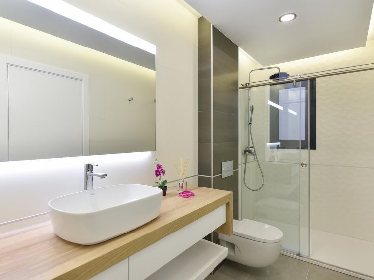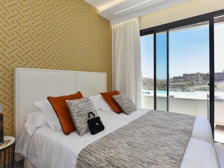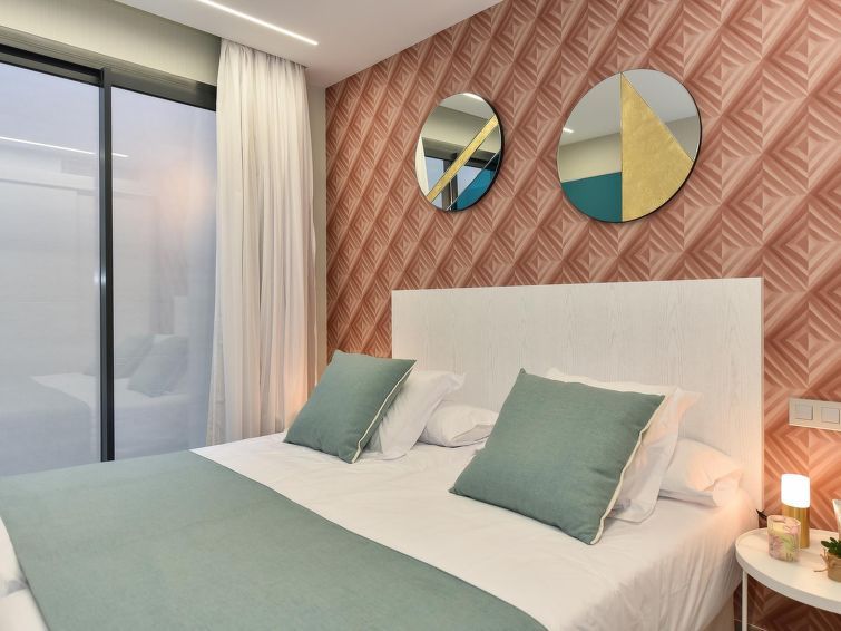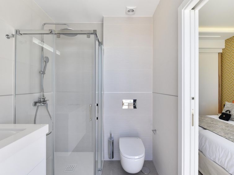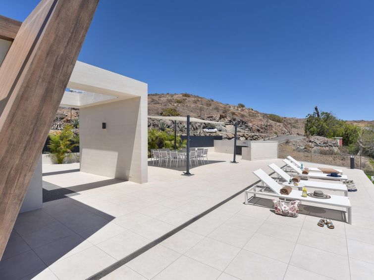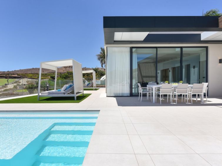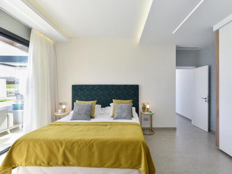 "Sunset 12PAX", 7-room house 480 m2 on 2 levels. Modern and luxurious furnishings: living/dining room with dining table, cable TV, digital TV and air conditioning. Exit to the patio. 3 rooms, each room with 1 french bed, shower/WC and air conditioning. 3 rooms, each room with 2 beds, shower/WC and air conditioning.