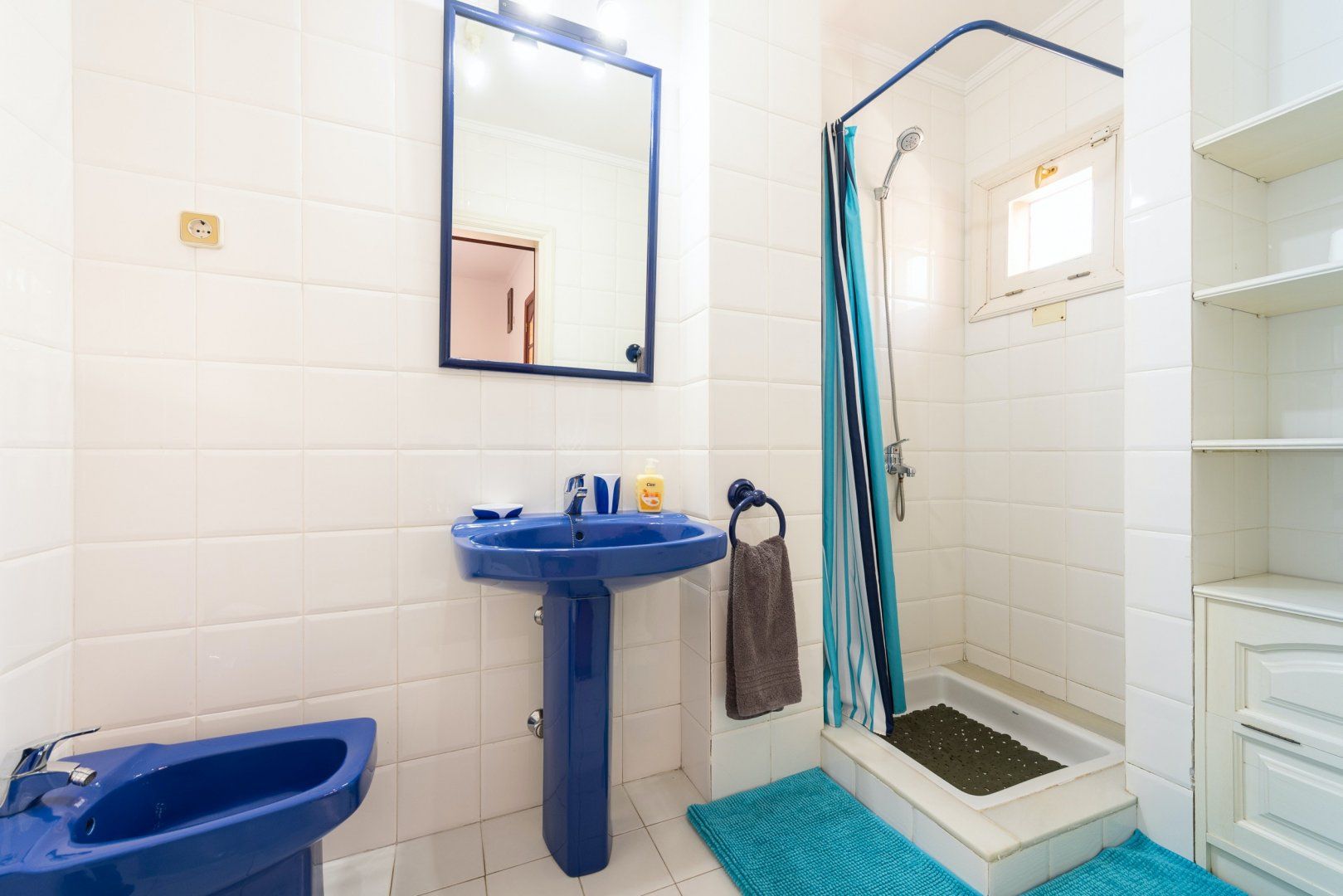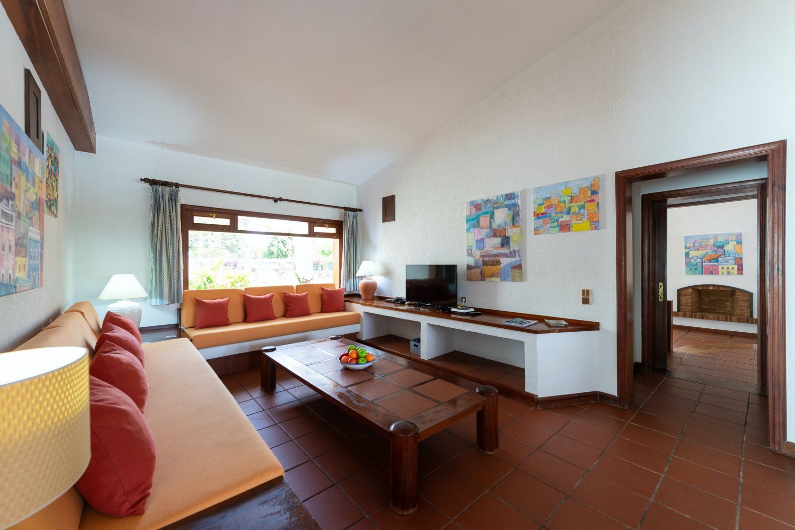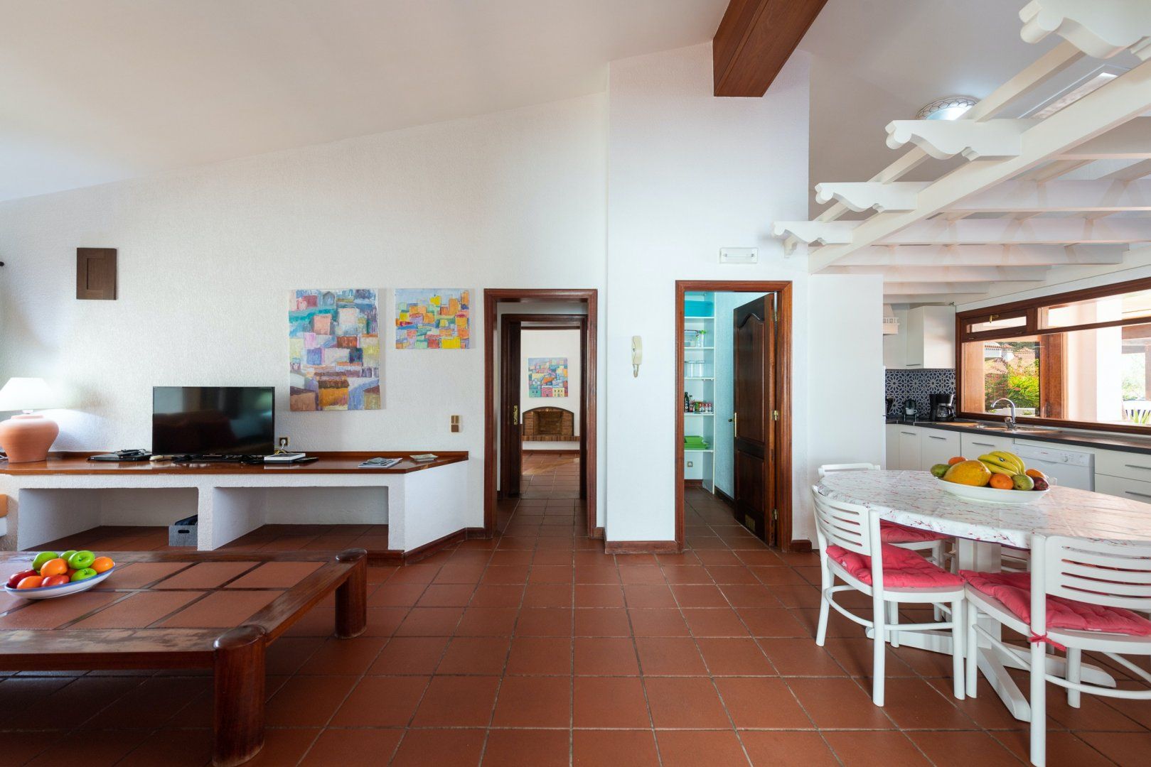 A huge open-plan living space – decorated in white walls and with tinges of colour on the furniture – is perfect for spending time as one group. However, when the sun sets on the terracotta tiles, you probably want to spend time outdoors.