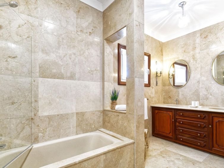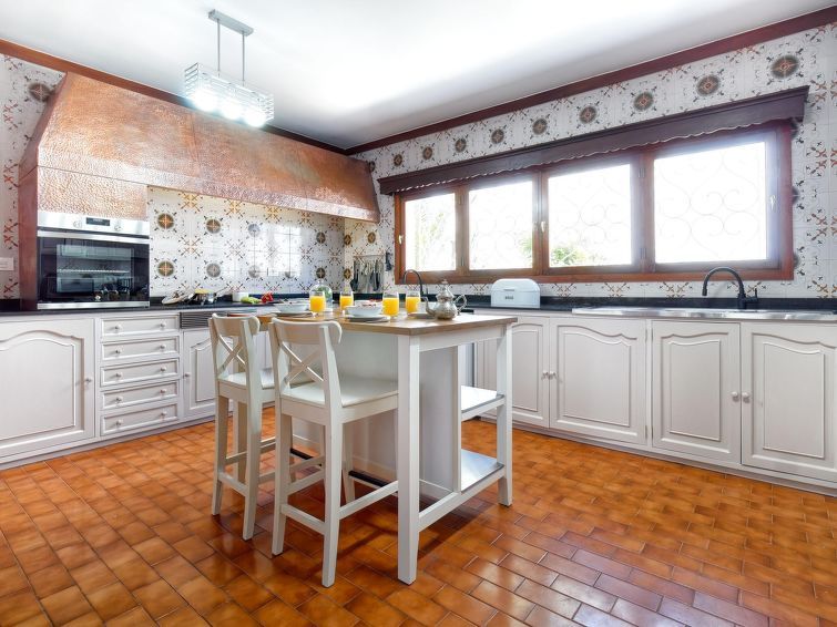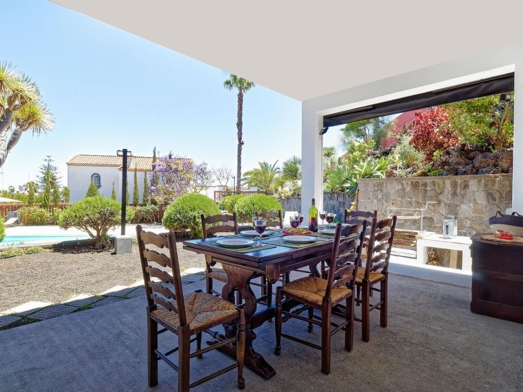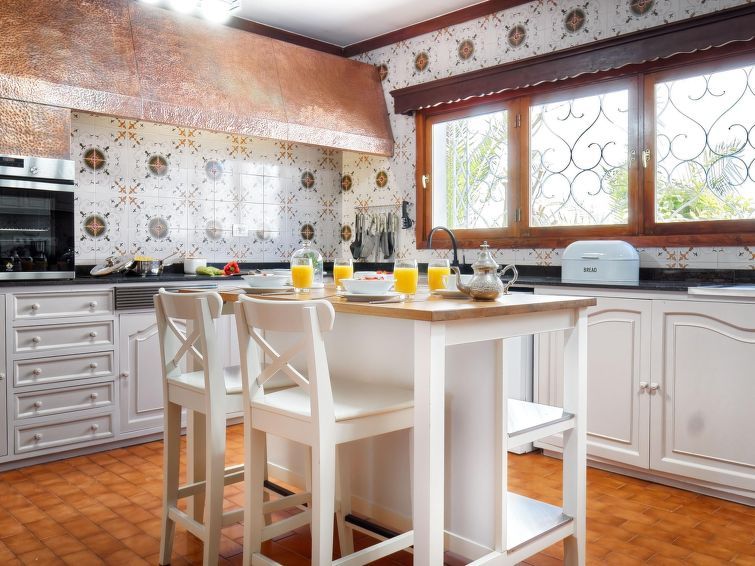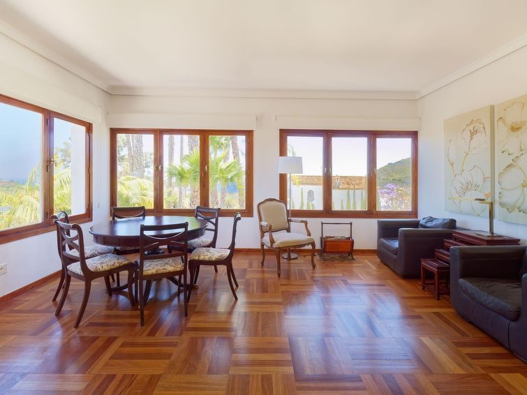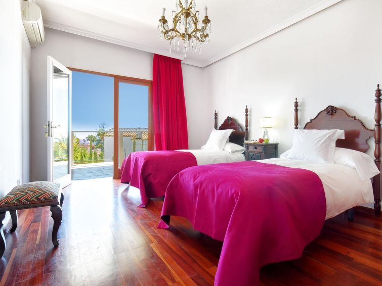 "La Ideal", 6-room house 500 m2. Rustic and antique furnishings: living/dining room with dining table, digital TV and air conditioning. Exit to the patio. 1 room with 1 french bed and bath/WC. 2 rooms, each room with 1 french bed. 2 rooms, each room with 2 beds and air conditioning.