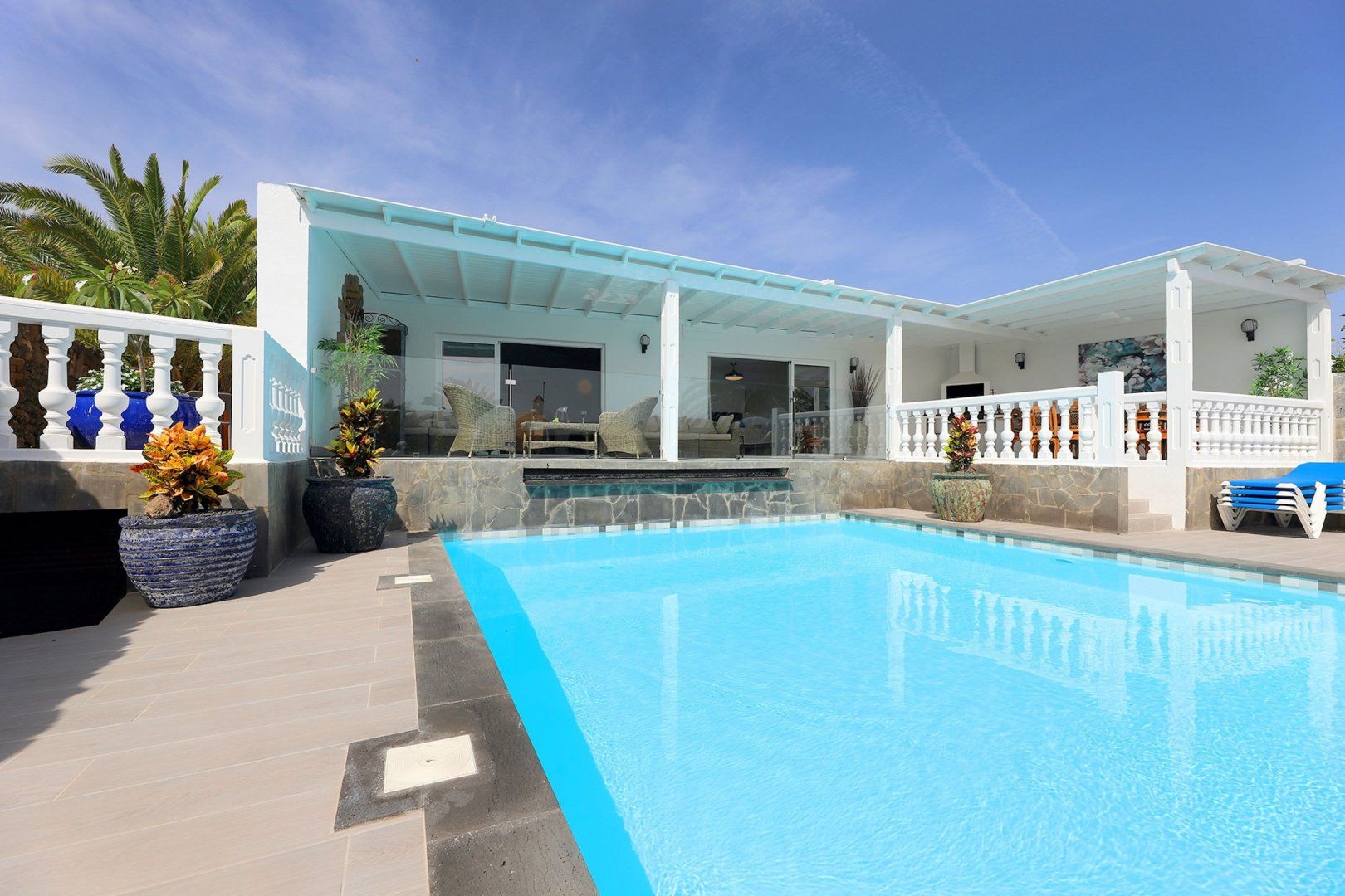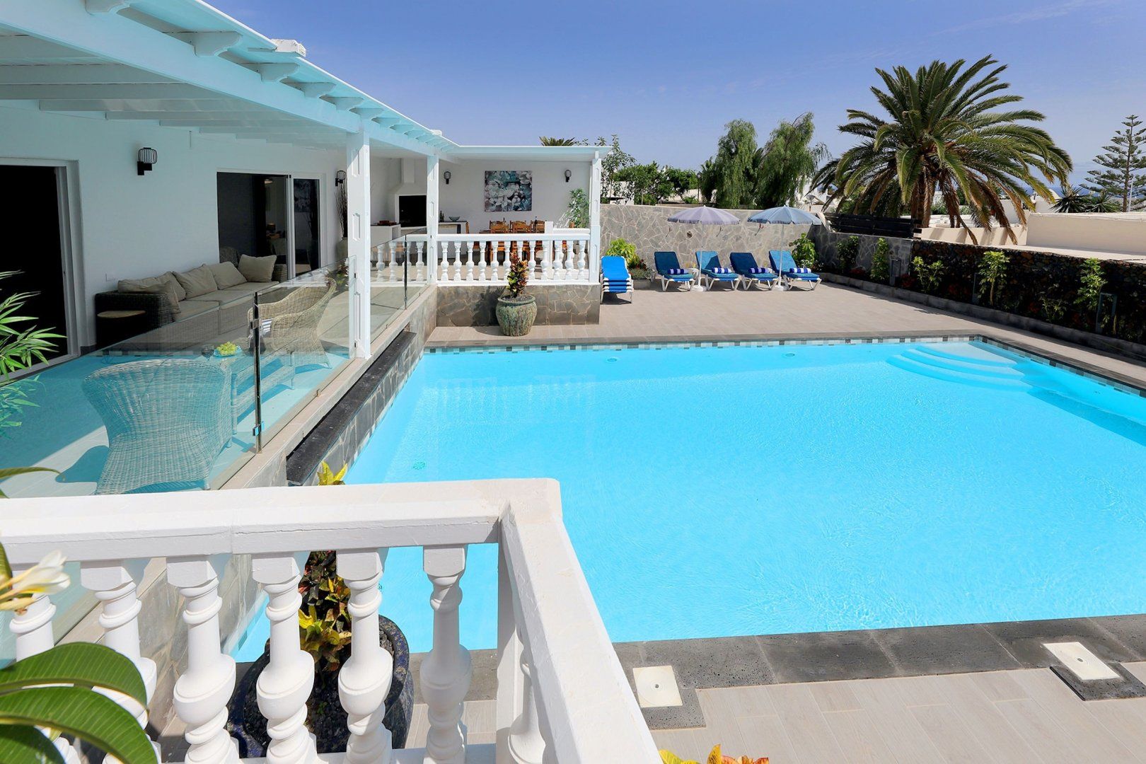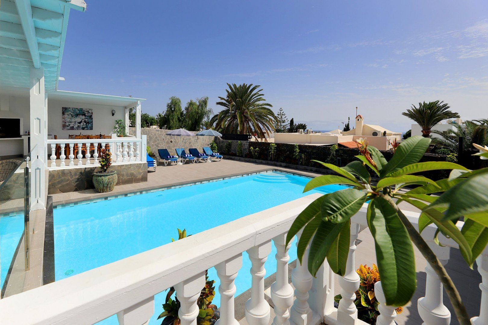 A gorgeous pool and a shaded alfresco area await guests at this large home in southern Lanzarote – perfect for that long-awaited friend reunion or family getaway. While the bedrooms and living room are perfectly functional, if a little light on colour and design, it's the outdoor area that'll get you excited. With plenty of sun loungers and shaded seating, sun lovers and the sun-phobic are equally catered for here. You can feed the troops at the barbeque, or head to one of the nearby eateries, while the nearest beach is less than a mile away.