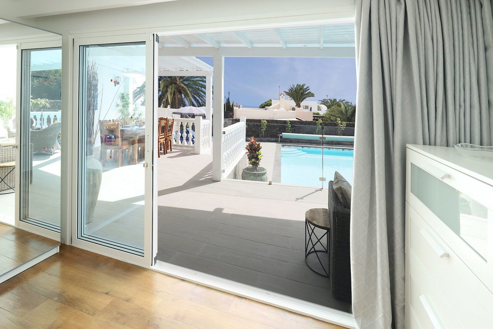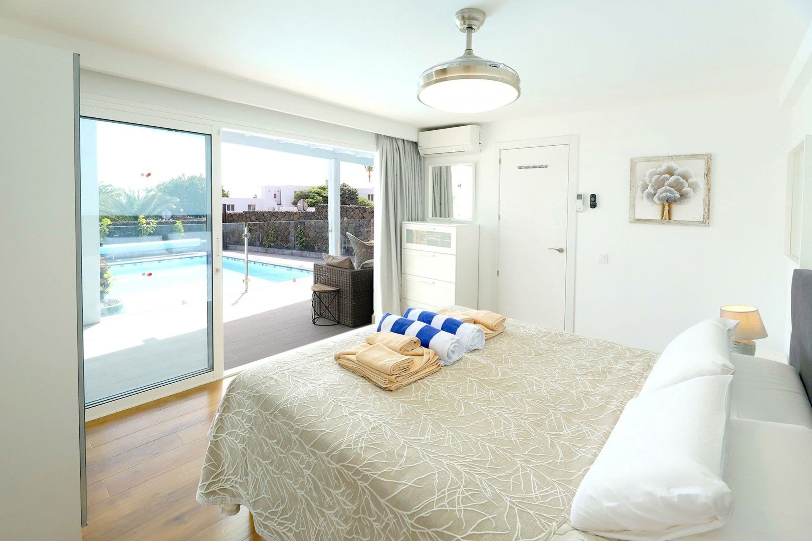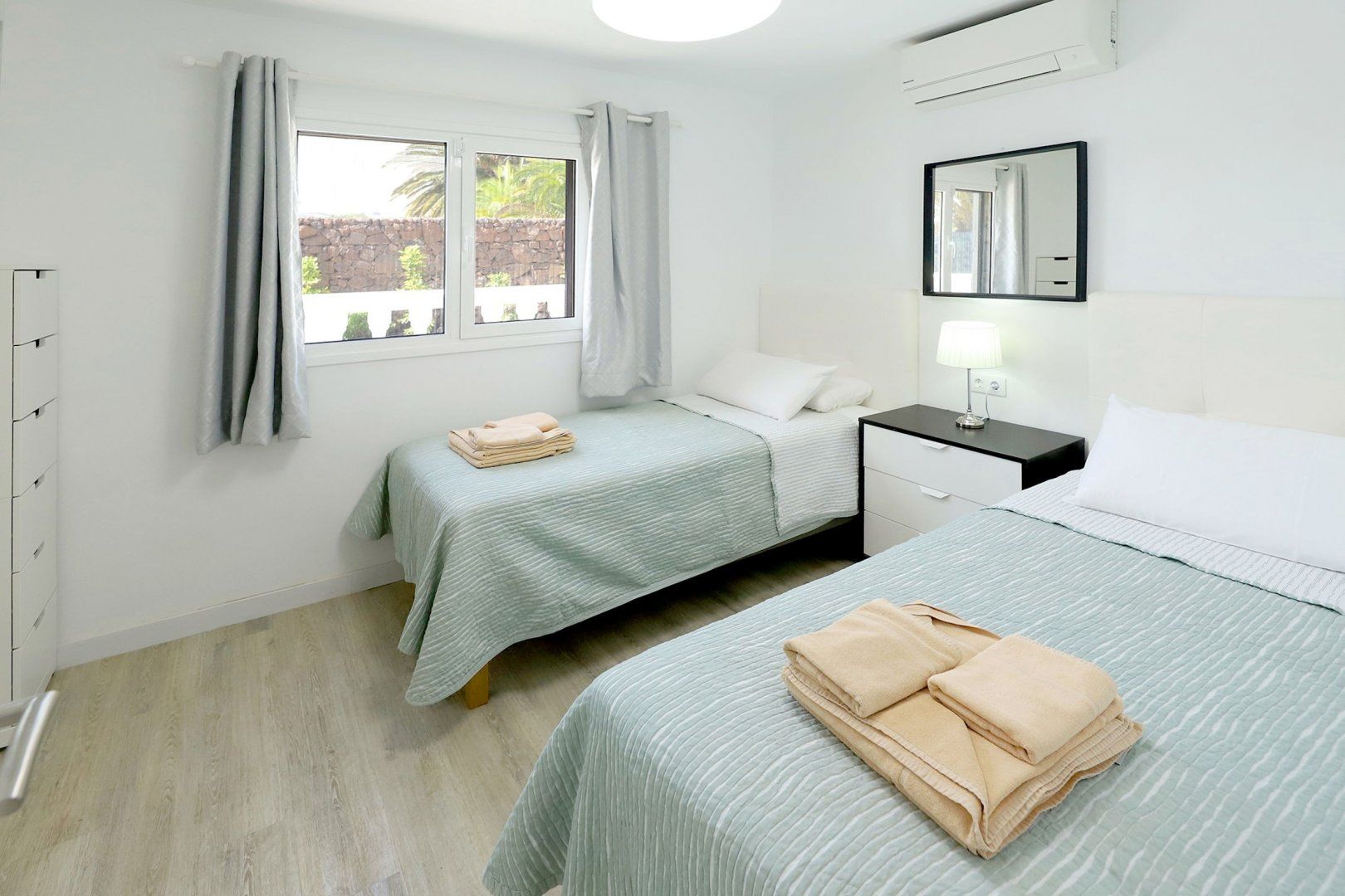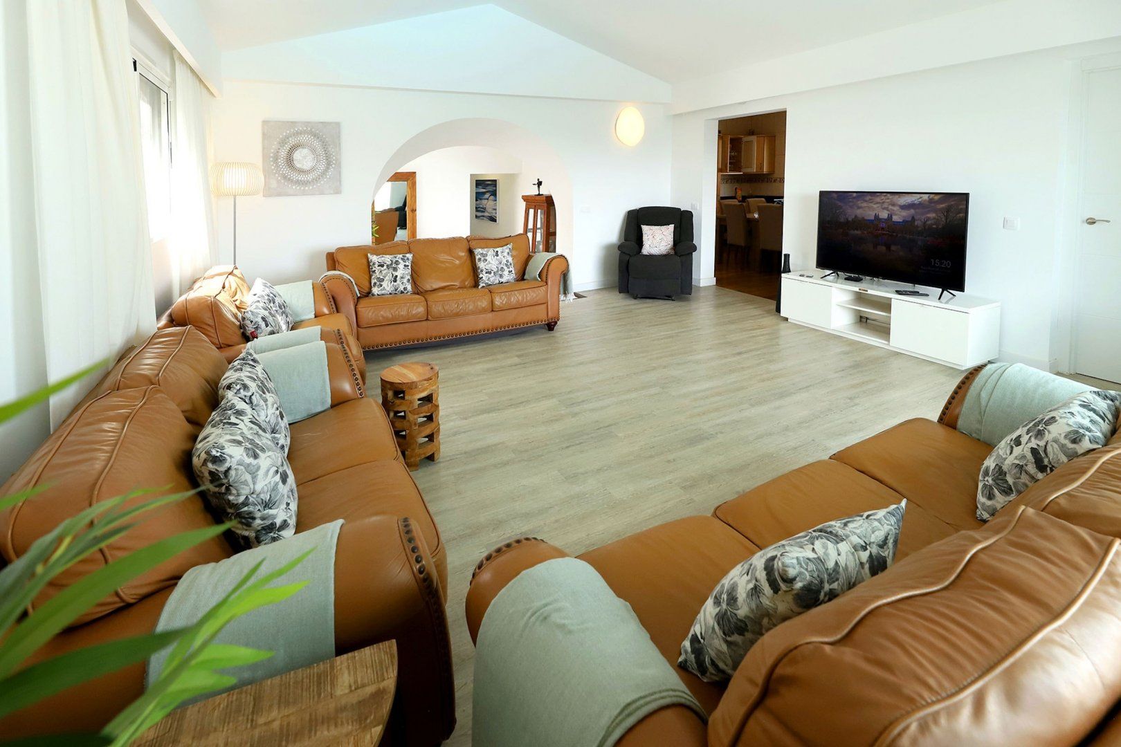 A gorgeous pool and a shaded alfresco area await guests at this large home in southern Lanzarote – perfect for that long-awaited friend reunion or family getaway. While the bedrooms and living room are perfectly functional, if a little light on colour and design, it's the outdoor area that'll get you excited. With plenty of sun loungers and shaded seating, sun lovers and the sun-phobic are equally catered for here. You can feed the troops at the barbeque, or head to one of the nearby eateries, while the nearest beach is less than a mile away.