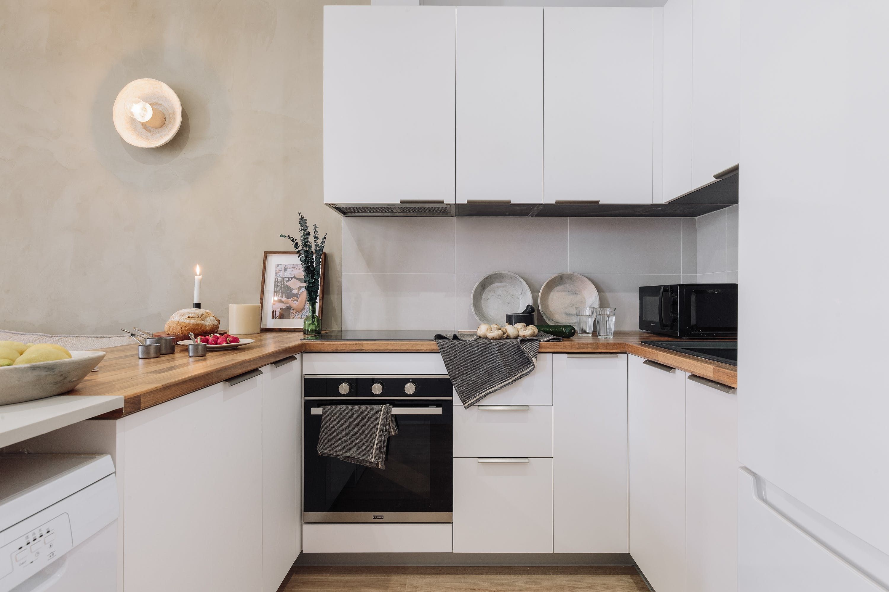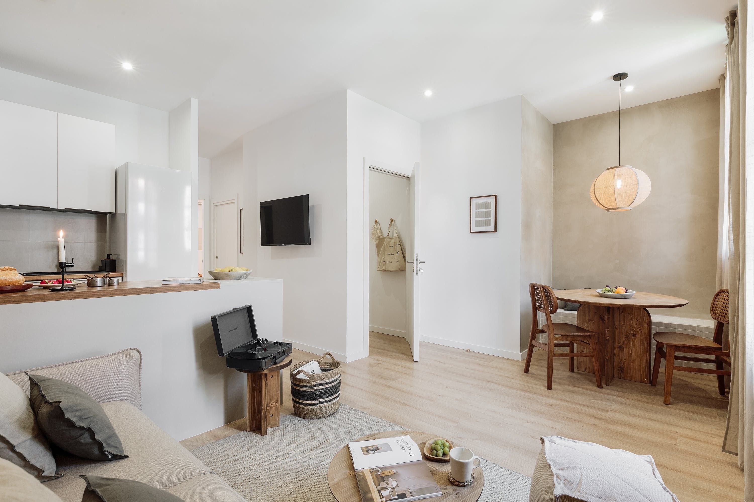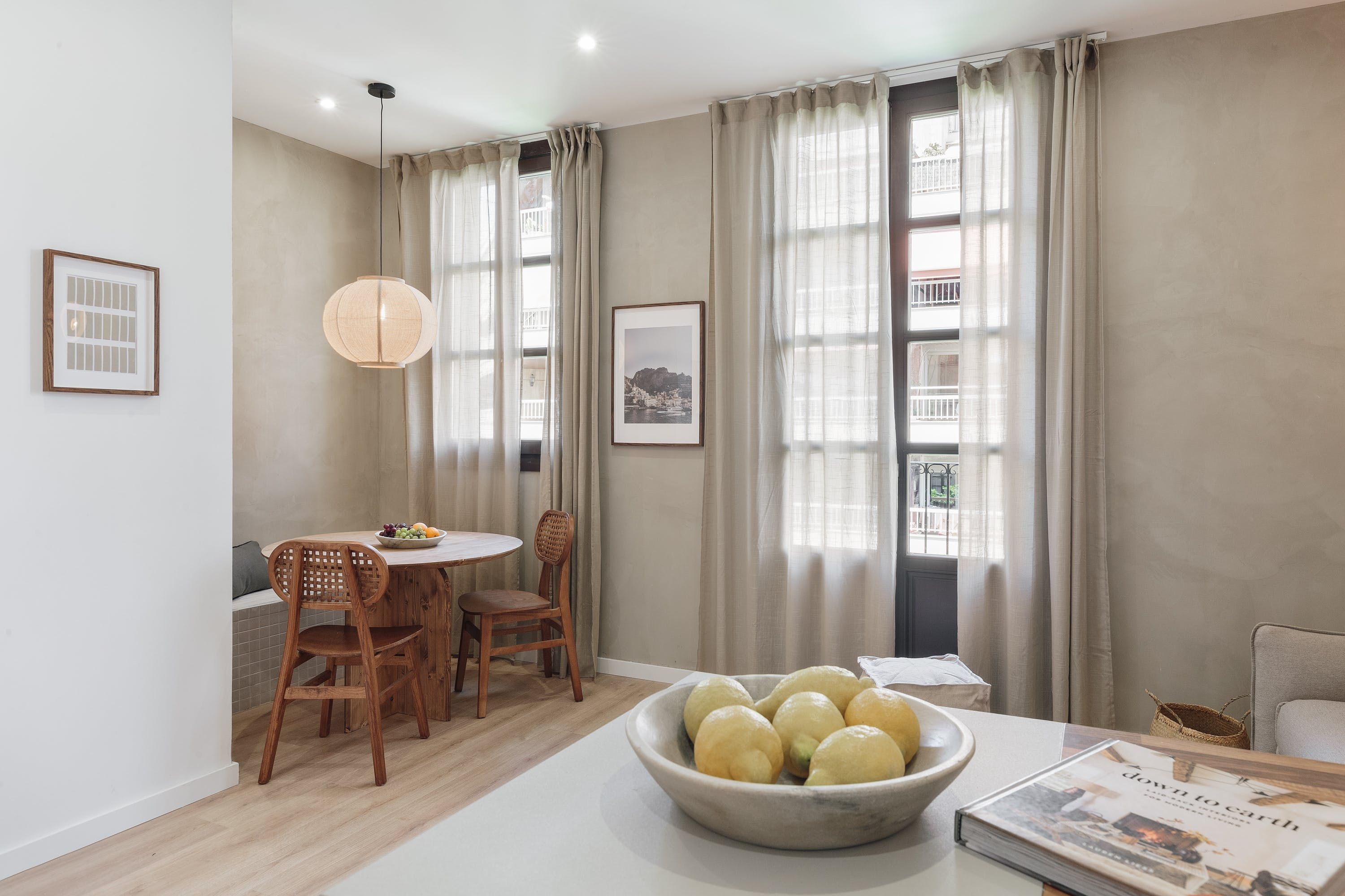 In the section of Barcelona’s centre known as Sant Antoni, this apartment is well-suited to business and leisure travellers alike. Amid the bars, restaurants and concept stores, the neighbourhood is crowned by the lively Mercat de Sant Antoni – a fresh produce market in a striking building from the 1880s. Produce purchased here can be cooked up in the apartment’s full kitchen while vinyl pipes out of the record player. For those working remotely, the single bedroom has a big desk so could work as a study-and-spare-room if you don’t need the extra bed. The crowning glory of this apartment is the big terrace that catches the sun, furnished with outdoor sofas.