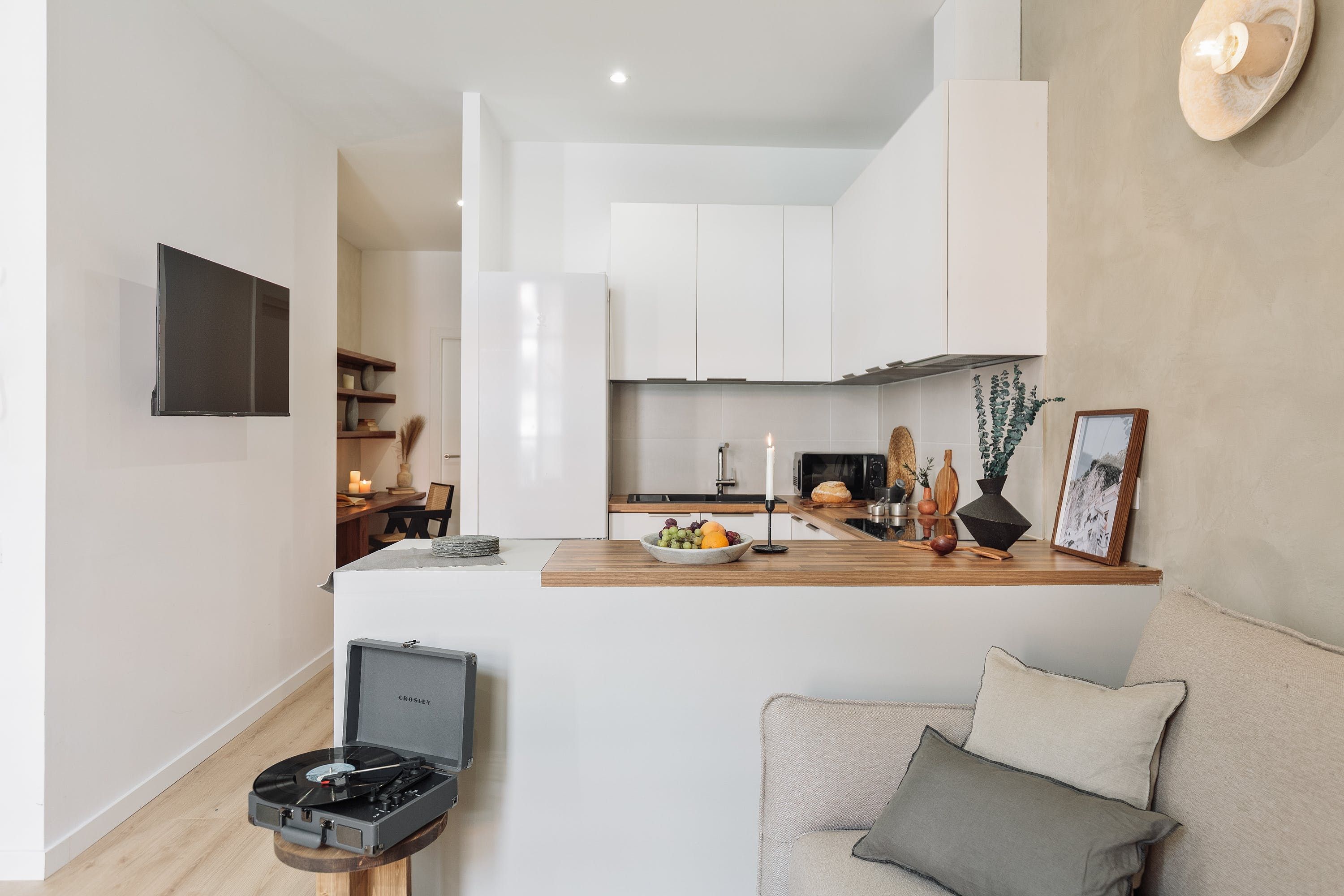 Located in the hipster neighbourhood of Sant Antoni, one of Barcelona’s best-kept secrets, you’ll have shops, bars, and restaurants aplenty here. And with Rocafort Metro station just a short walk away, exploring the rest of the city will be a breeze. As well as a small balcony (more for standing on than sitting) you’ll have access to a shared roof terrace here – perfect for lounging in the sun or enjoying an alfresco sangria. We think this fuss-free apartment is ideal for a couple or small family wanting a comfortable base to head home to after a busy day seeing the sights.