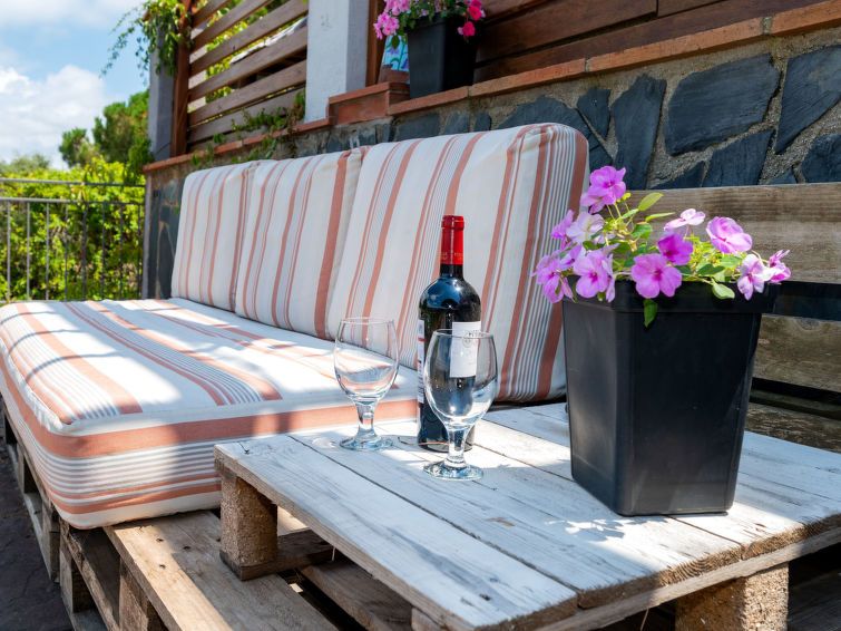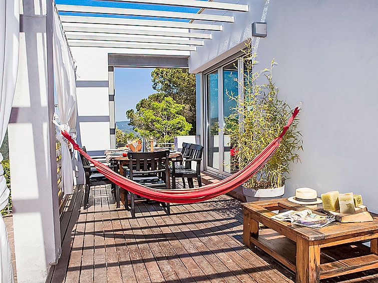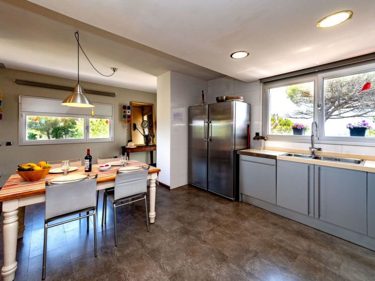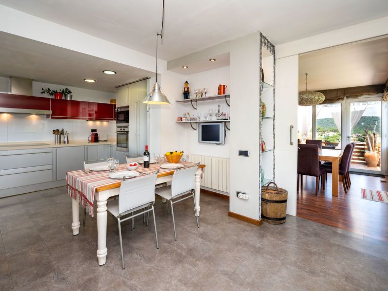 3-room house 180 m2. Spacious and bright, tasteful and cosy furnishings: large living/dining room with open-hearth fireplace and TV. Exit to the terrace. 1 room with 1 bed and 1 x 2 bunk beds. Walk-through room, open with 1 double sofabed. Kitchen (oven, dishwasher, 4 ceramic glass hob hotplates, microwave, freezer, electric coffee machine) with dining table.