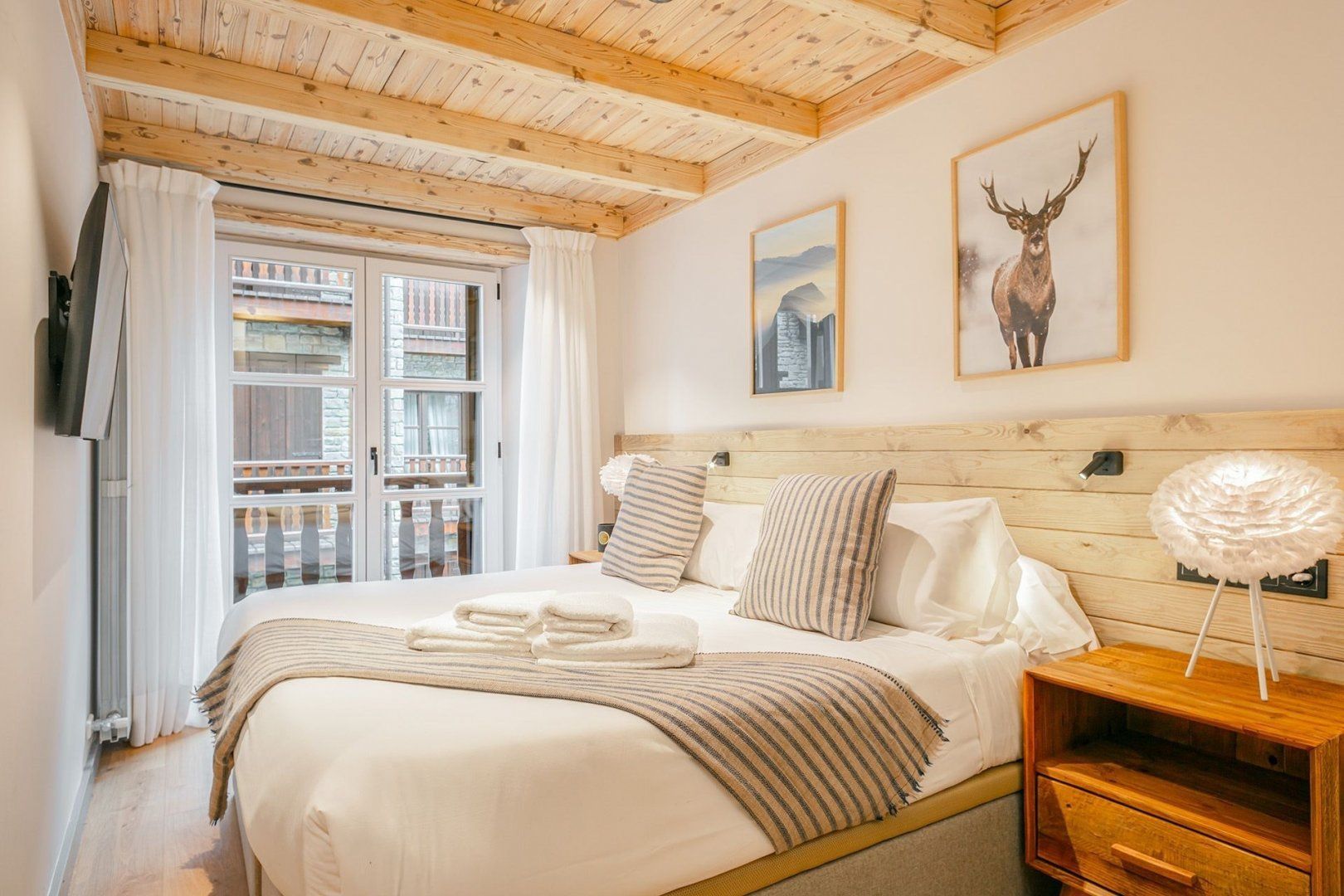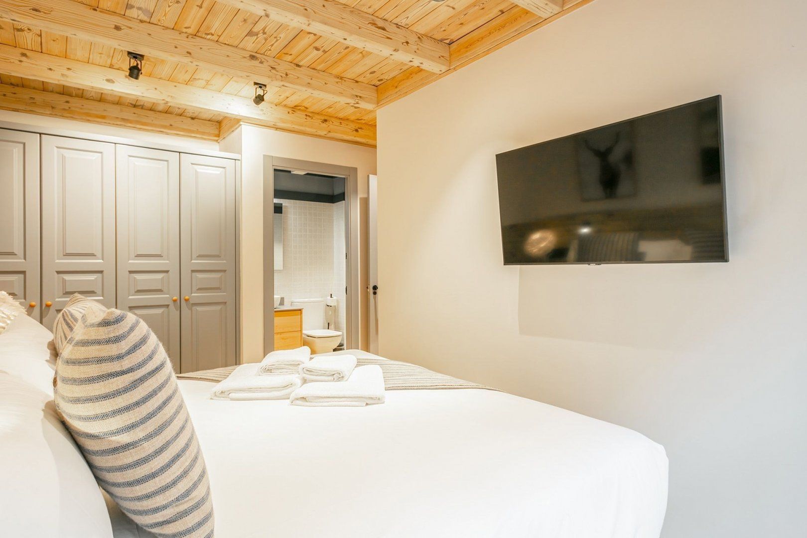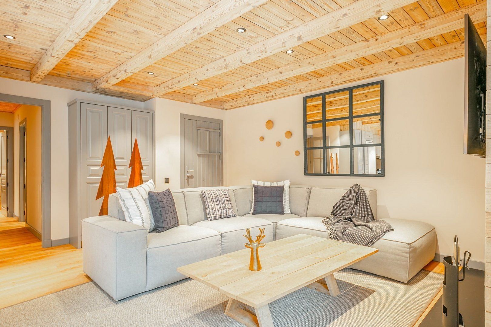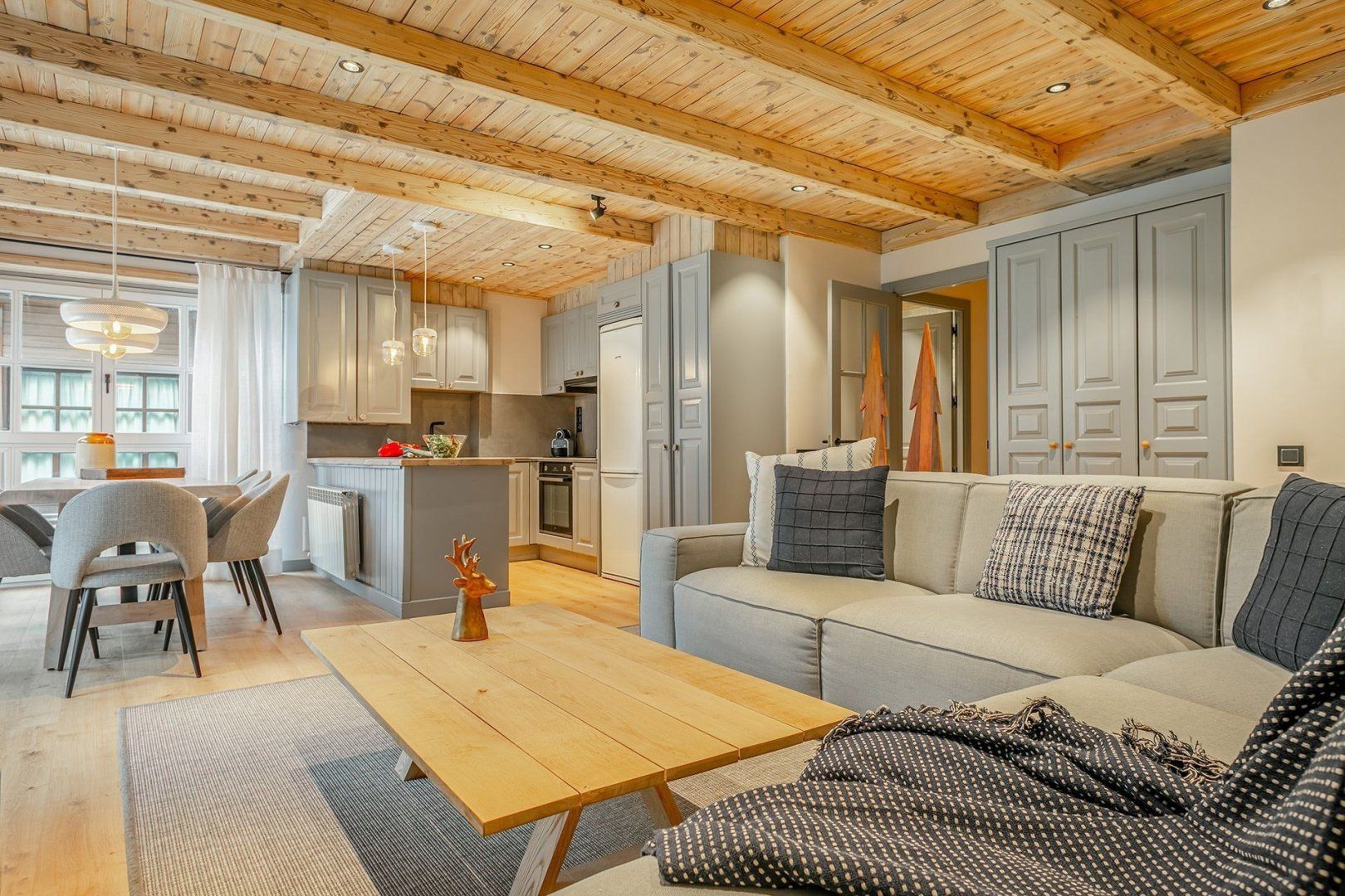The interior is contemporary and inviting, beautifully equipped with all the bells and whistles for a want-for-nothing stay, including a fully-fitted kitchen. We especially love the open-plan living space, primed for relaxation with its timber cladding, plush seating and floor-to-ceiling windows ushering in floods of natural light. Between adventures, enjoy delicious home-cooked meals around the spacious dining table and snuggle up in the lounge beside the fireplace. Though, the real highlight of this home is the balcony. Overlooking the Ruda Valley, it's a lovely space for sipping your morning coffee before a day on the slopes.