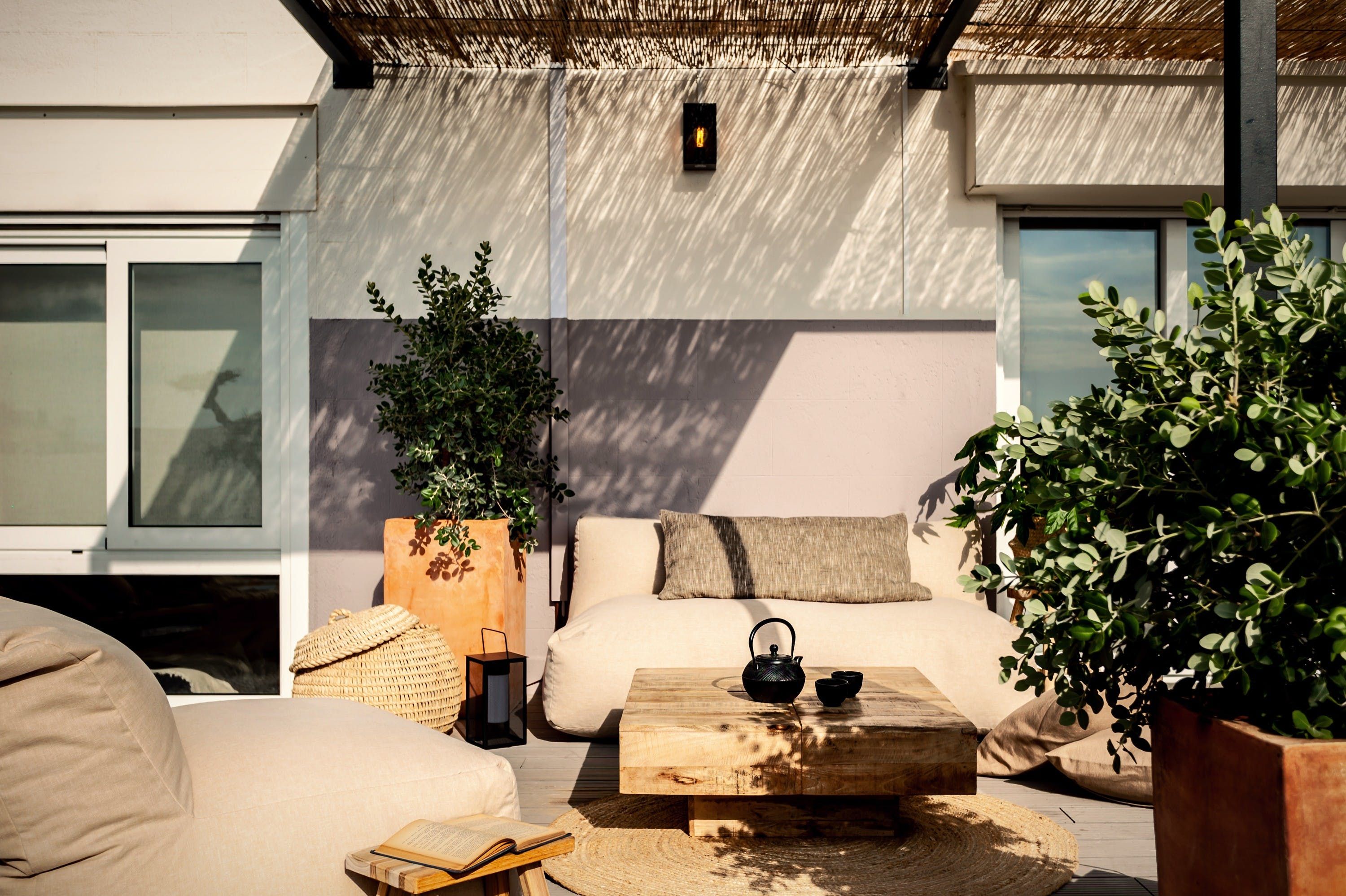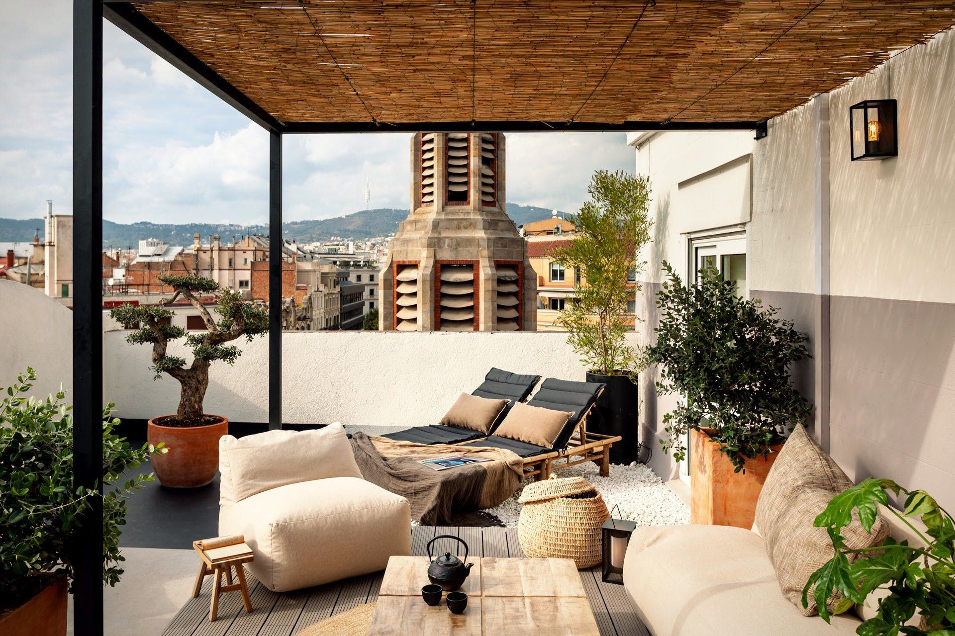 Set in Barcelona's lively Eixample neighbourhood, this stylish apartment is ideally suited for those after a more authentic, local feel while exploring the heart of the city. With a sprawling 613 square foot private terrace to enjoy, you'll have no trouble finding a place to relax. Soak up the afternoon sun on the squishy bean bag sofas, break open a bottle of Spanish wine and watch the world go by from this exciting part of town. Gather for outdoor meals at the dining table, before playing cards under the gentle shade of the pergola – we can think of no better place to fill those in-between hours.