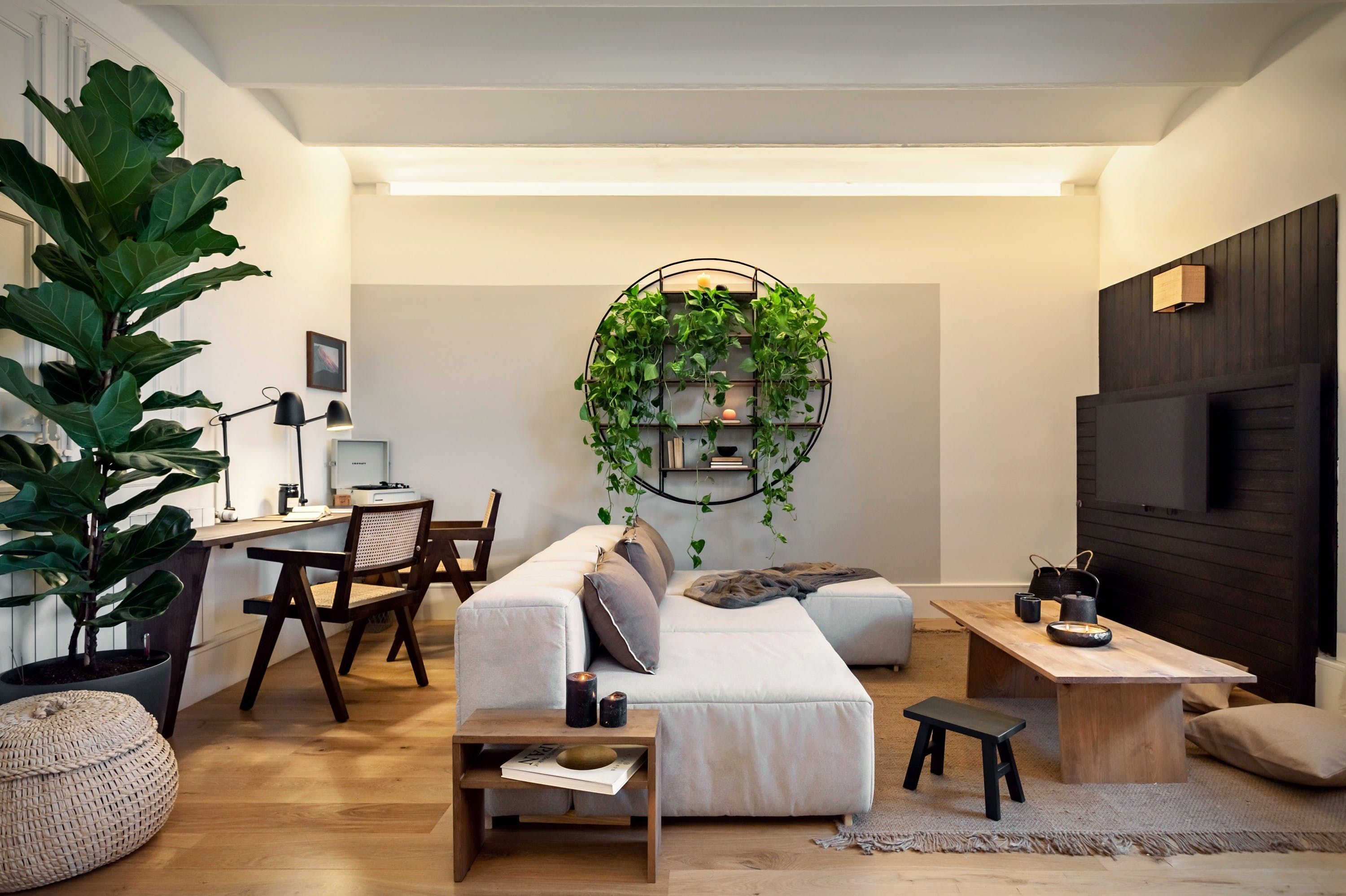 When you need to escape the Spanish heat, move inside to the stylish living room where a modular sofa, calming neutral tones and green houseplants will instantly have you feeling at ease. Light a couple of candles, stick a vinyl on the record player and indulge in a good book. If business calls, there's a dedicated office space to help you get to work, while the boho-chic bedrooms with lots of cosy textures and wall art invite you for half an hour's siesta, before getting ready for dinner. Your immediate neighbourhood offers plenty of shops, bars and restaurants while being home to two of Gaudí's most famous landmarks – both the Casa Milà and Sagrada Familia are less than twenty-five minutes' walk from your beautifully appointed penthouse.