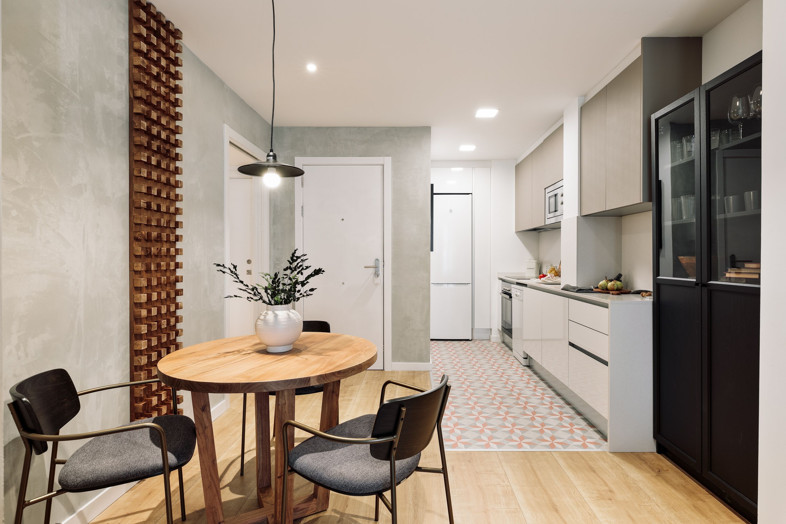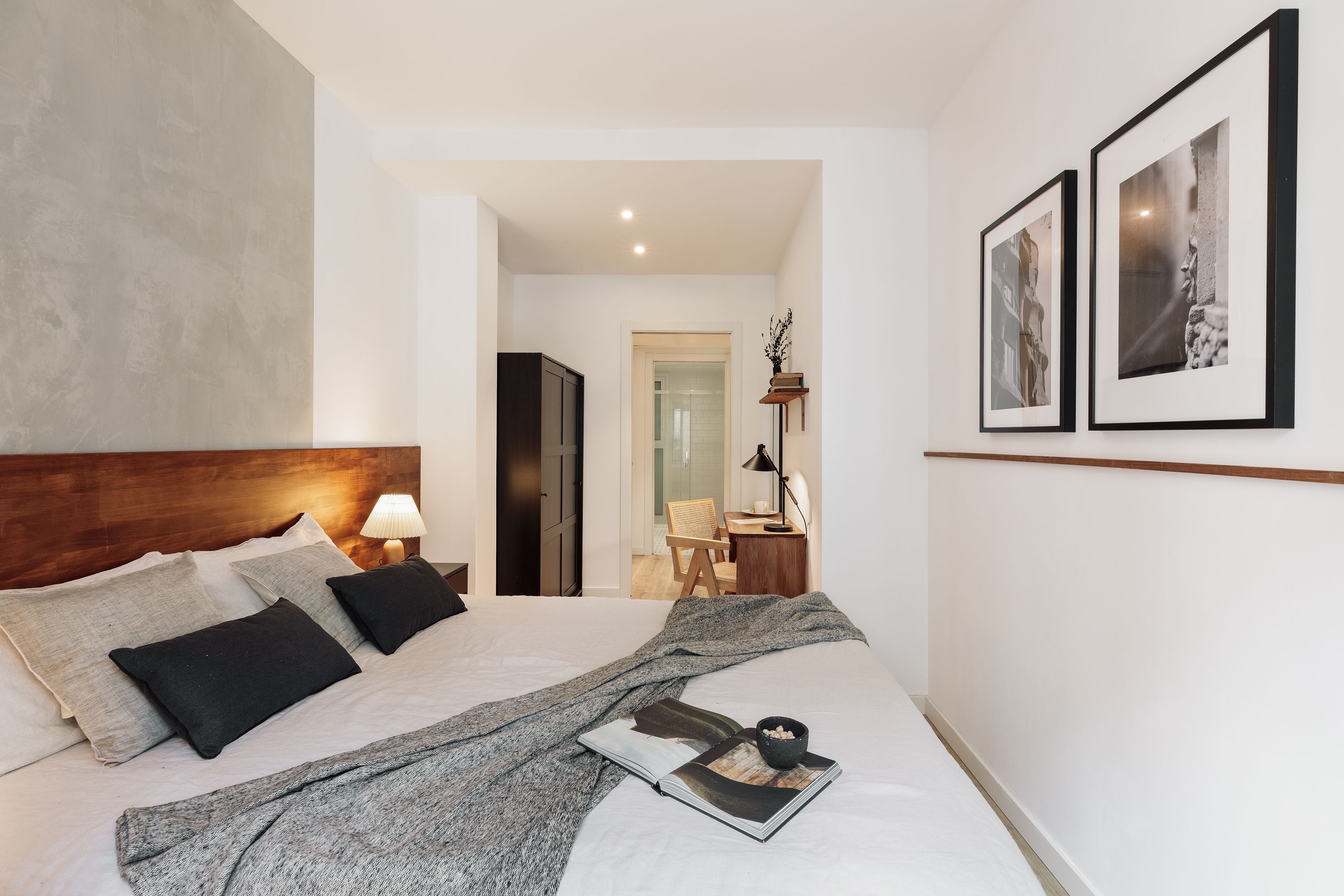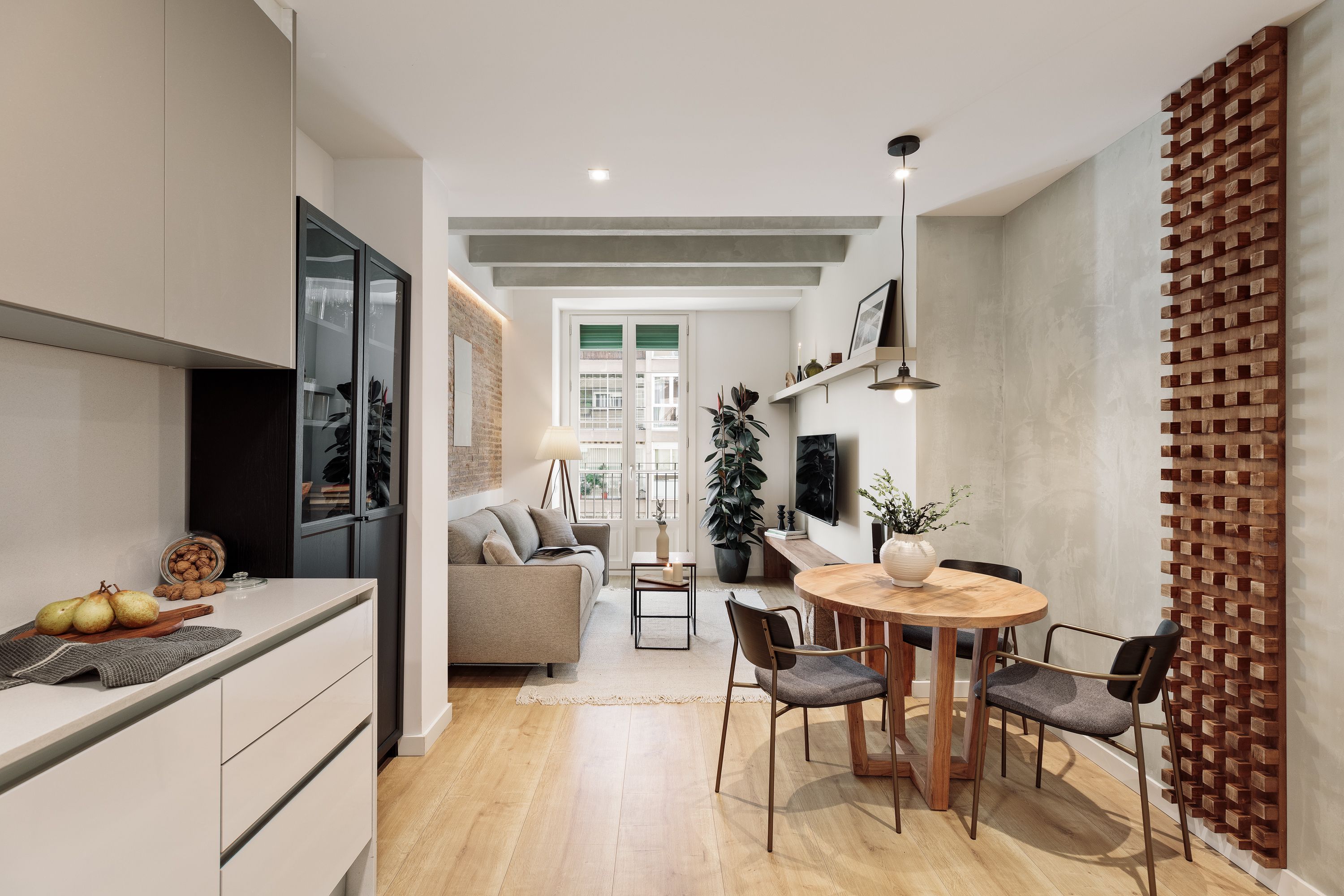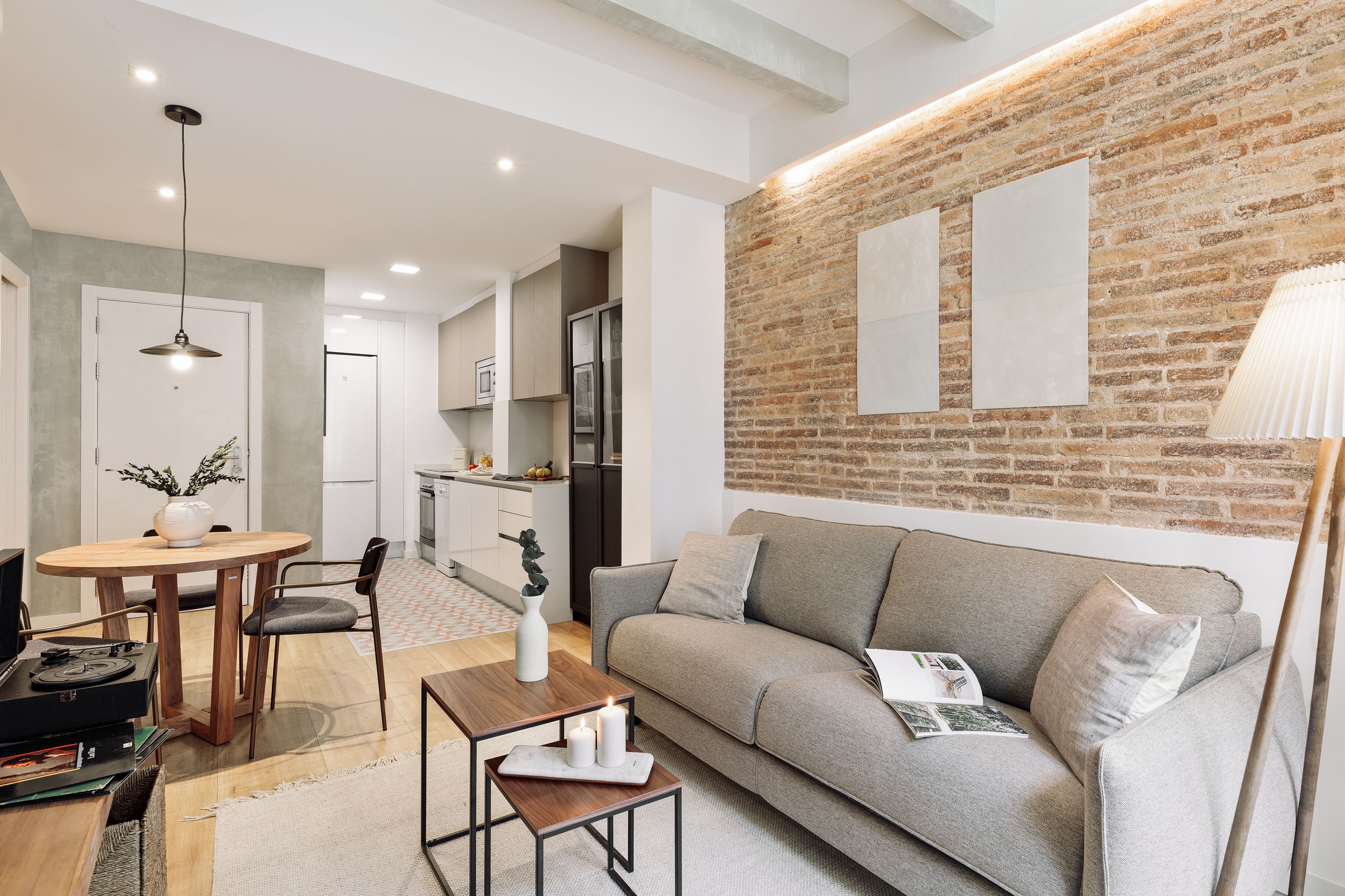 This attractive apartment is located in the lively yet laid-back neighbourhood of Eixample. It’s a diverse district with a wealth of restaurants and bars, and excellent transport links to the rest of Barcelona. The apartment is modern in style but has been designed to be a warm, welcoming home-from-home. Exposed brick walls and a soothing palette of monochrome and wood combine to make this a tranquil base, the perfect space to return to after busy days spent exploring a bustling city like Barcelona.