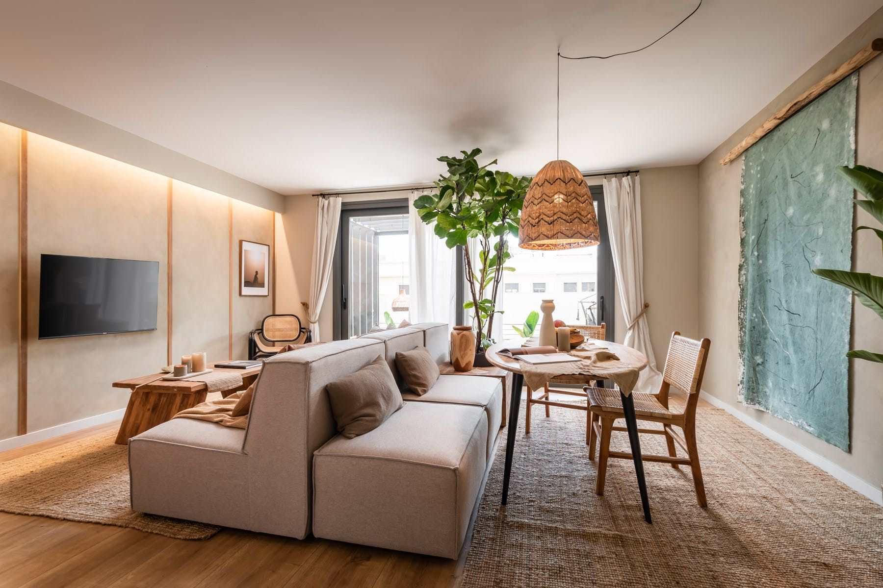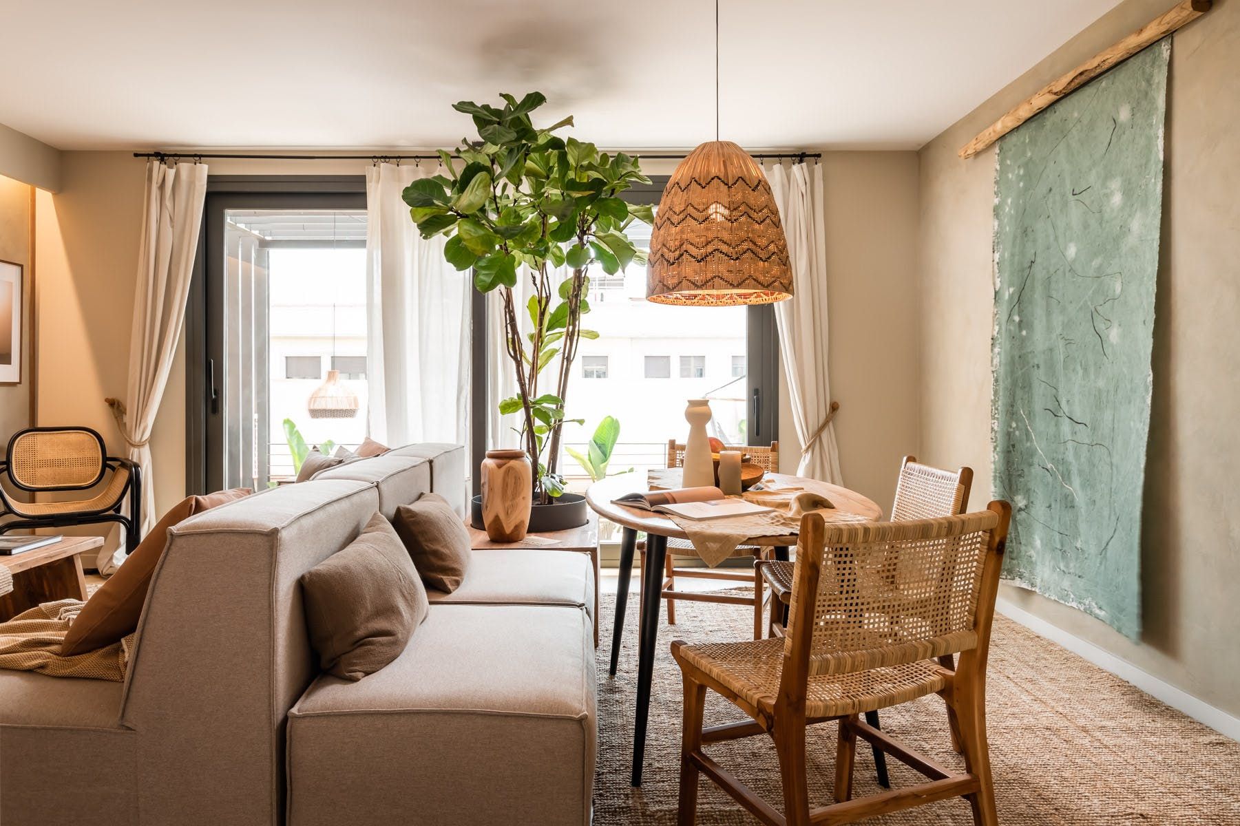 Located in the famous Dreta de l’Eixample neighbourhood, this home is surrounded by Gaudi-inspired architecture and beautiful Catalan structures. Boasting two incredible terraces and a jungle-inspired décor, this apartment is the ideal base for exploring the sights and attractions of Barcelona.