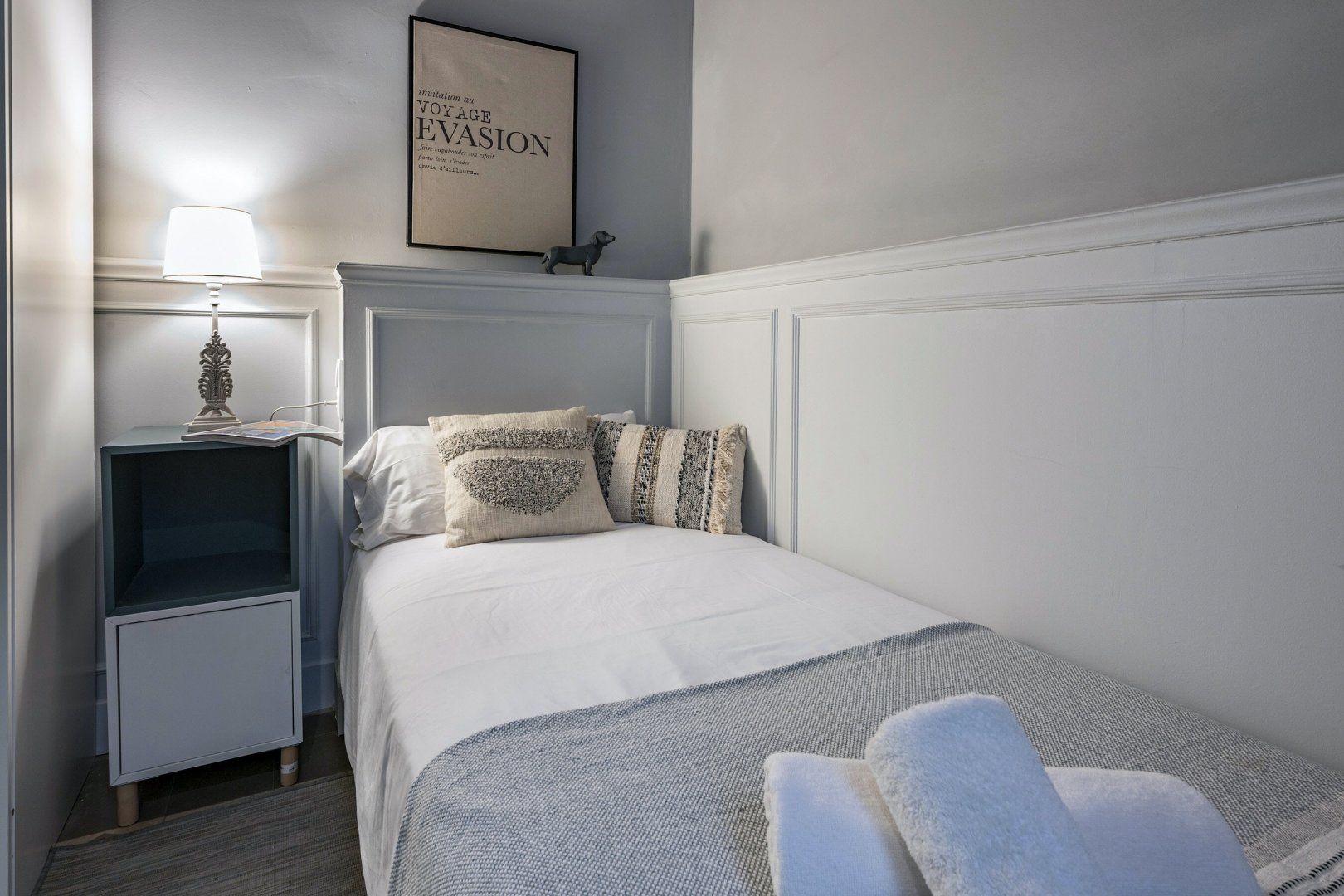 High ceilings and tall windows mean that the interior feels bright and airy, but there's also a Juliet balcony if you want to feel the breeze on your face at any point. There's a lot to like about the design too, with wooden furnishings and surfaces going nicely with the cool grey tiles and eclectic selection of objets d'art. We're fans of the exposed brickwork in the master bedroom, which adds a loft feel to the space, as well as the pristine subway tiling in the bathrooms.
