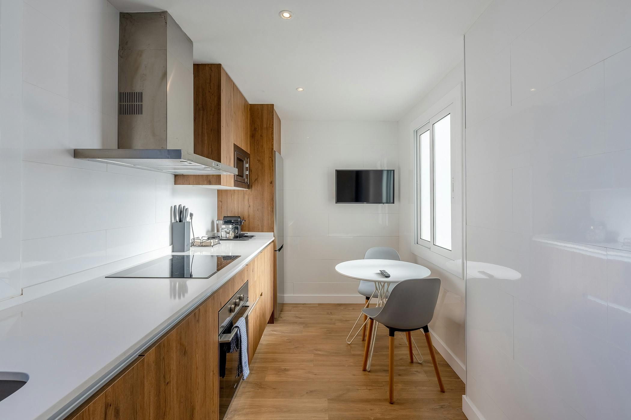This apartment is perfect for a family or small group of friends looking for a comfortable and convenient base in Barcelona. Located in Les Corts, an important financial district, it’s within easy reach of the city’s main attractions – and there are top-notch restaurants nearby for all those important business dinners. It takes fifteen minutes on the metro to reach the centre. The apartment is simple and fuss-free, ideal for relaxing after busy sightseeing trips. Best of all, there’s an excellent terrace where you can unwind in the sunshine and dine alfresco.