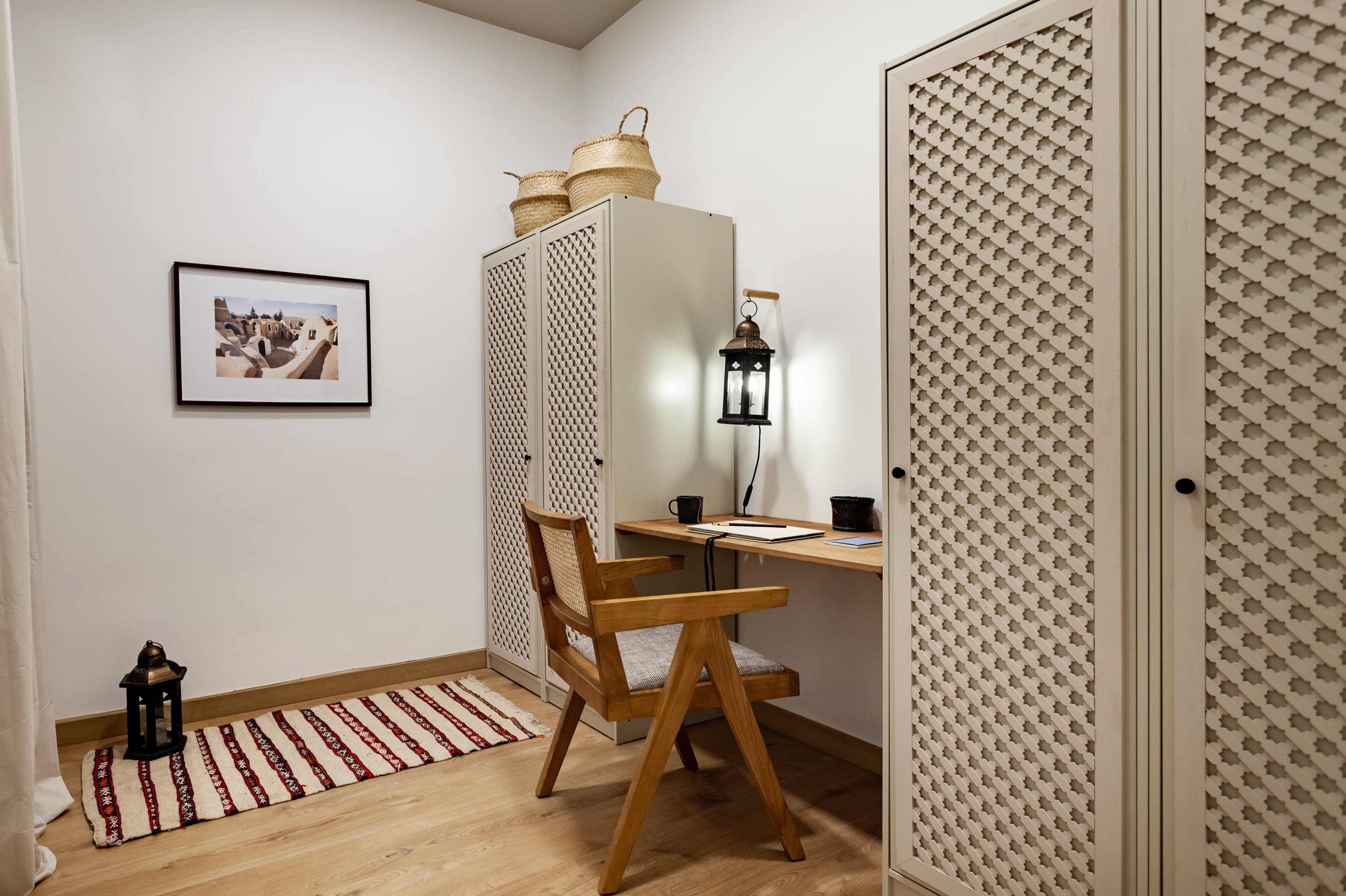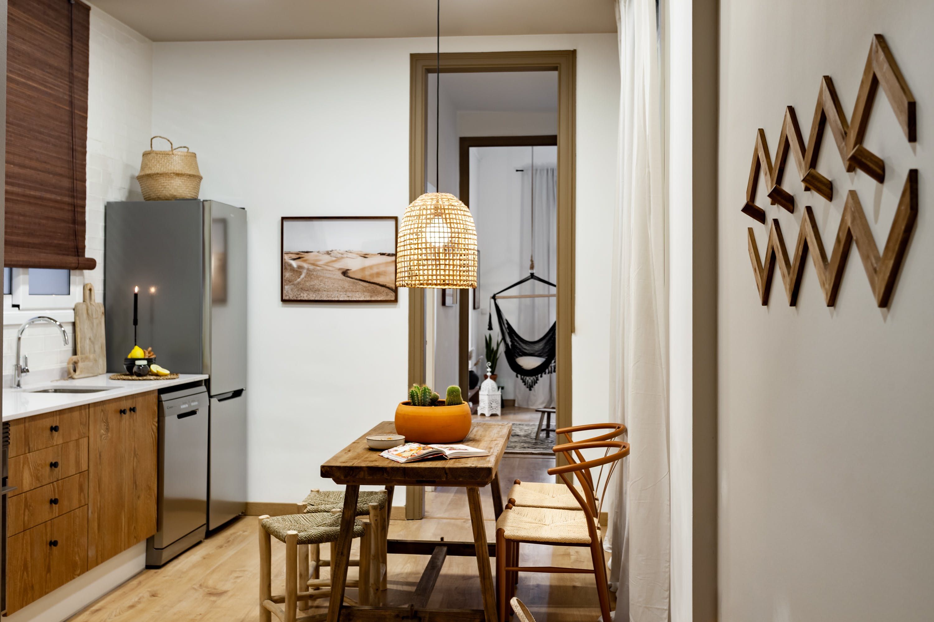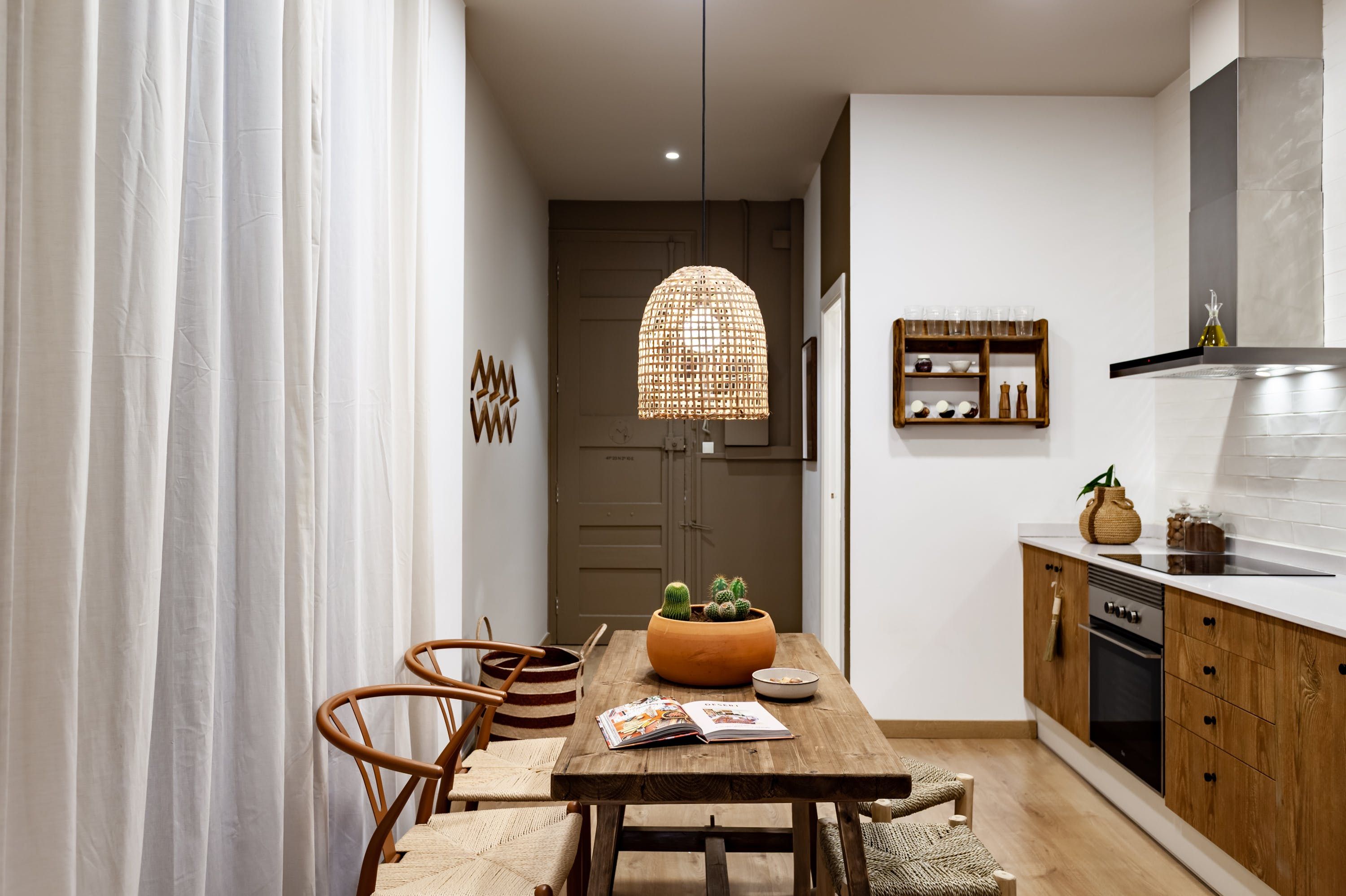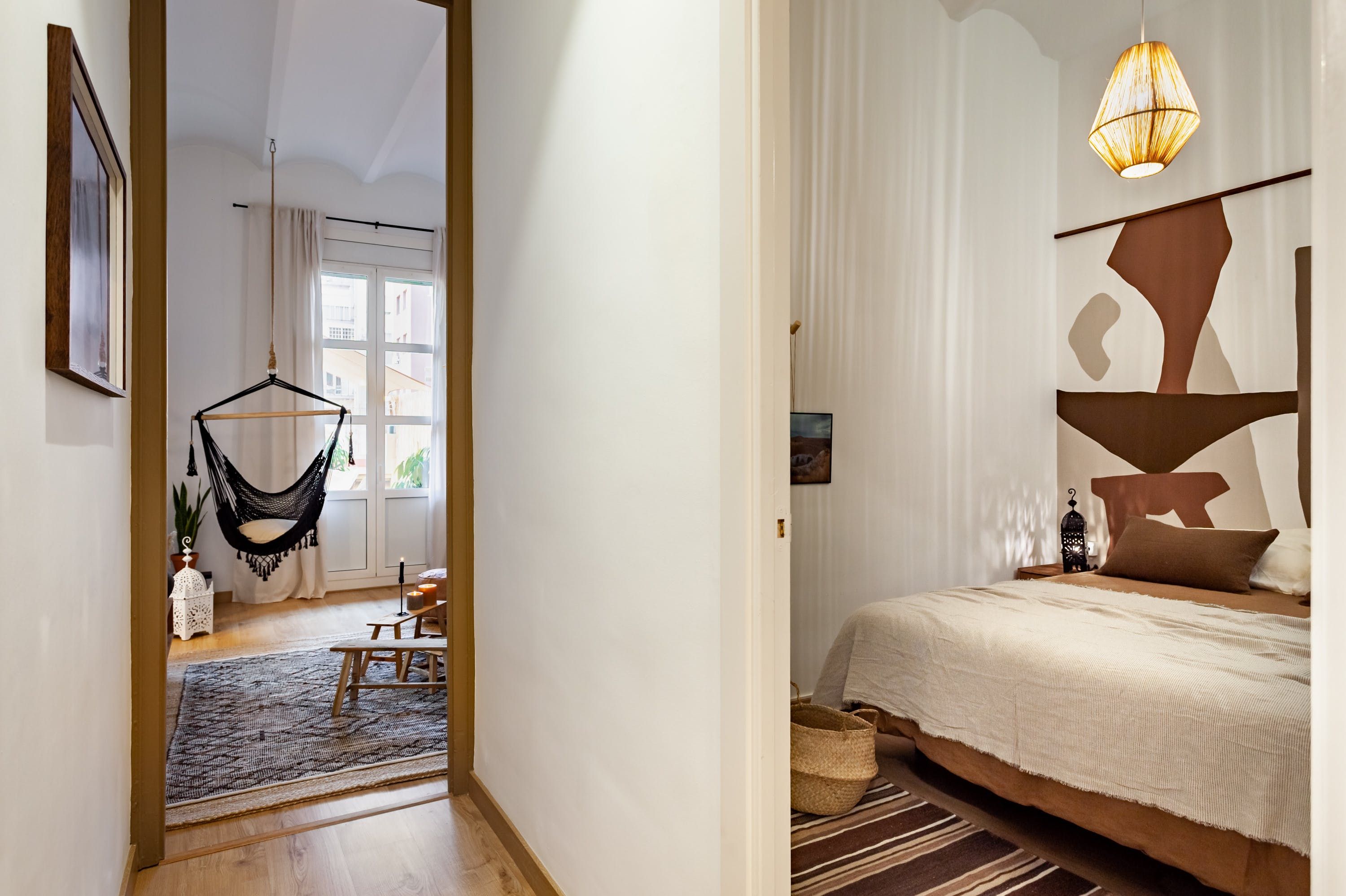 Drawing inspiration from calming desert landscapes through its warm colour palette and eclectic blend of textures, this beautifully styled apartment in Gràcia is an ideal base for those looking to explore the city from a comfortable, central base.
