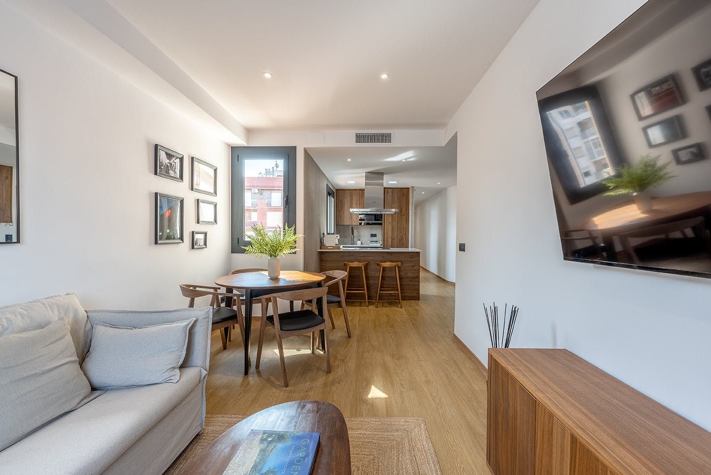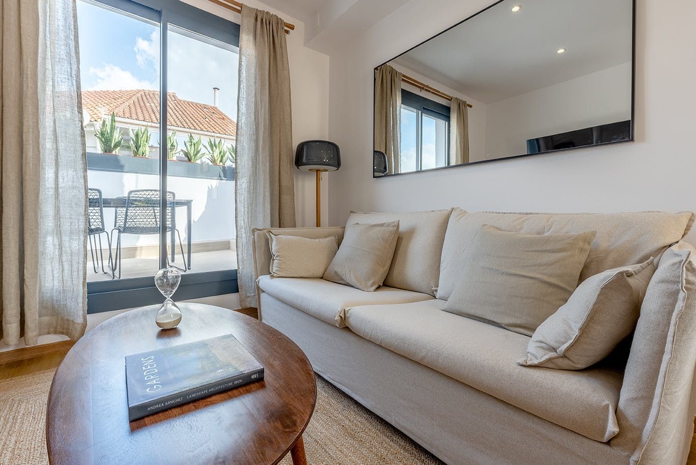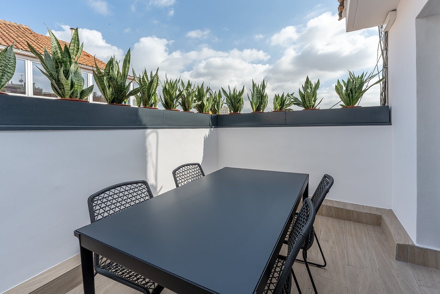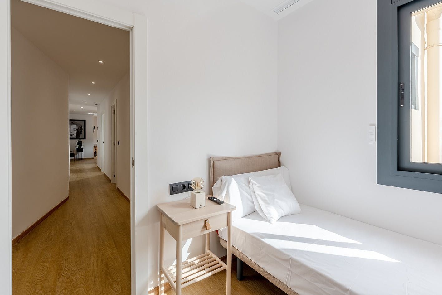 This stunning penthouse is located in Les Corts, close to great restaurants and shopping, and with excellent transport links to Barcelona's main attractions. It’s a haven of relaxation, with its neutral colour scheme, plush bedding, and chic decor. There’s a tranquil terrace where you can dine alfresco and soak up the sun, and a well-equipped kitchen that makes cooking a breeze. This elegant apartment has everything you might need for a comfortable and convenient urban escape.