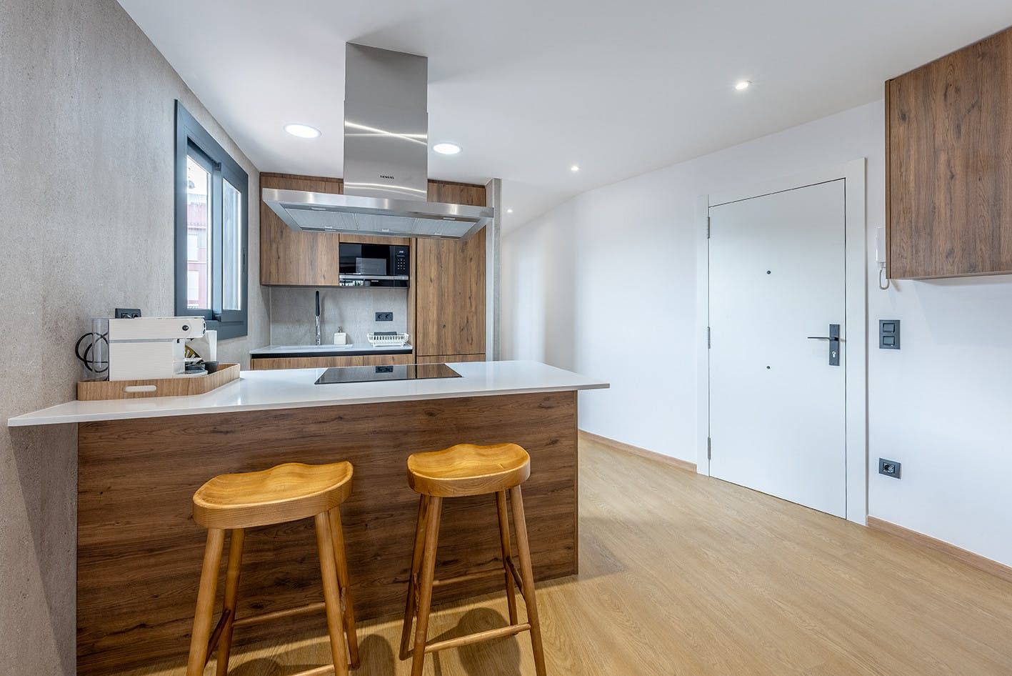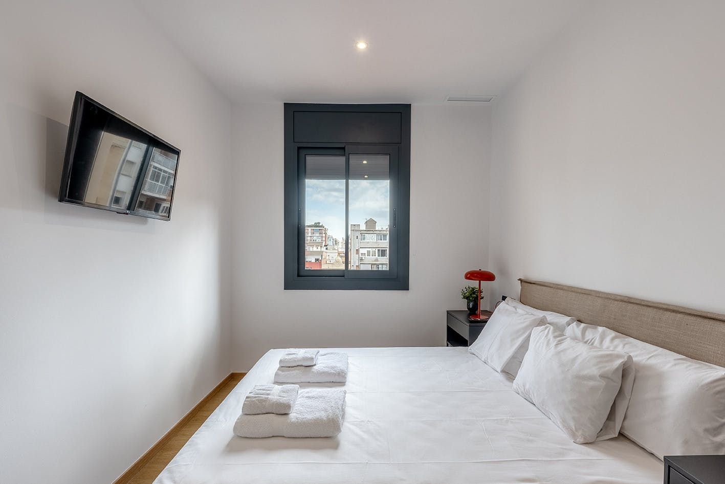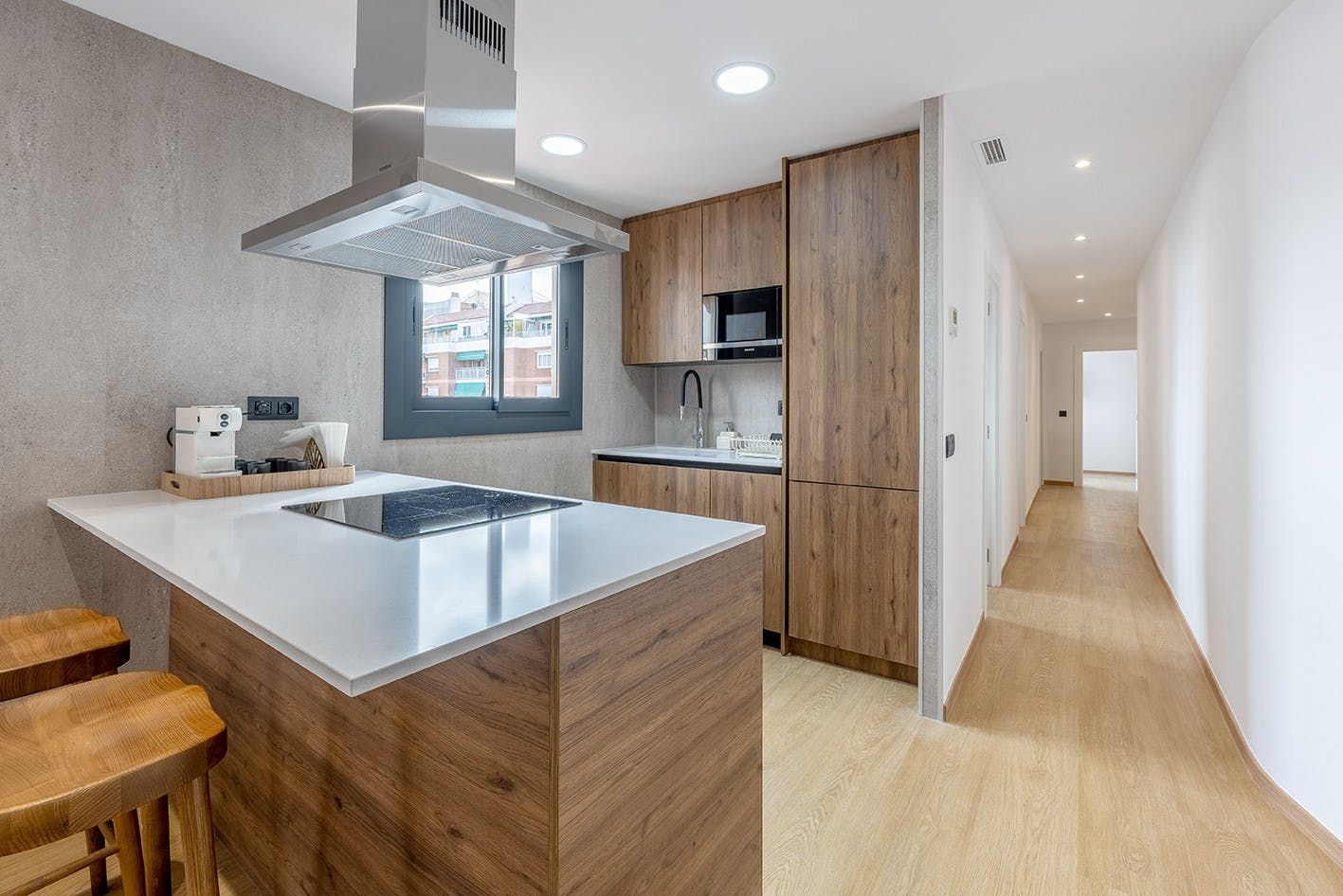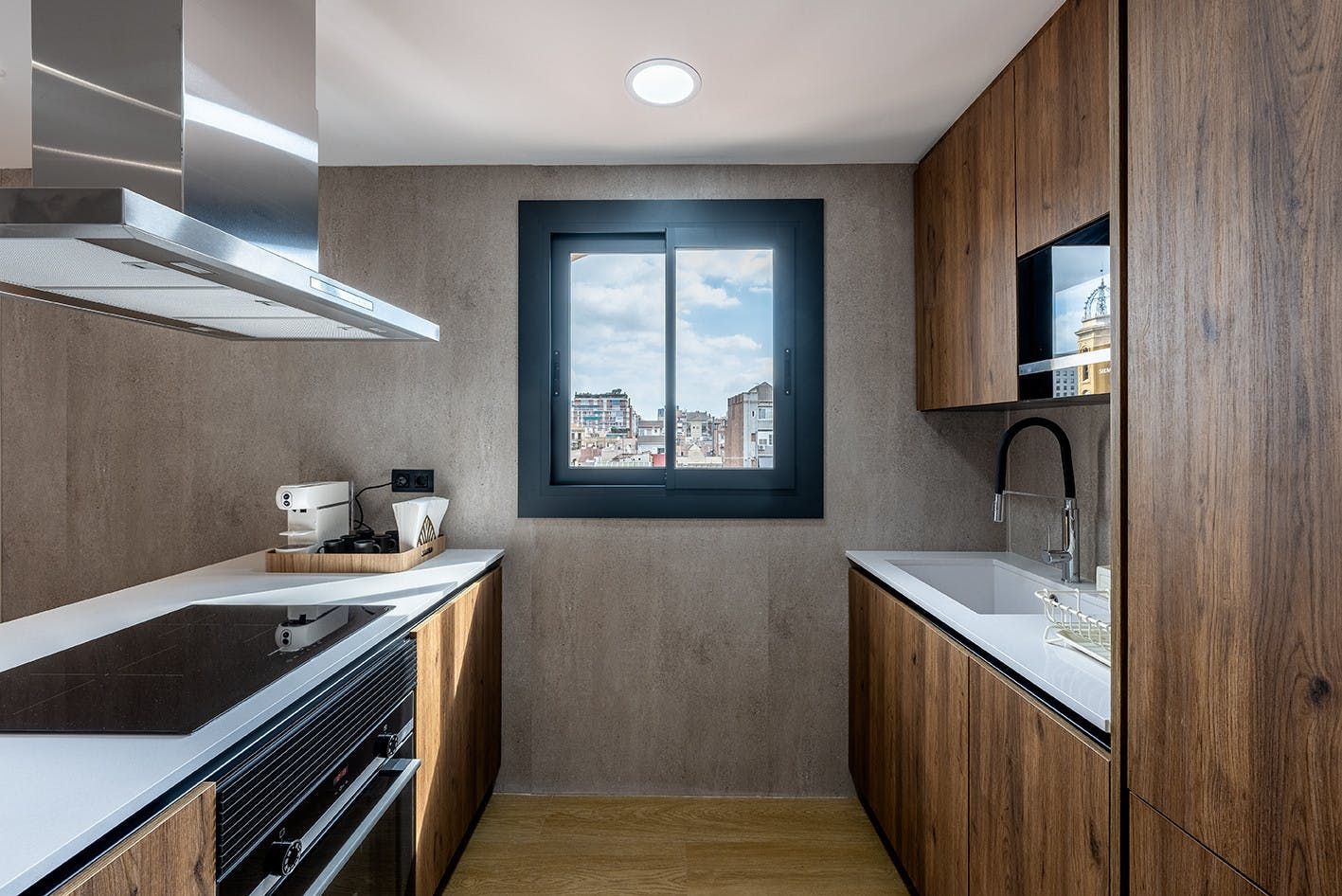 This stunning penthouse is located in Les Corts, close to great restaurants and shopping, and with excellent transport links to Barcelona's main attractions. It’s a haven of relaxation, with its neutral colour scheme, plush bedding, and chic decor. There’s a tranquil terrace where you can dine alfresco and soak up the sun, and a well-equipped kitchen that makes cooking a breeze. This elegant apartment has everything you might need for a comfortable and convenient urban escape.