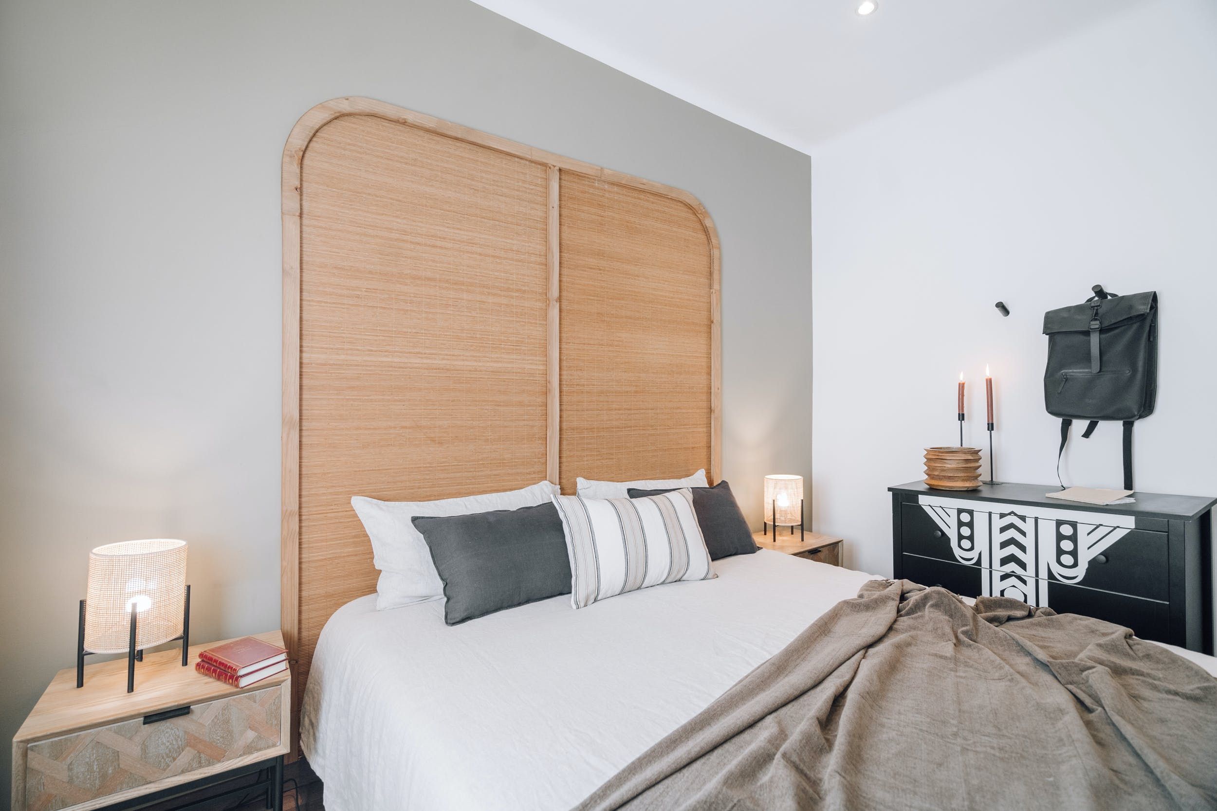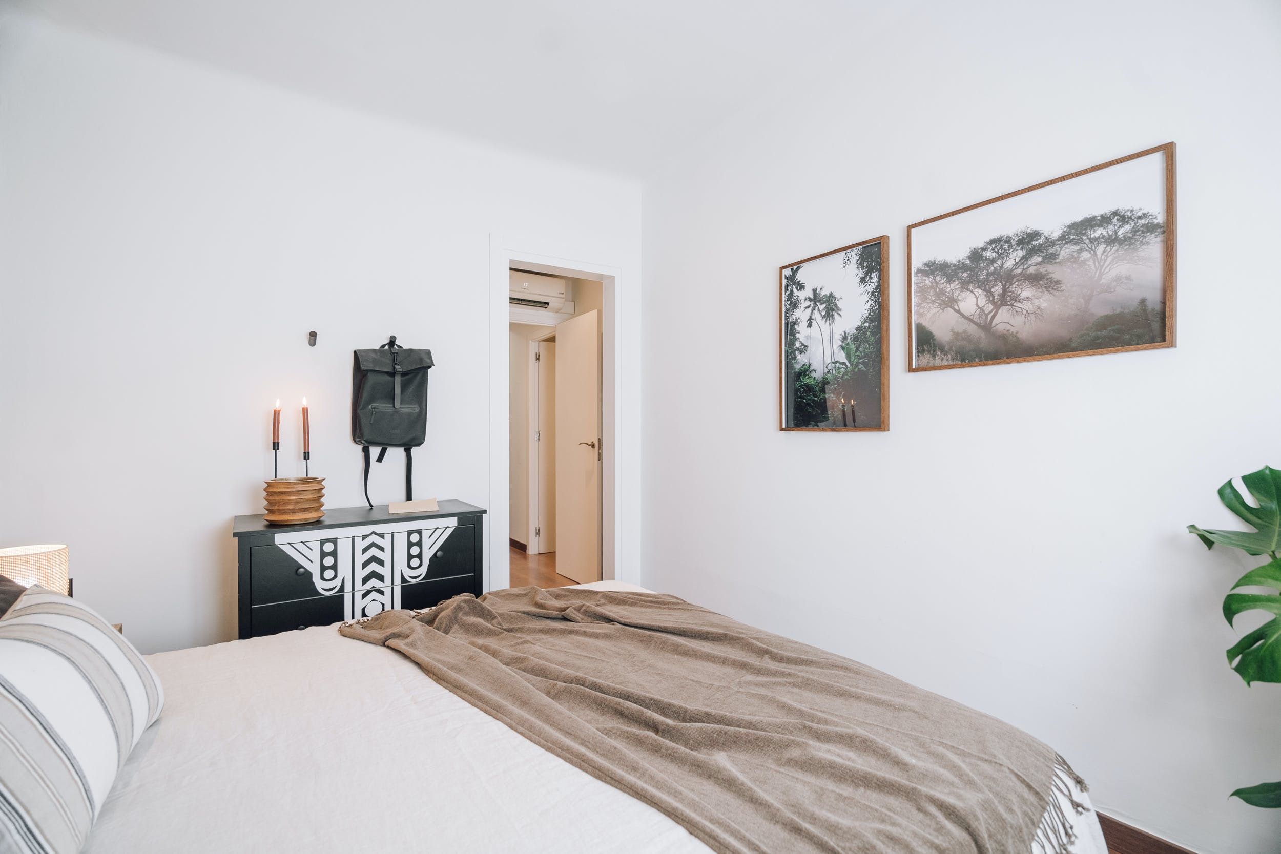The inside will welcome you equally warmly, with a light-filled living room, tastefully decorated with a jungle-themed accents. Here you can lounge on the plush sofa and share delicious meals at the dining table – you may also opt to dine alfresco, since the terrace also features a large table.
