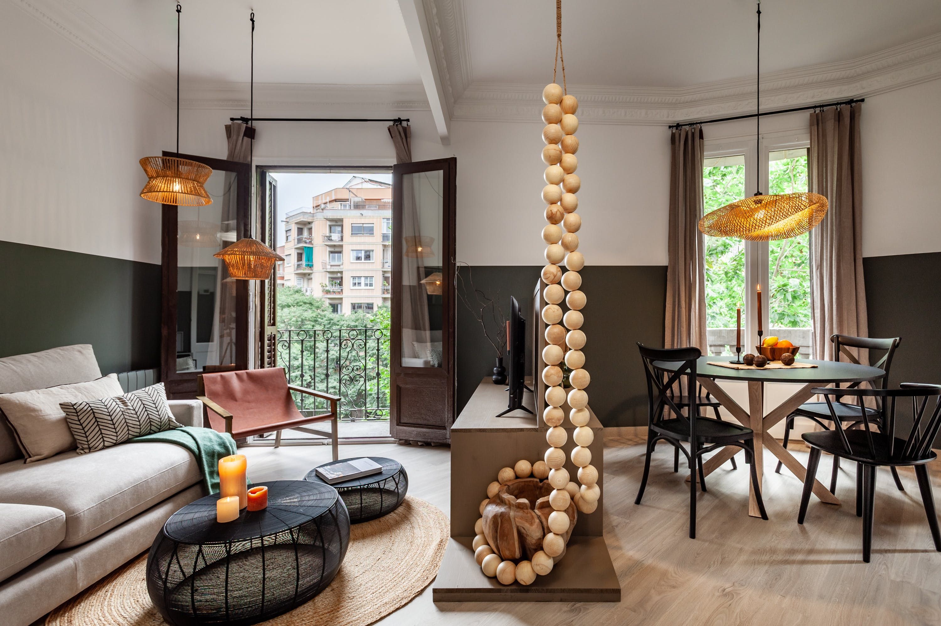 Freshly refurbished with an eye for style, this home is in an elegant part of the city with leafy street views. Set in a character building, it's a unique blend of earthy tones, natural textures and on-trend interior design, all topped off with high ceilings, French balconies and traditional shutters. We love the living space, with its comfy furnishings, tall windows and striking design pieces.