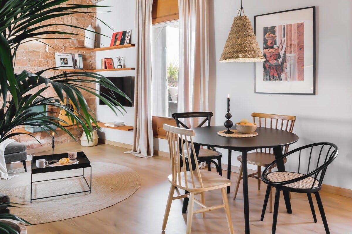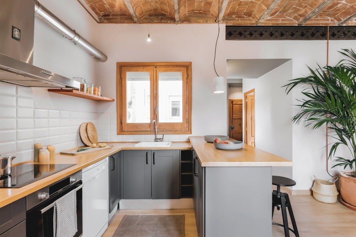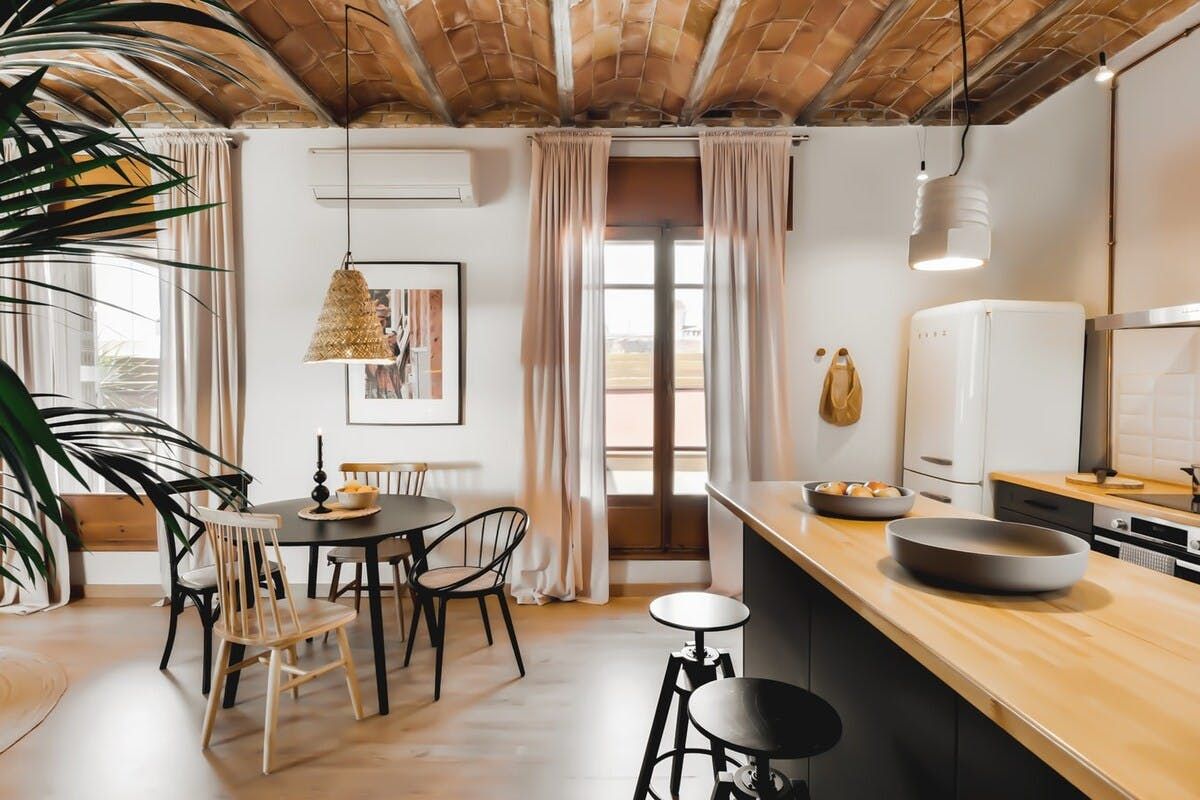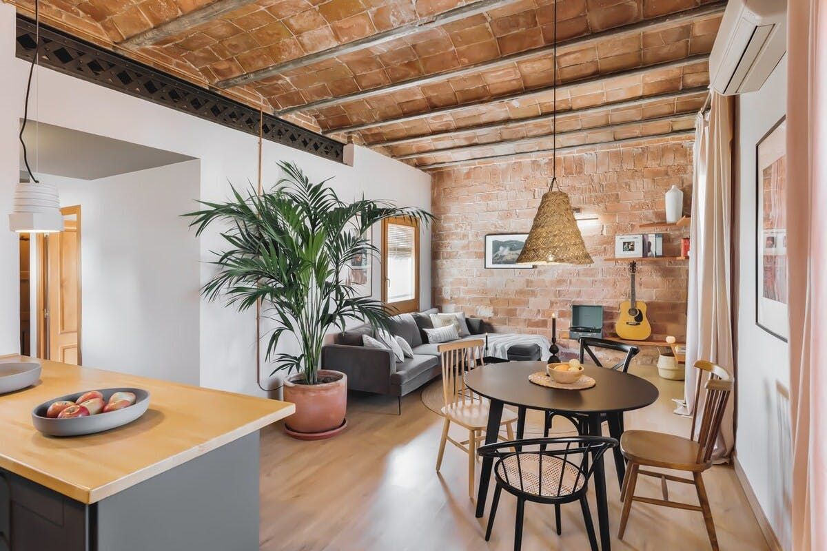 Step into your own vermillion-hued slice of heaven. Everything about this gorgeous one-bed penthouse in Port Vell is pitched to perfection – the suntrap terrace that catches the breeze from the Mediterranean, the contemporary yet quintessentially Catalonian kitchen, the exposed brick and plants on every surface. Stroll down the palm-lined Rambla del Mar to the shore, where you can indulge in sweet treats and traditional restaurants, or even take a dip in the ocean. Wind up a romantic evening with a movie on the sofa or watching the sky change colour while sipping sangria on the terrace.