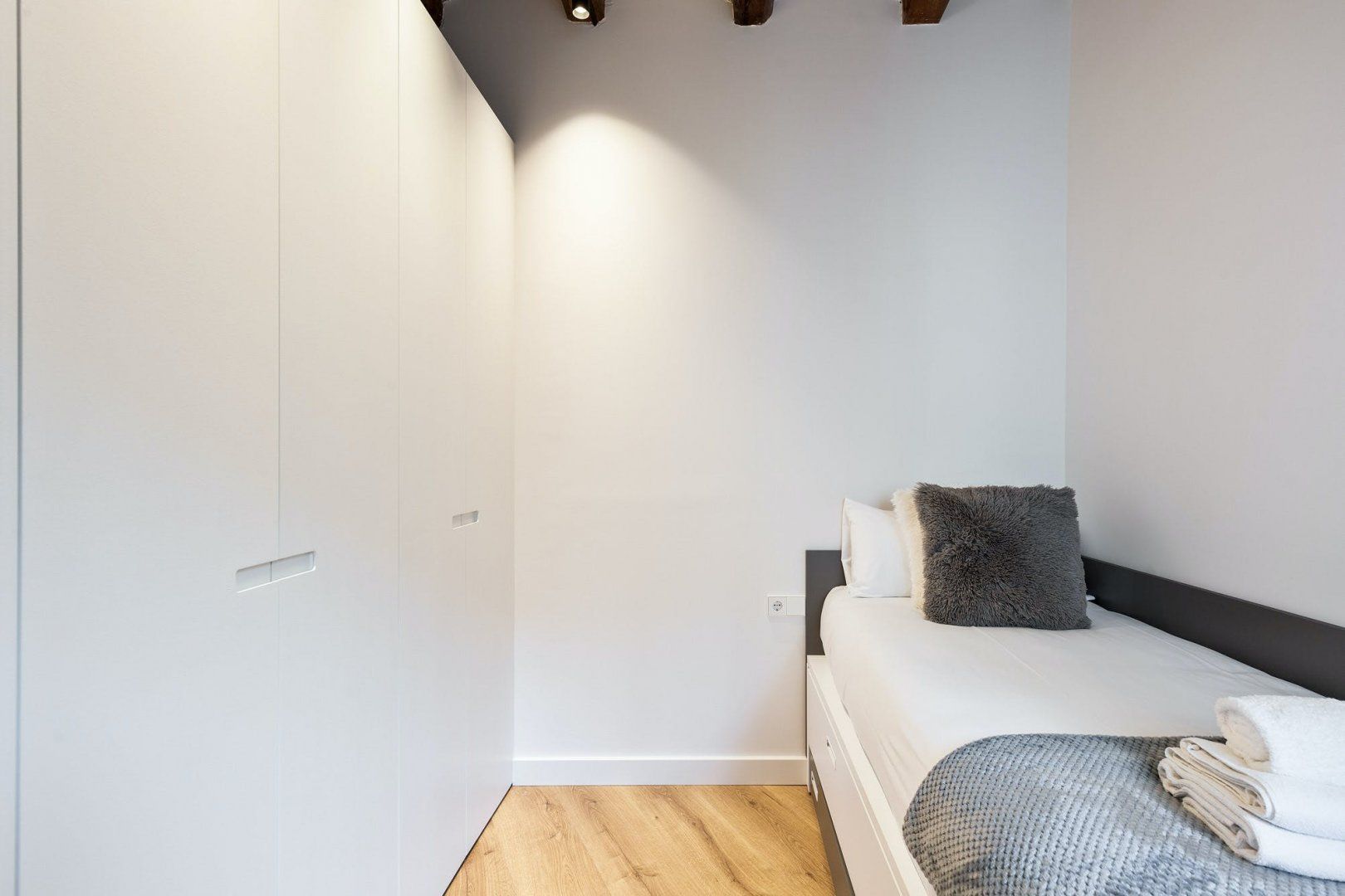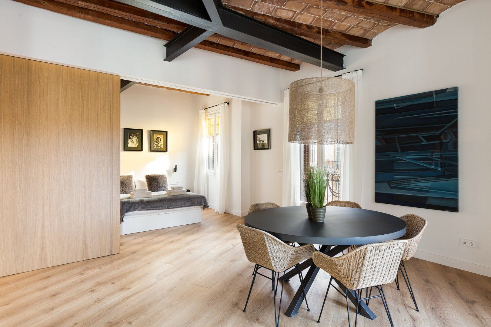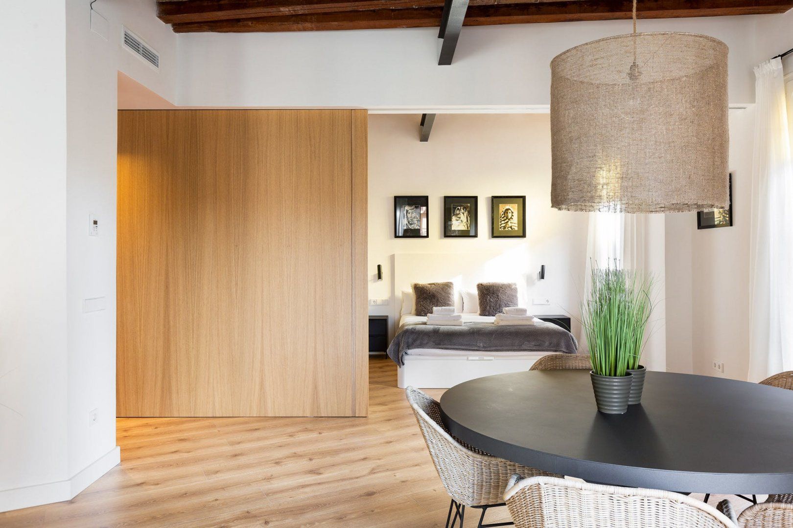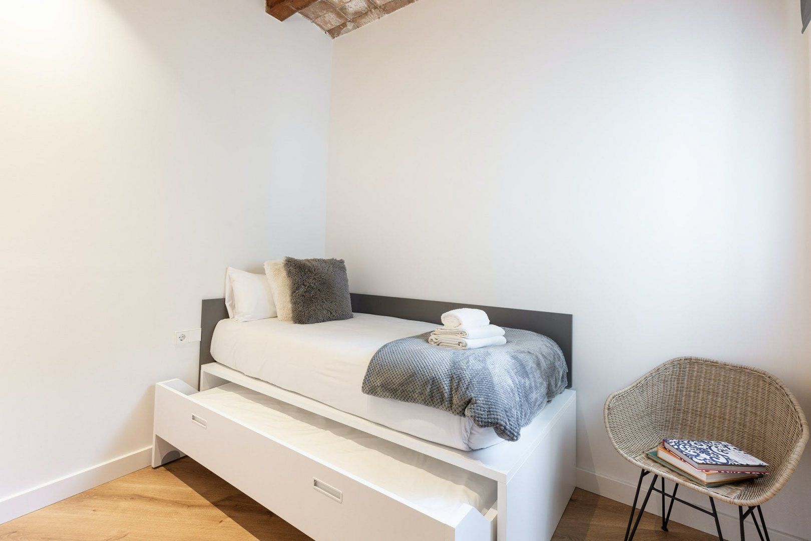 *There's a lift to access the apartment on the second floor *At capacity, one guest will be sleeping on the pull-out trundle bed in the second bedroom – we think this room is better suited to children *This host doesn't accept bookings from guests under 30 years old *The main bedroom is separated from the living area by a sliding door *A cot and a high chair are available on request *There's no desk, but the dining table doubles up as a laptop-friendly workspace *Given the home's central location, some street noise is to be expected *The building's entrance is shared with the other residents *We recommended skipping the car here and exploring Barcelona on foot or by public transport instead