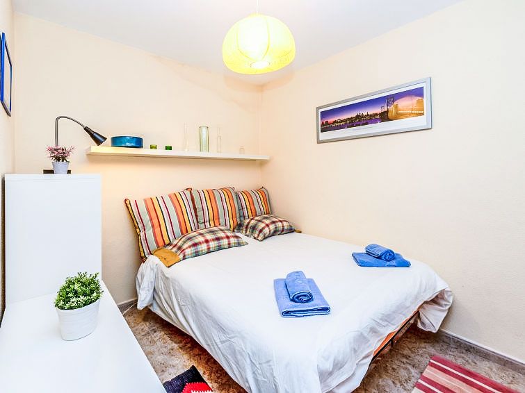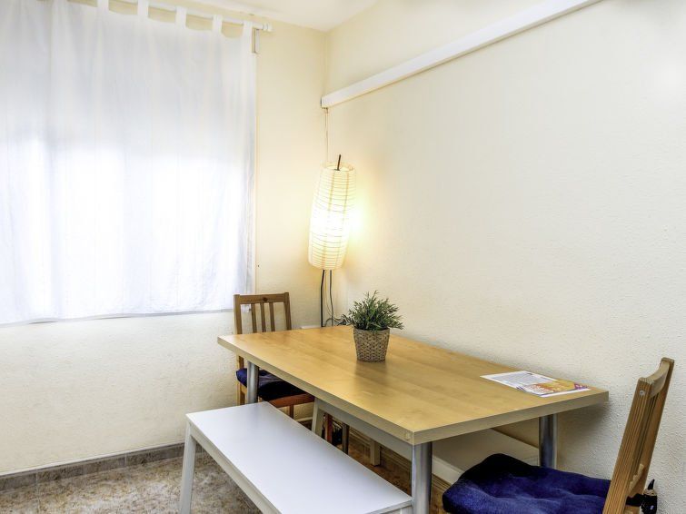 "Camp Nou", 4-room apartment 70 m2, on the ground floor. Practical furnishings: living/dining room with digital TV, flat screen, hi-fi system, DVD and air conditioning. 1 room with 1 french bed. 1 room with 2 x 1 bunk beds. 1 room with 1 double sofabed. Kitchen (4 hot plates, oven, microwave, freezer, electric coffee machine).