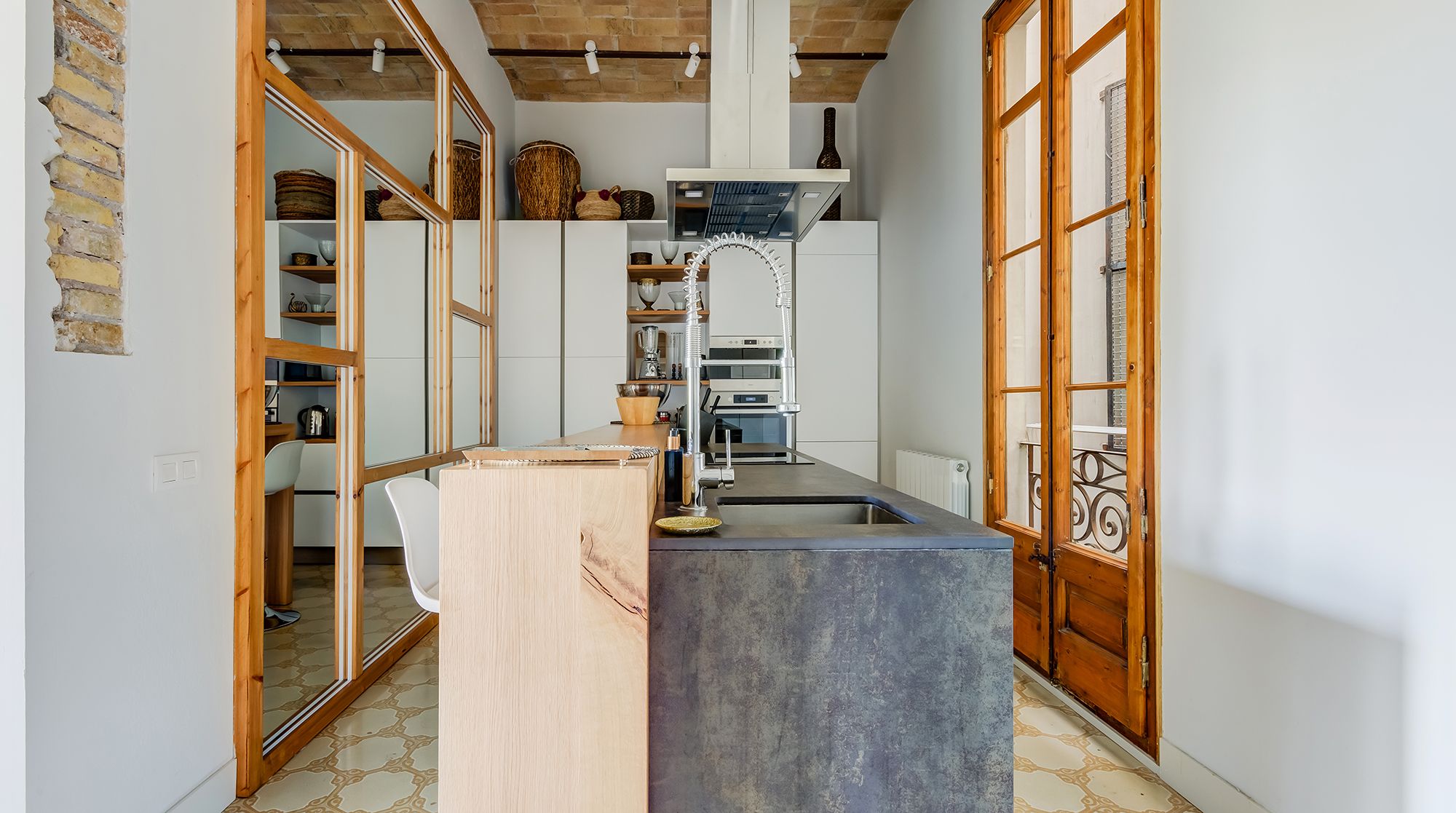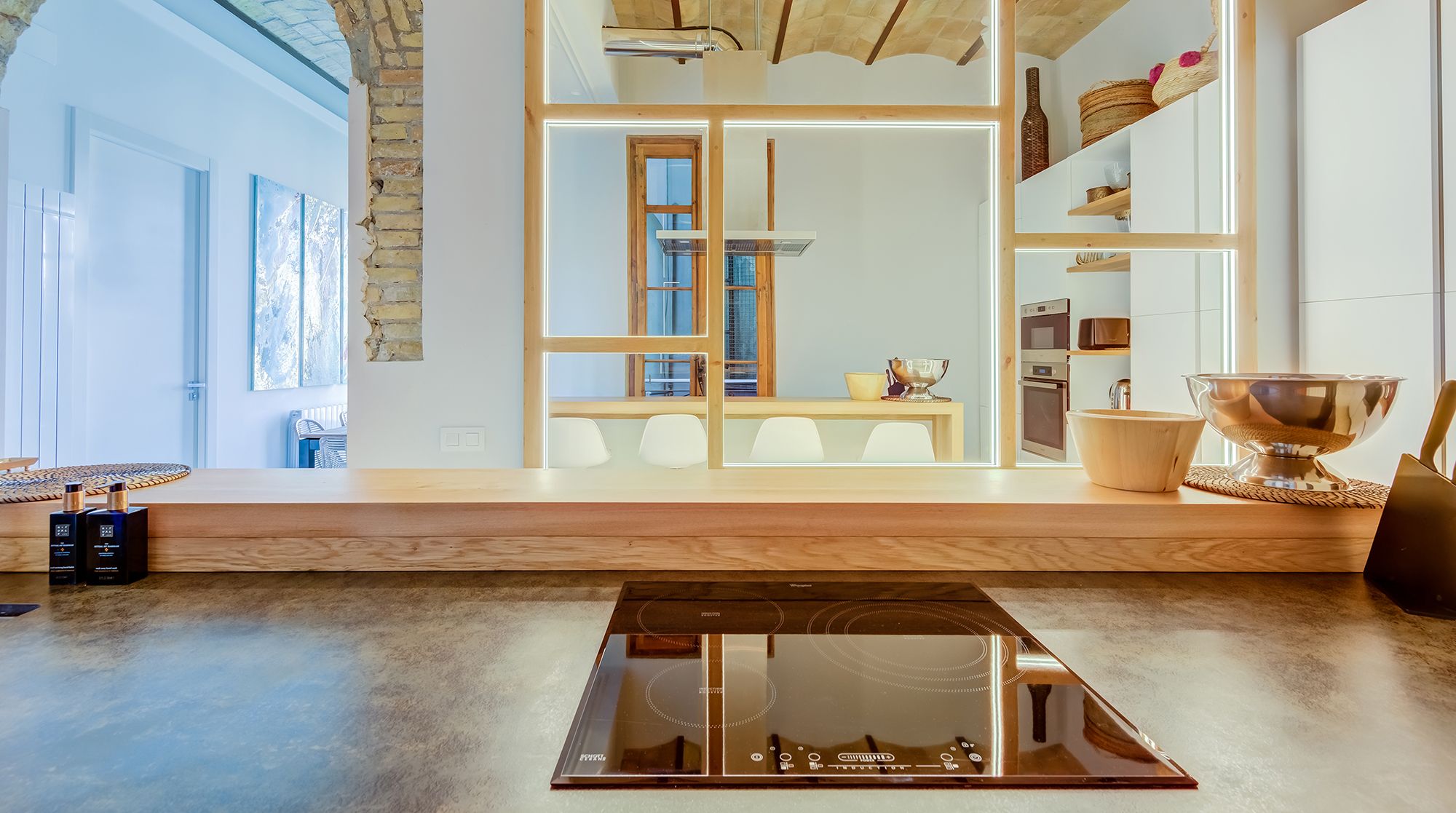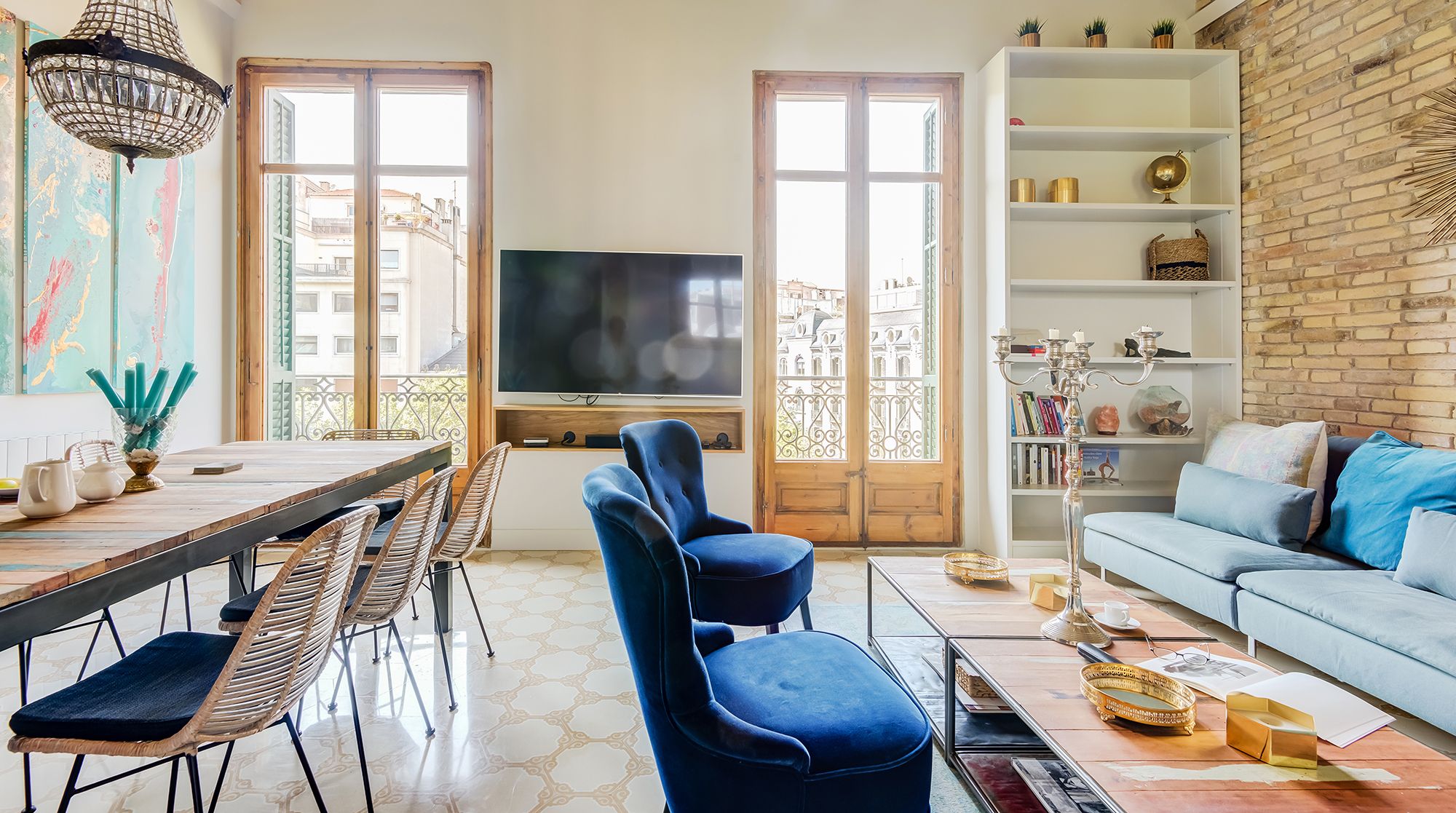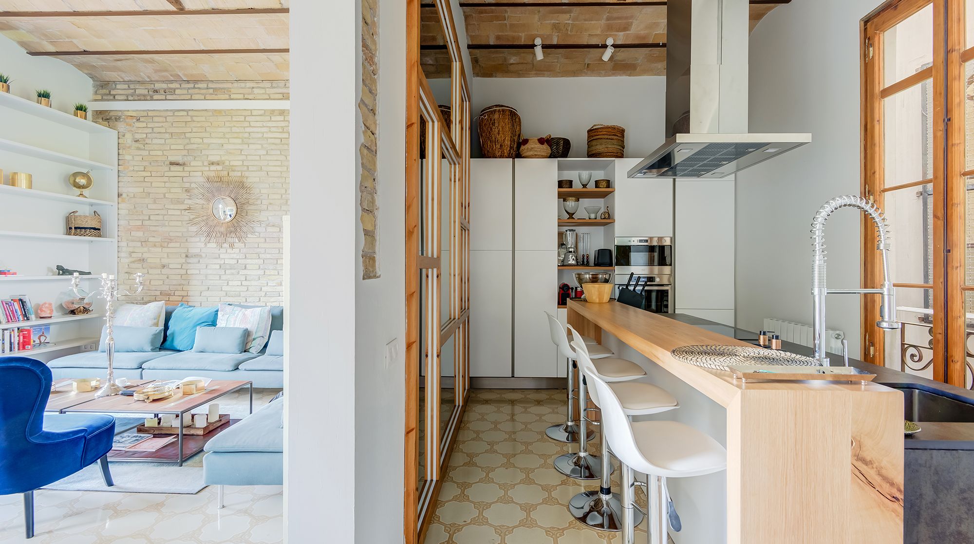 This is an elaborate, luxurious home that feels like an urban palace. Situated right in Avinguda Diagonal, the city's widest and most important avenue, Carmilla is only minutes away from La Pedrera, Casa Batlló, and the many wonderful restaurants of Eixample. With the gorgeous exposed brick walls and traditional arches separating the living room from the kitchen, this home deserves special praise for the well these features have been incorporated with modern elements.