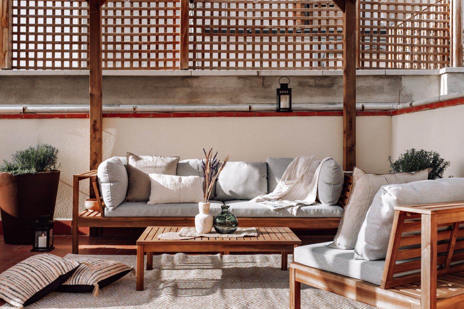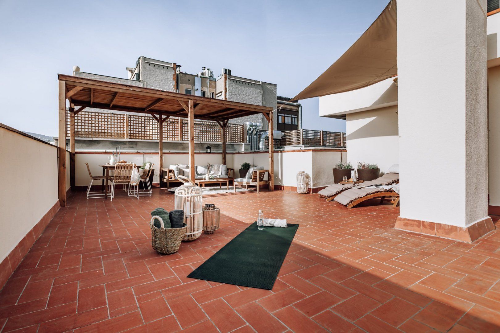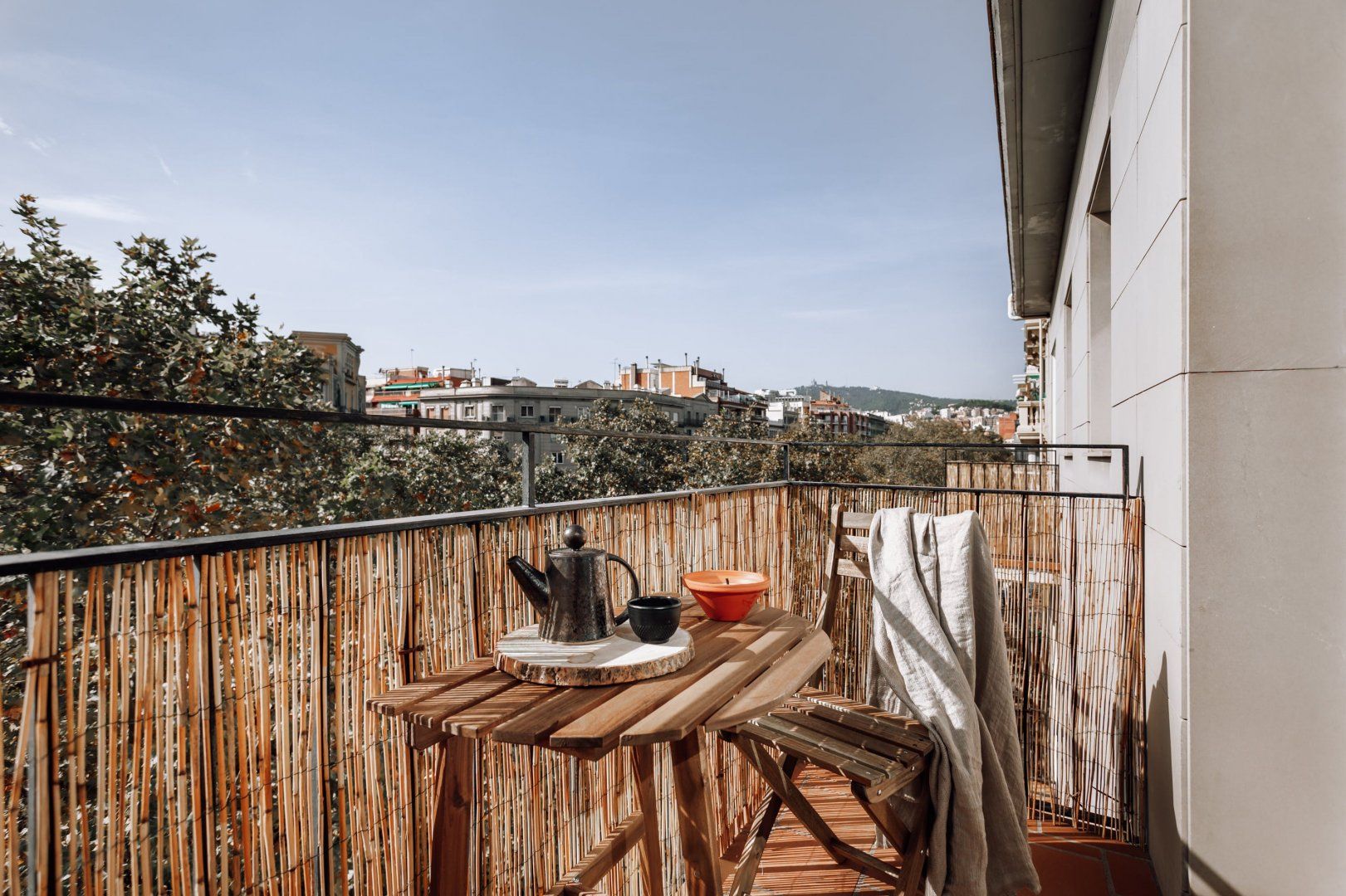 Proving apartment living doesn't have to be boring, this two-bedroom in Barcelona comes complete with sun loungers, a shaded dining table for alfresco dining and a patio furniture set ideal for sunset drinks. And that isn't even our favourite part. Only a short drive from Barceloneta Beach and a walk from iconic sights like La Sagrada Familia, this beautifully decorated home connects you to the best of Barcelona, including some of the finest eateries. Neutral, comfortable and bright, you'll also find an office setup if you need to catch up on work.