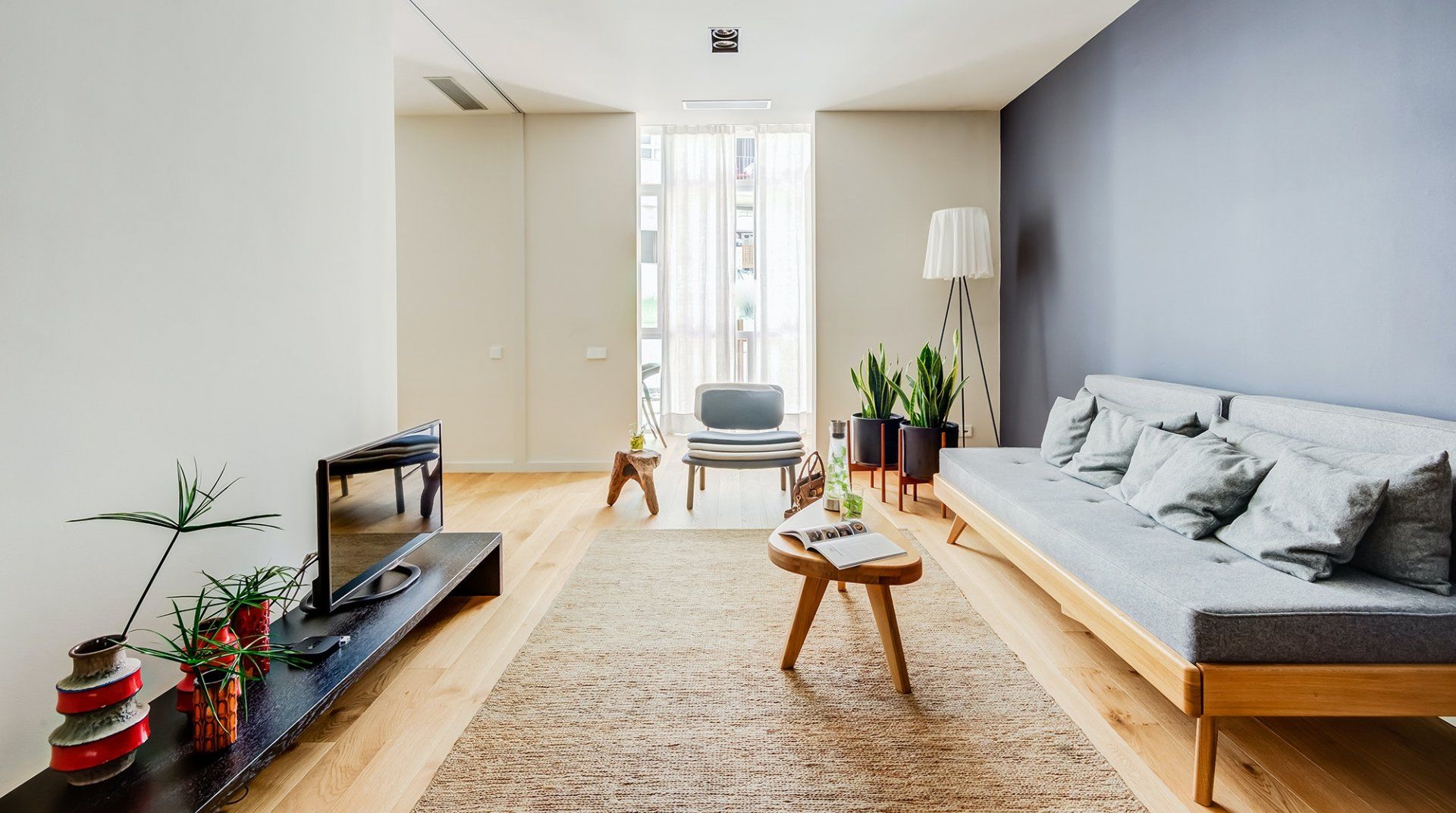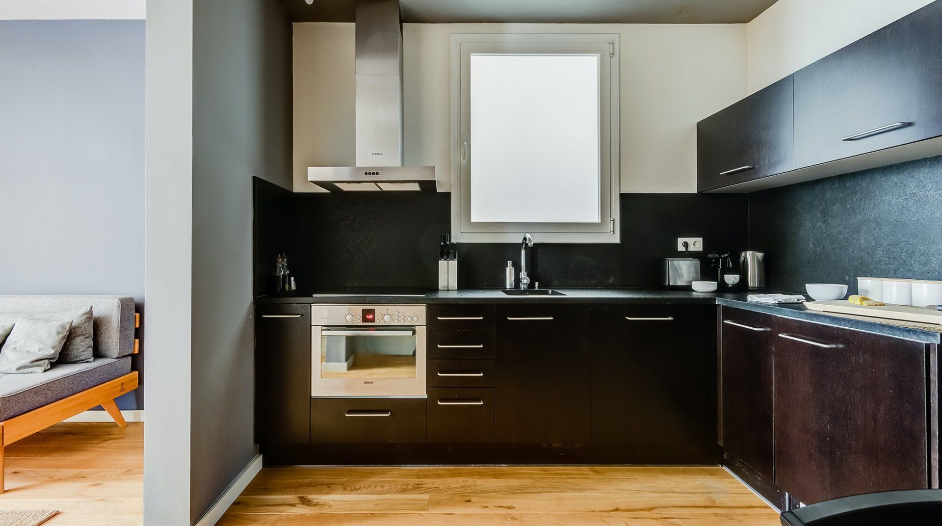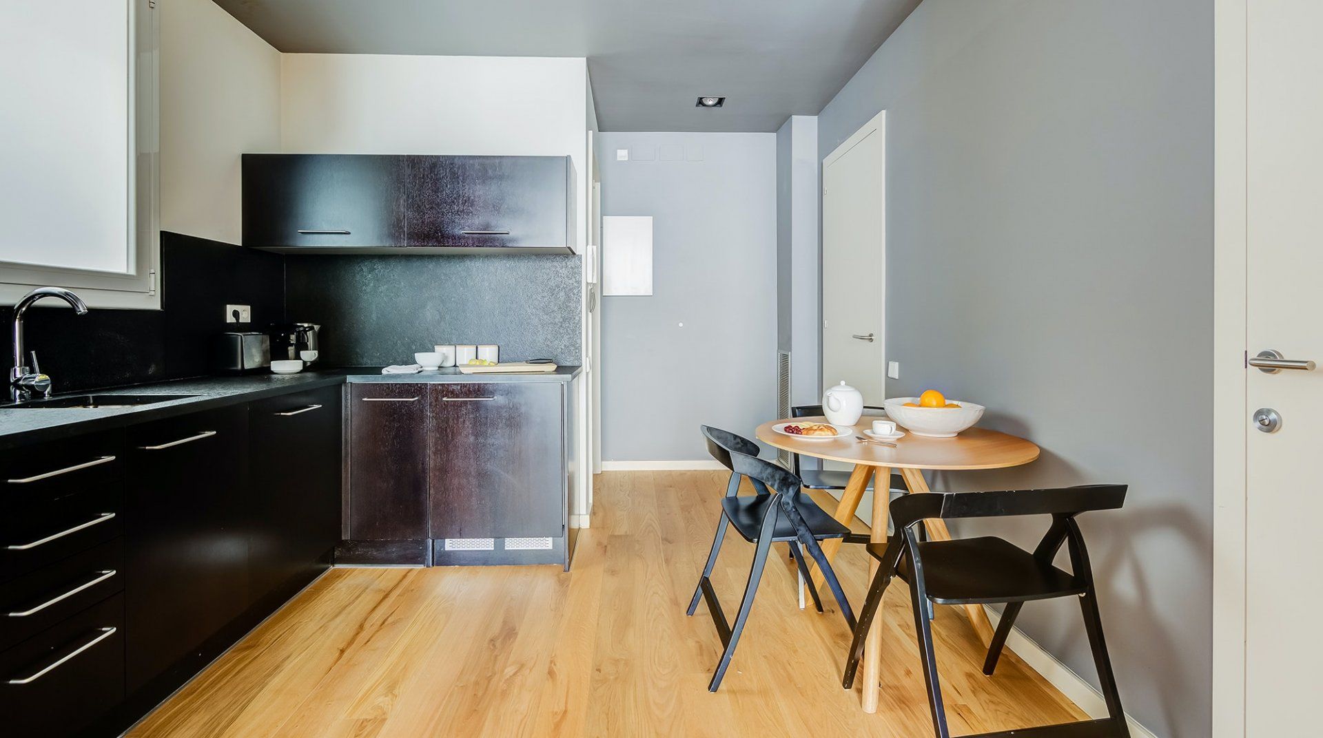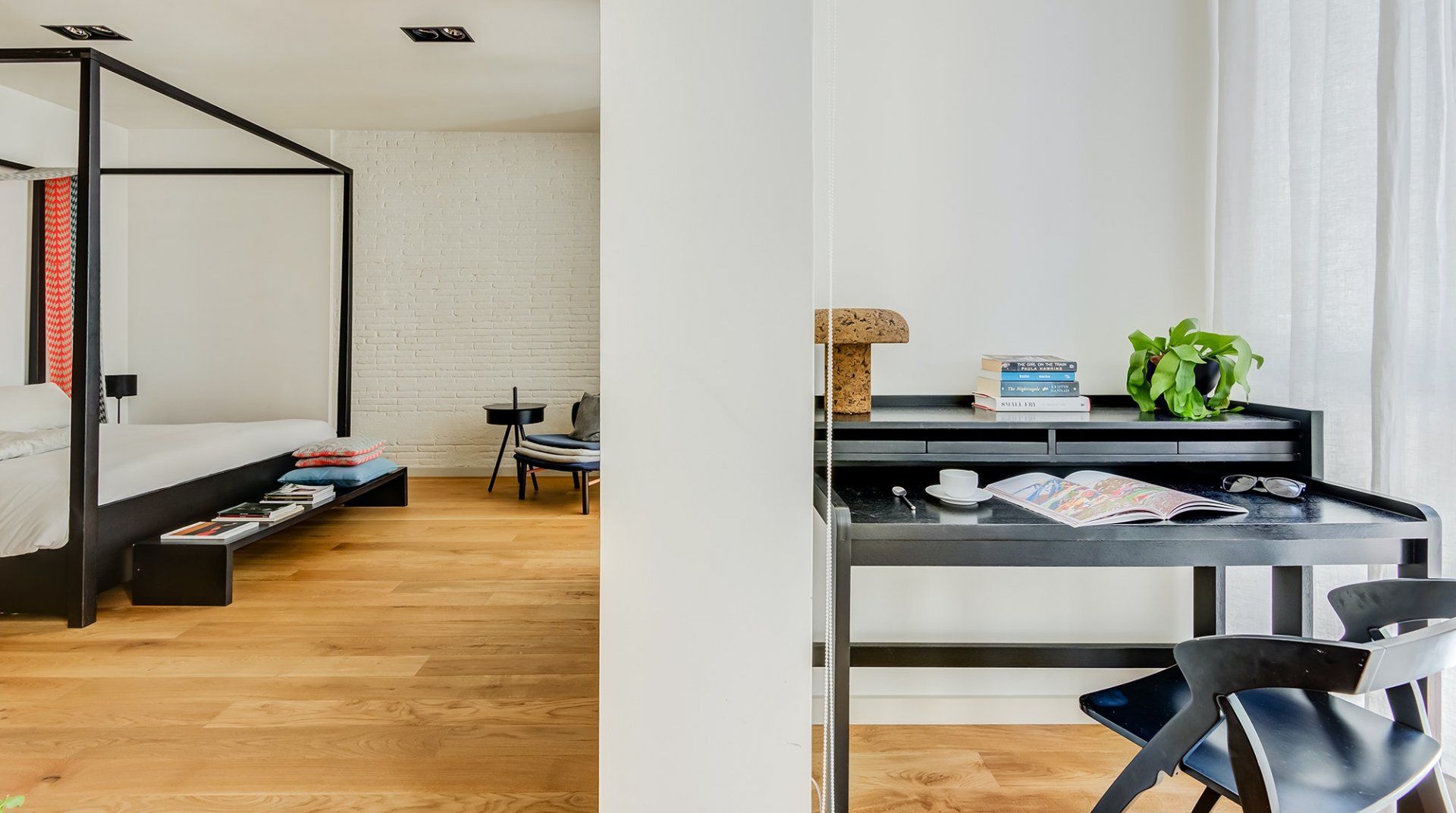 Located on the cusp of the Eixample neighbourhood, this apartment puts you in an excellent position to explore the city in style. It's right on the Ronda de la Universitat, a major thoroughfare in the city, but this sanctuary is pretty peaceful – thanks to it being on the inner side of the building, you get to enjoy the central location without the noise. We liked the splashes of mauve in the living room, as well as the use of natural materials. The kitchen is kitted out with basic seasonings and cooking ingredients, and there's a juicer and Nespresso machine to make mornings a delight. And the true standout feature of this home is the bedroom, with its impressive modern twist on a classic four-poster bed and painted brick wall. Step outside, and it's just a four-minute walk to the Plaça de Catalunya, and you can arrive at the labyrinthine Gothic Quarter in less than fifteen minutes.