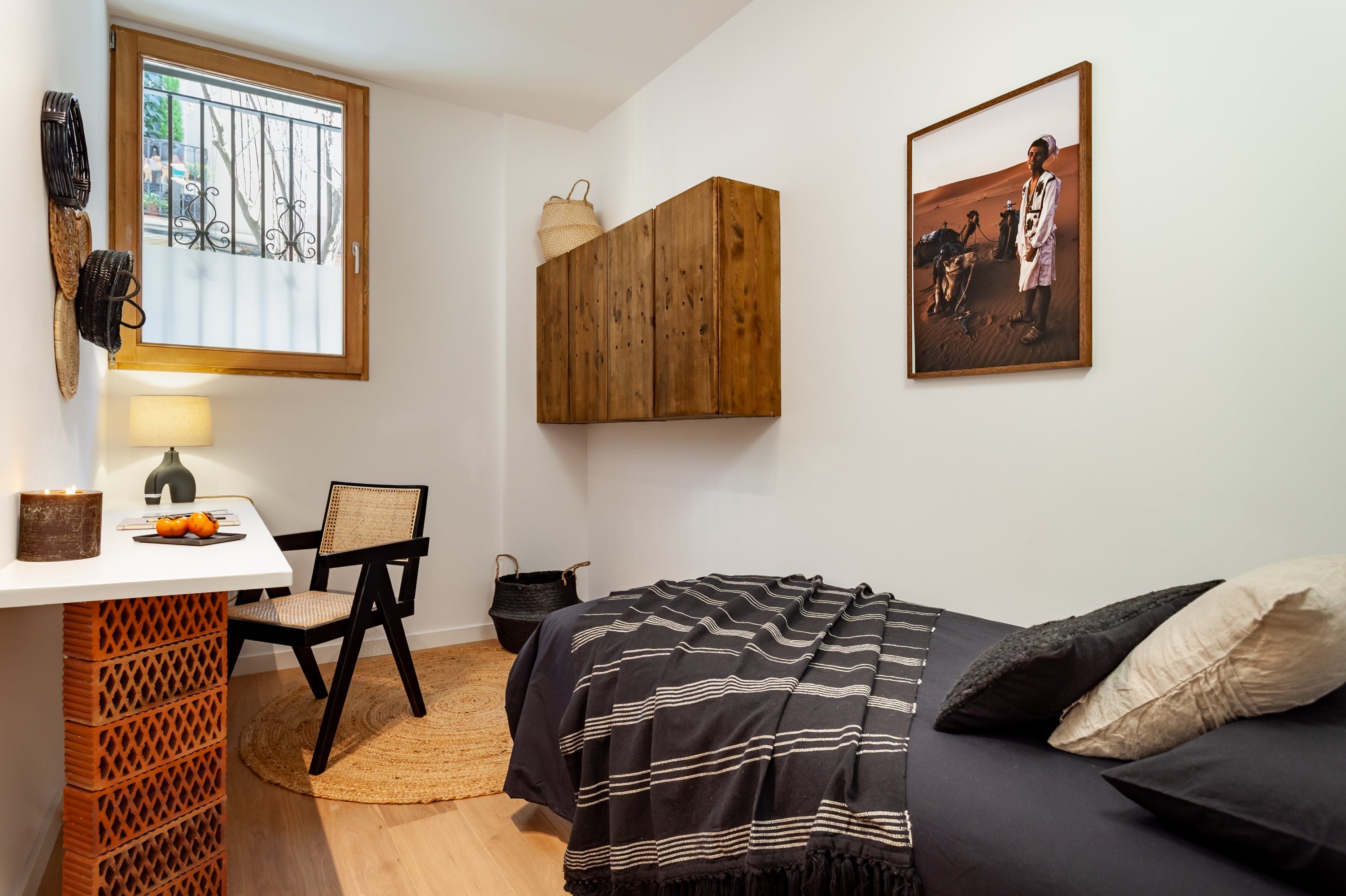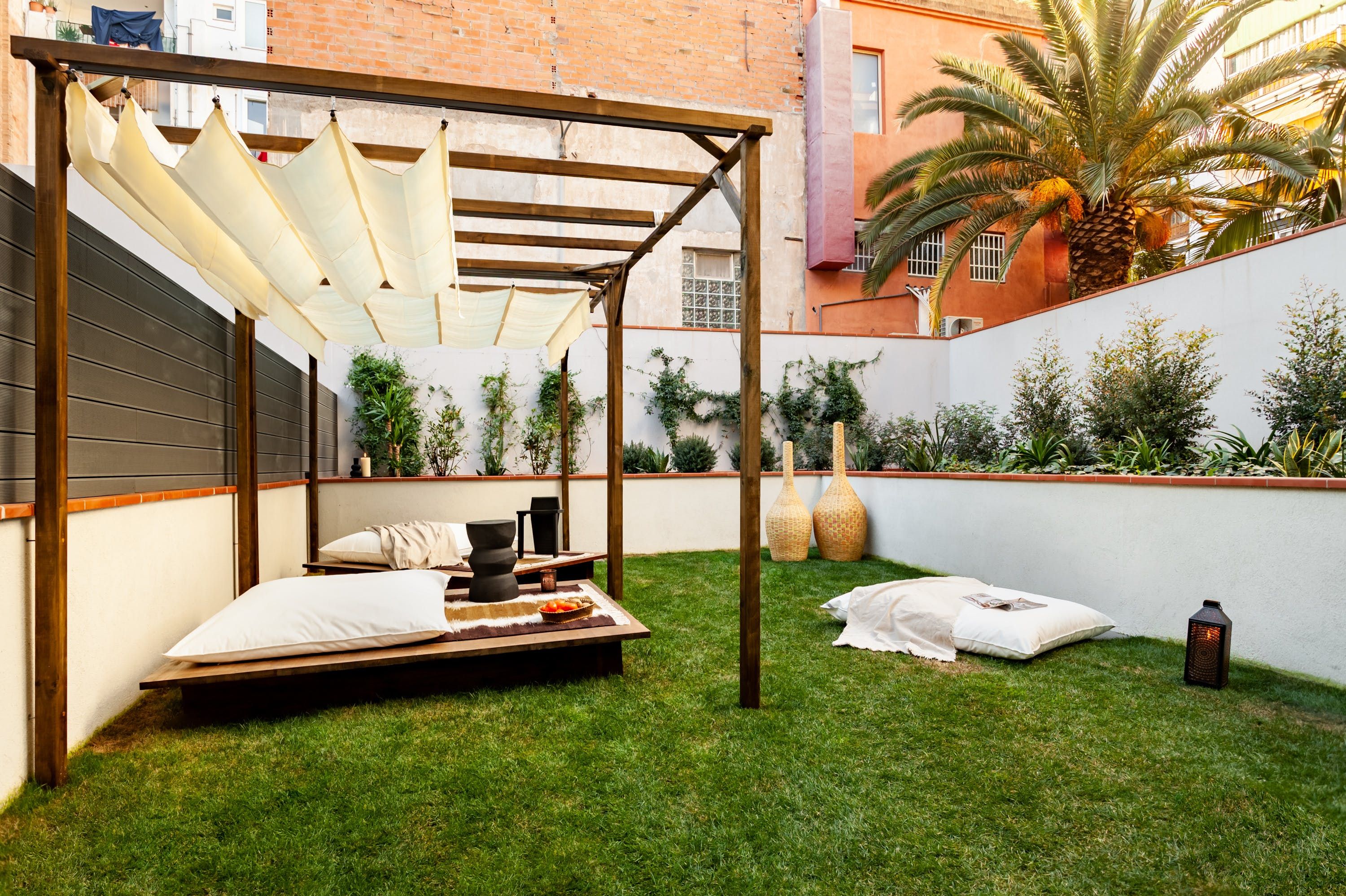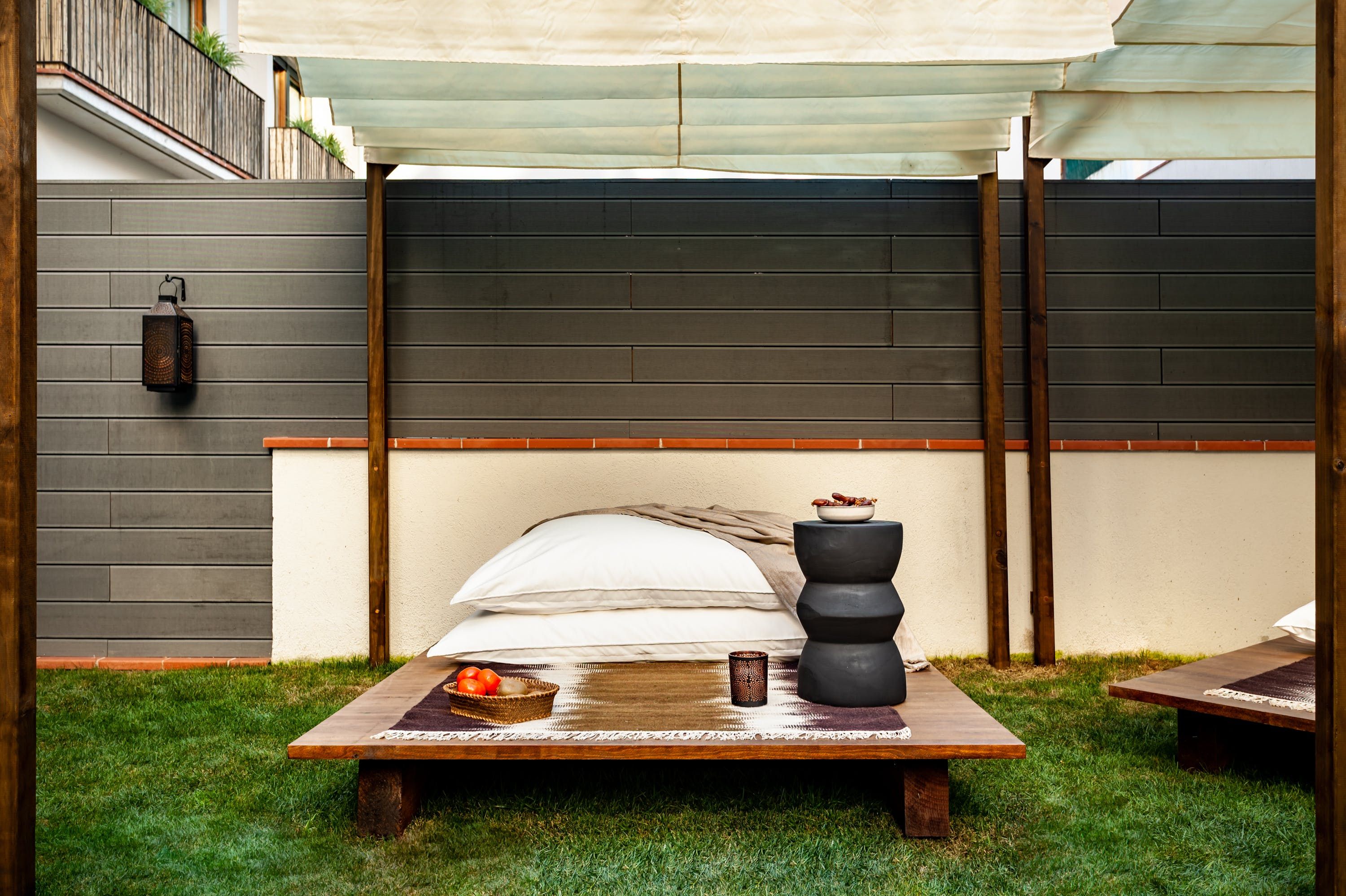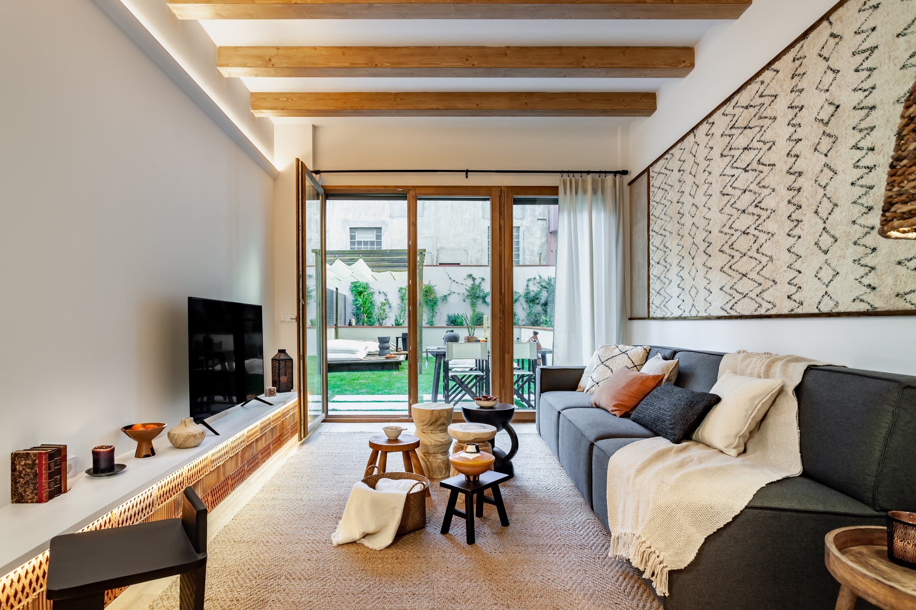The interior combines modern luxury with a sense of tranquility – the earthy tones, natural textures, and lavish fabrics create a soothing ambiance where you can kick back and relax between your adventures. Budding chefs will love practicing their Spanish dishes in the kitchen, before serving up their creations either inside or outside on the patio. The garden space is a real treat in the city where you can chill on a sofa with a good book. And, there's even a shared swimming pool – so, when the temperature rises you can cool off with a refreshing dip.