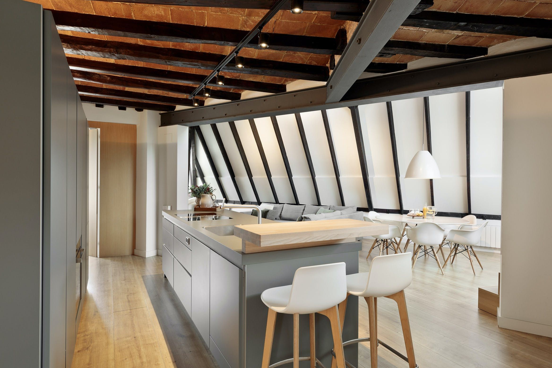 You’ll find this attractive penthouse apartment in the heart of Barcelona. It’s a short walk from Cala Mila and there’s no shortage of bars and restaurants nearby. Fontana metro station is close too, so you can easily get around the city. The apartment itself is modern and sleek, a stylish base for four. Best of all, it has a beautiful terrace equipped with sun loungers and a dining table. Admire Tibidabo Mountain views while sipping sunset cocktails – what more could you ask for?