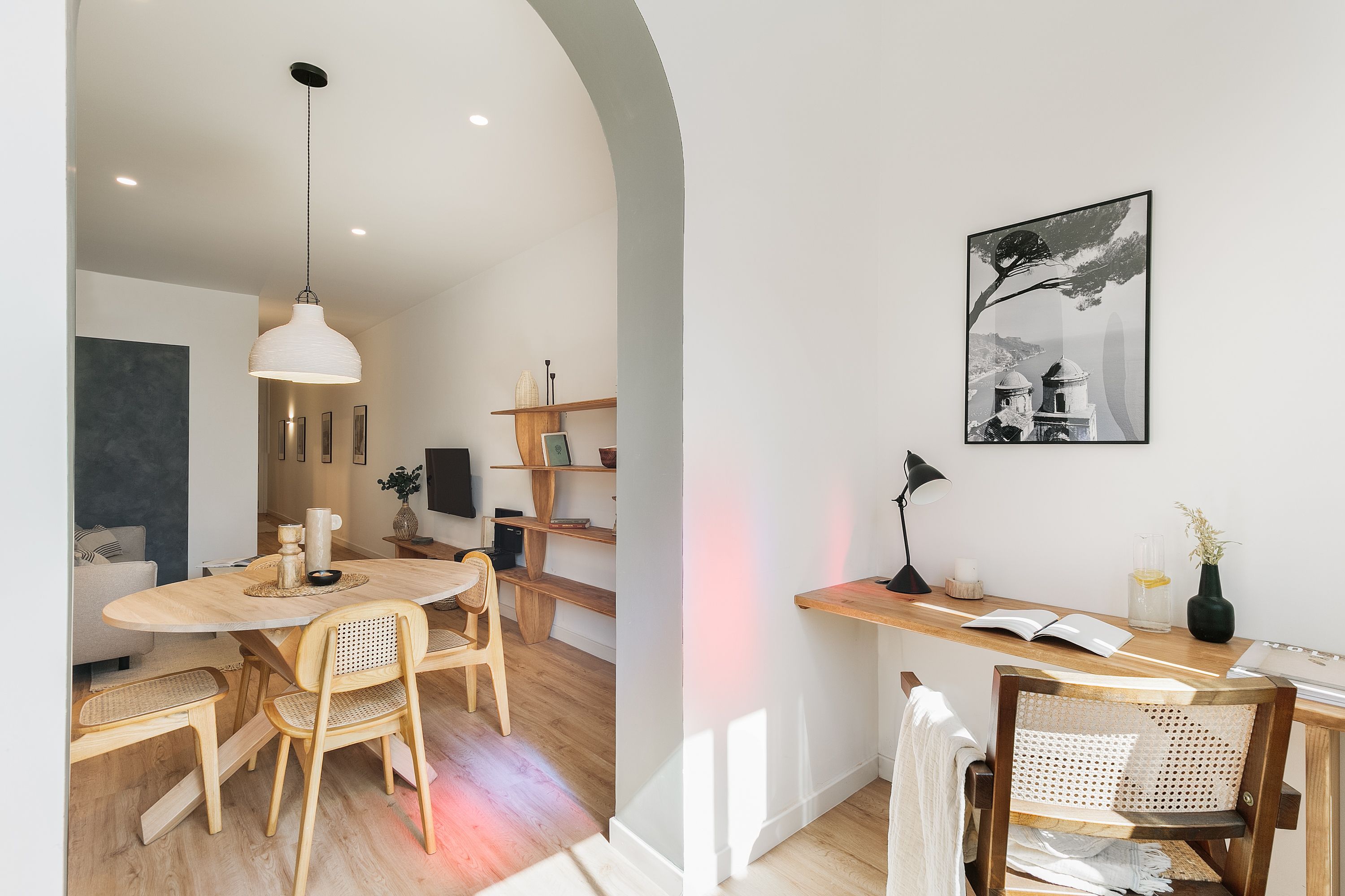 This modern apartment is an ideal base whether you’re in Barcelona for business or leisure. Granted, some areas of the home lack a little natural light, but the open-plan living and dining area is a bright space, perfect for gathering as a group. Business travellers will appreciate the sun nook with a desk setup, making remote working a breeze. Locally, you’ll find a selection of eateries lining the streets, ranging from cafes to fine dining, so a true taste of Spain is never far away.