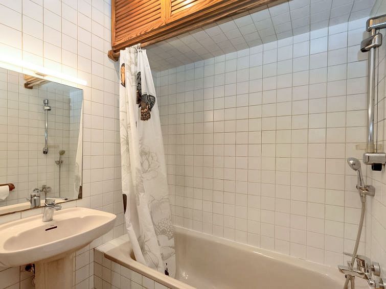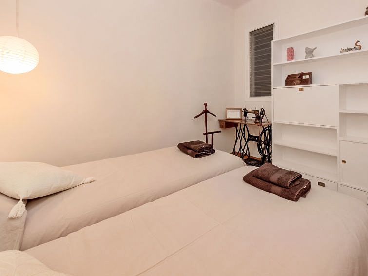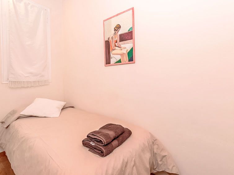 3-room apartment 65 m2 on 3rd floor. Simple and practical furnishings: dining room with air conditioning and forced-air heating. Exit to the balcony. Lounge with digital TV and flat screen. Exit to the balcony. 1 room with 2 beds. 1 small room with 1 bed (80 cm, length 190 cm). Kitchen (4 hot plates, oven, microwave, freezer, electric coffee machine).