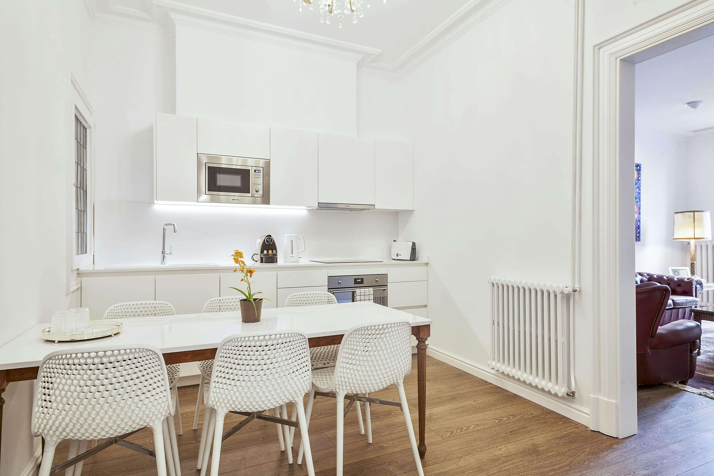 Perched on the bustling Passeig de Gràcia, this apartment is just across the street from Gaudí's famous Casa Battló. You're so close that you can spot the fantastical architecture from the balcony – there may be nowhere to sit, but you can't beat the views. The home consists of two separate apartments connected by a hallway. That means you'll have two kitchens, two living areas, and double the amount of space. Factor in the central location – this pad is within walking distance of many landmarks, shops, and restaurants – and you can see why it caught our eye.
