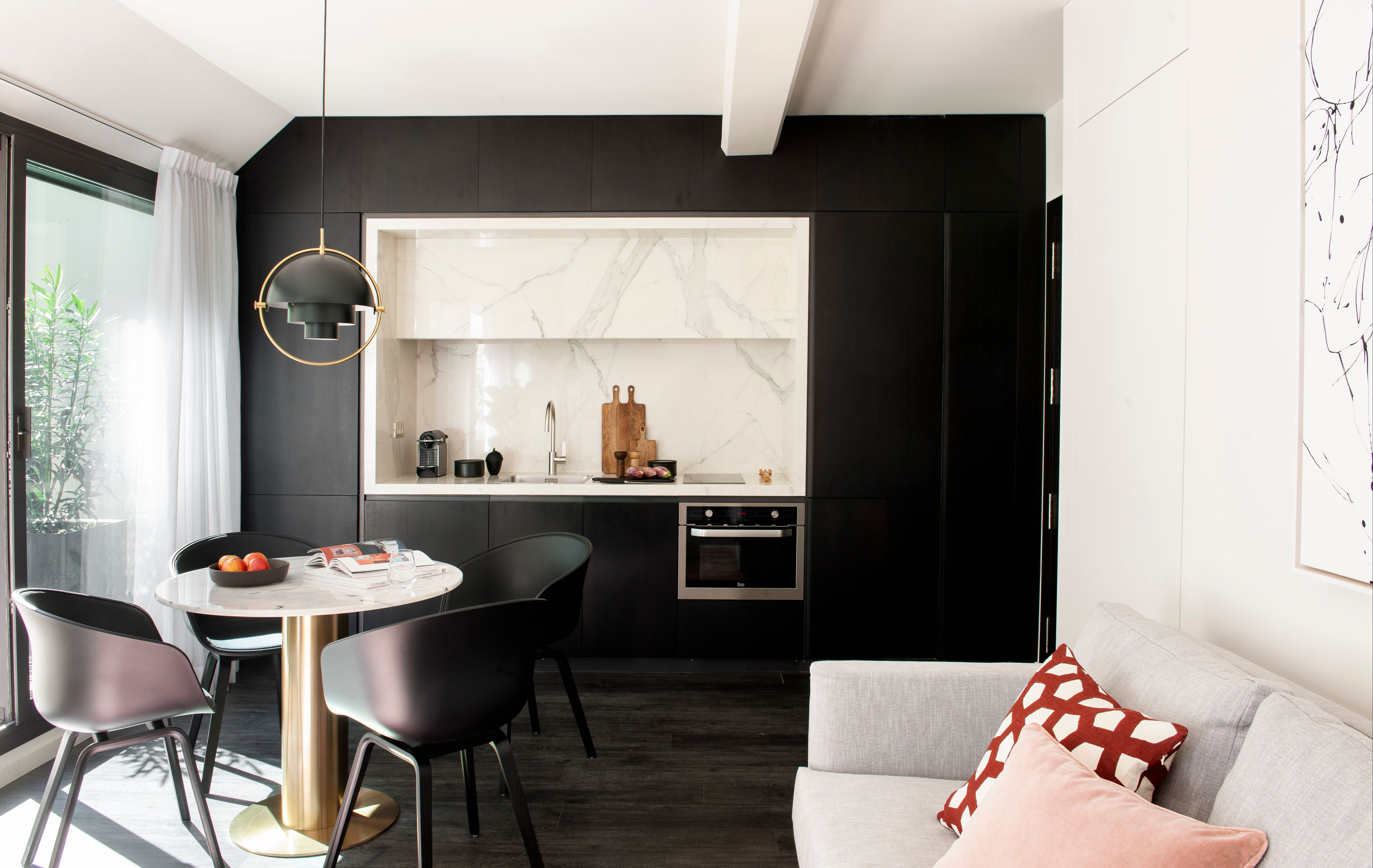 Not only is this apartment devastatingly chic, with sleek black lines, marble finishes, and touches of dusty pink, the location is ideal for exploring Barcelona. Although the apartment is so beautiful, you almost might not want to leave (almost...)