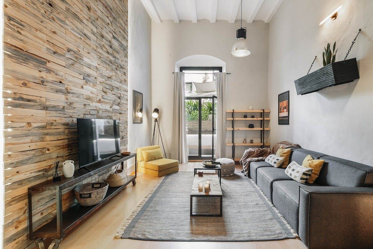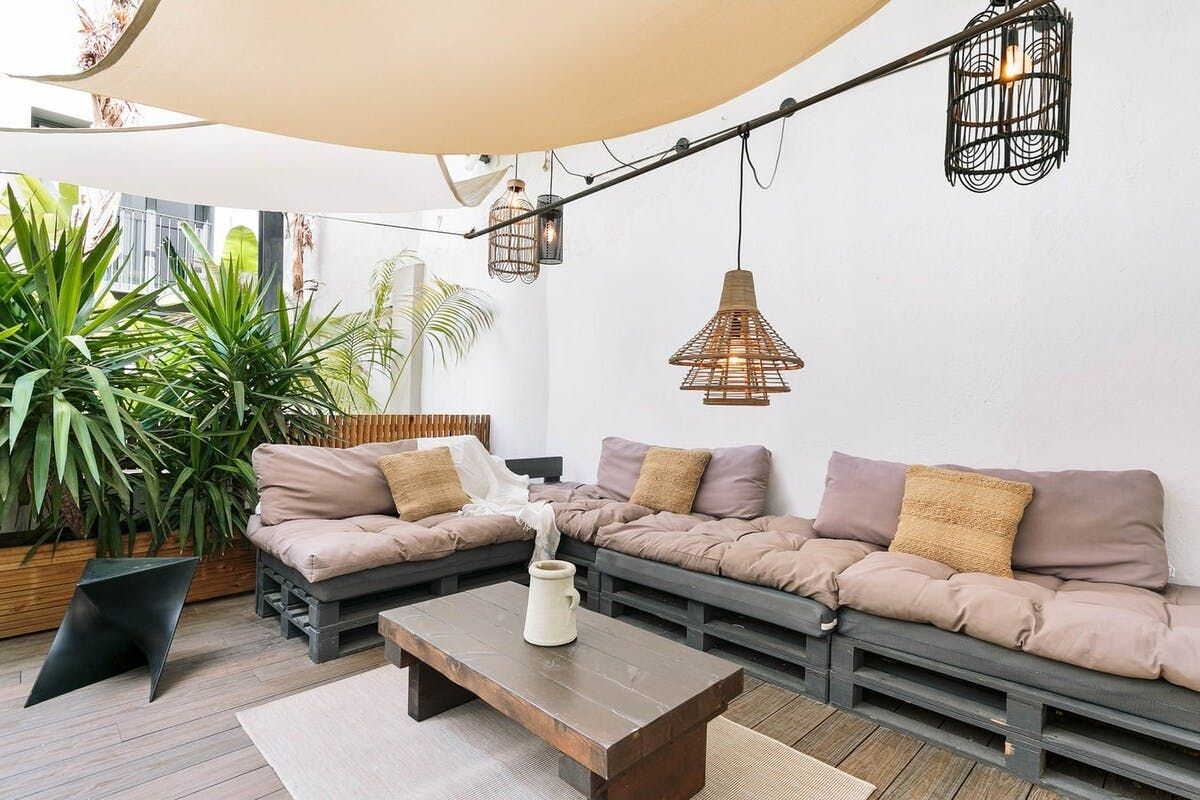Like a breath of fresh air above the busy activity of Barcelona’s historic centre, Flor de Loto is completely modern and tranquil. The crowning glory is the private twenty-five square metre terrace – a plant-filled haven with incredibly generous seating space. This is the perfect spot to work, dine or just relax with an aperitif after a day spent on your feet. In the tented lounge area, with its hanging lamps and cosy sofas, you can lie back and take in Barcelona's enchanting night sky. The air conditioner and fans inside the home will keep you cool in the warmer months, and high ceilings will fill the home with air and light. Step outside your building and you’re in the heart of vibrant, trendy El Born, bursting with bohemian boutiques and local favourite tapas bars.