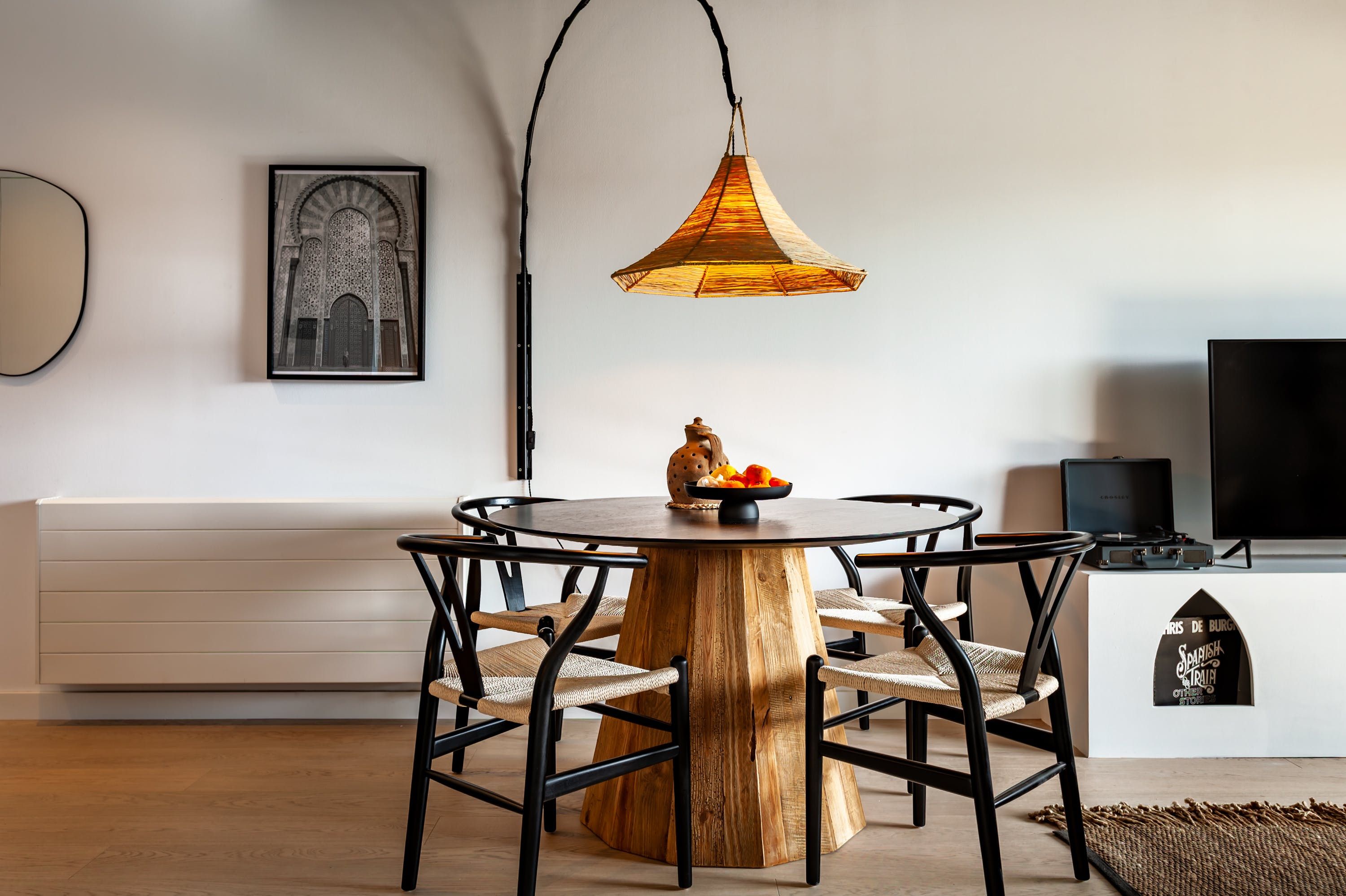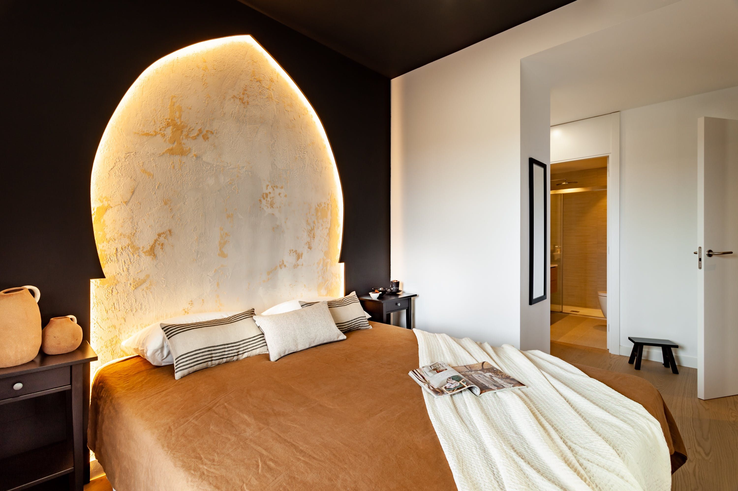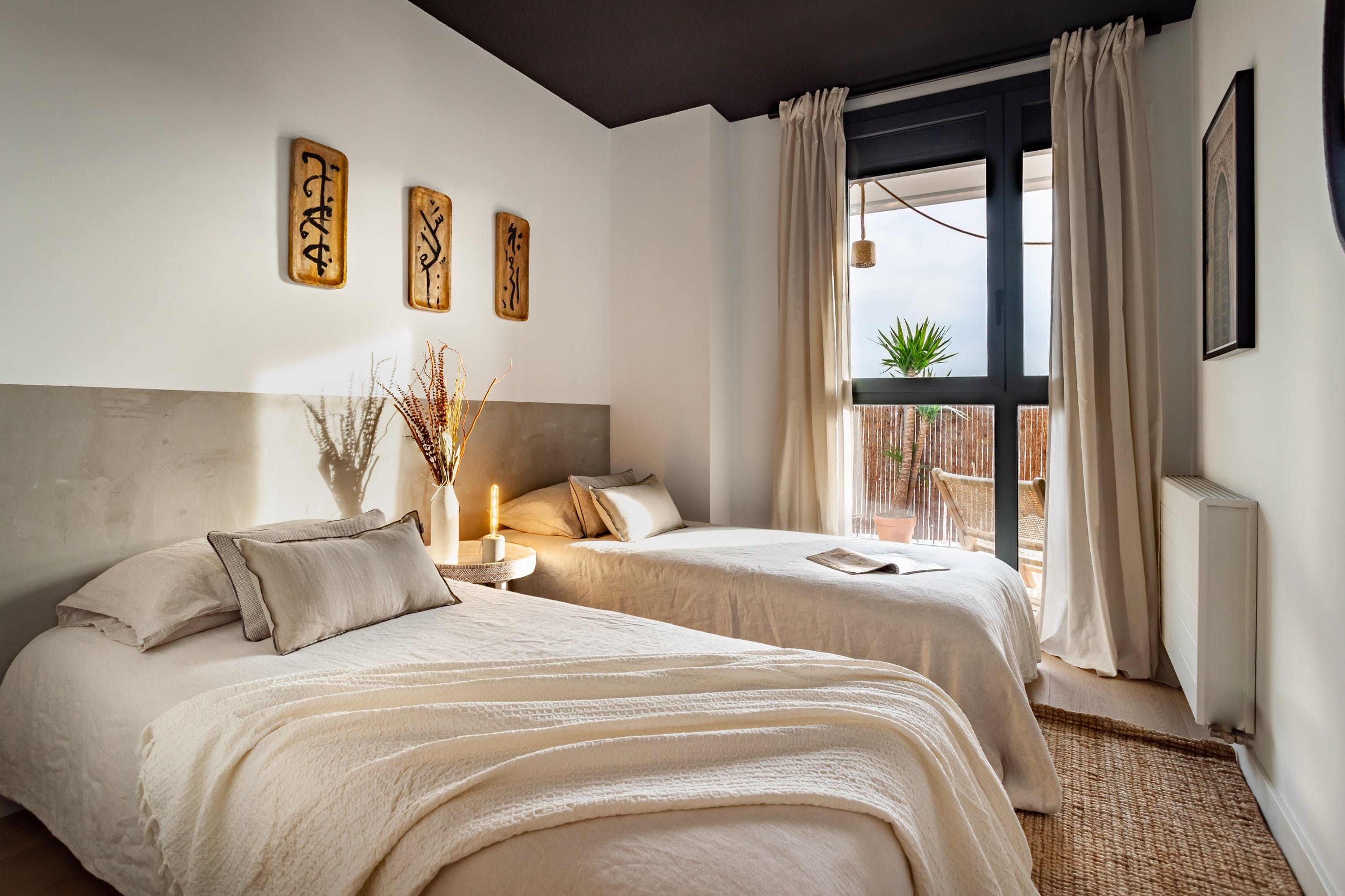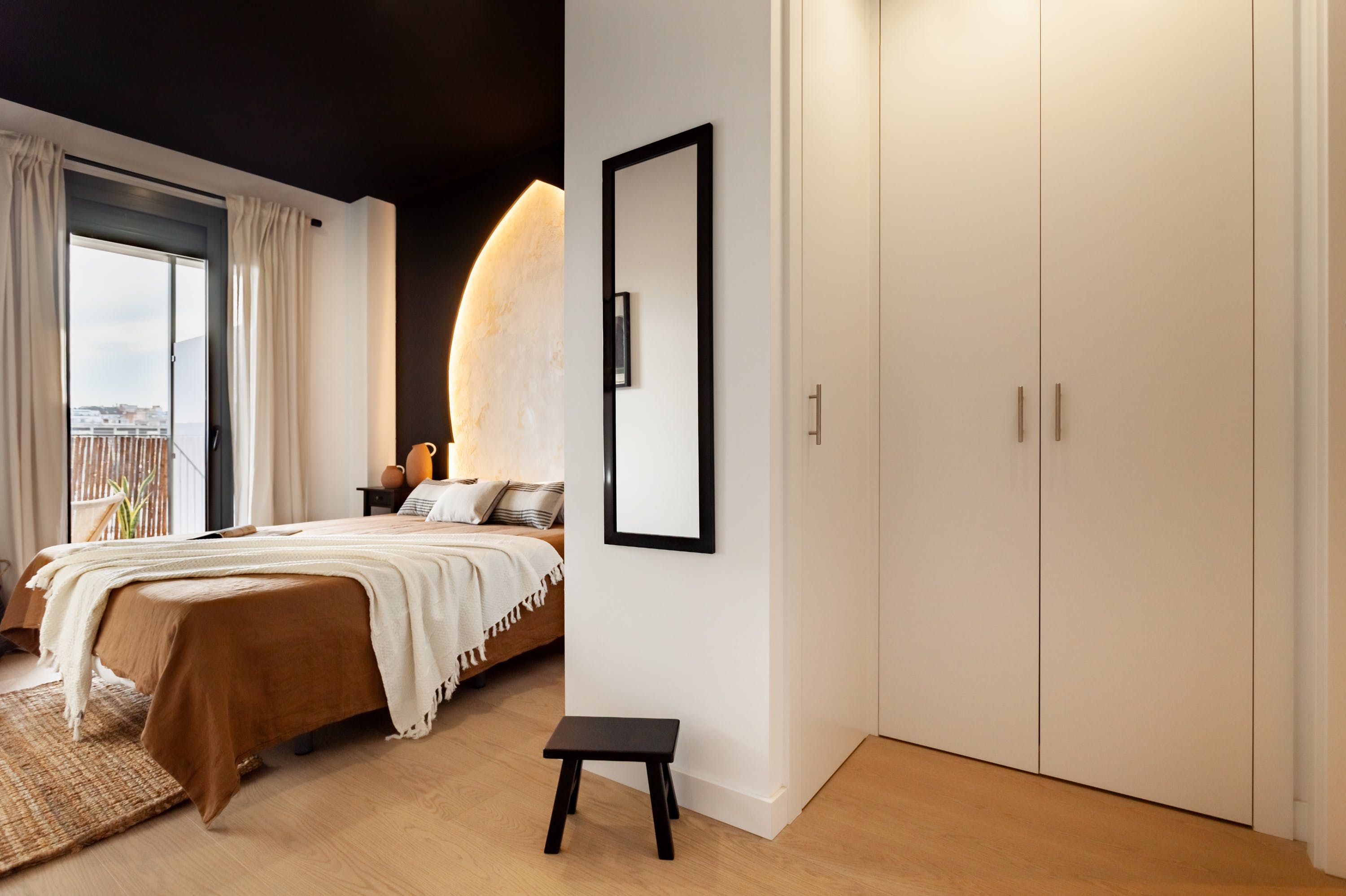 Surround yourself with style and sunshine at this modern home in central Barcelona. With a cosy private terrace, impeccably decorated interiors access to a shared swimming pool, the kitted-out apartment has more than just its stellar location going for it. Wake up in chic surroundings – we particularly love the living room's matte black ceiling – and enjoy breakfast in the morning sun, then head downstairs for a dip before venturing into the vibrant city streets.