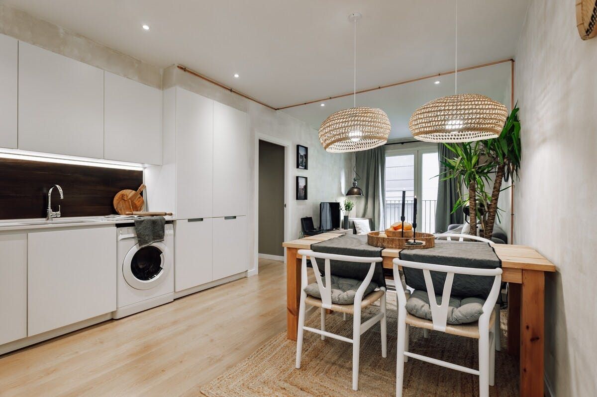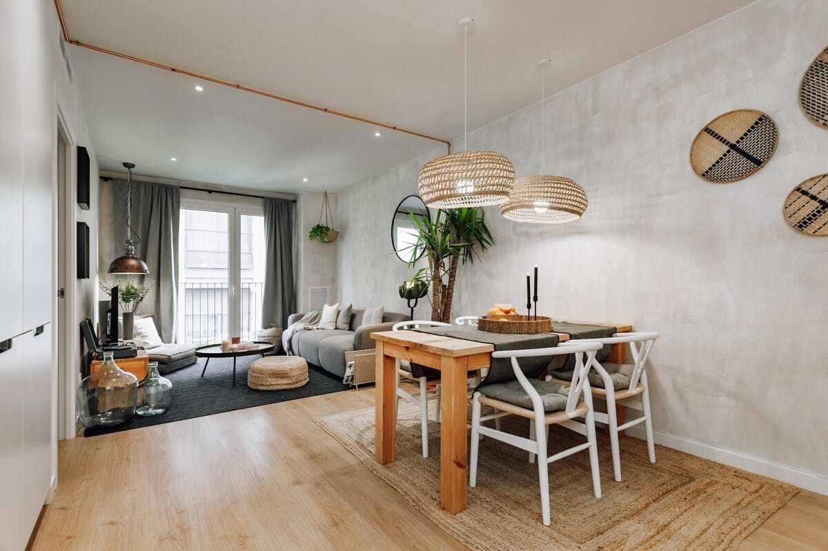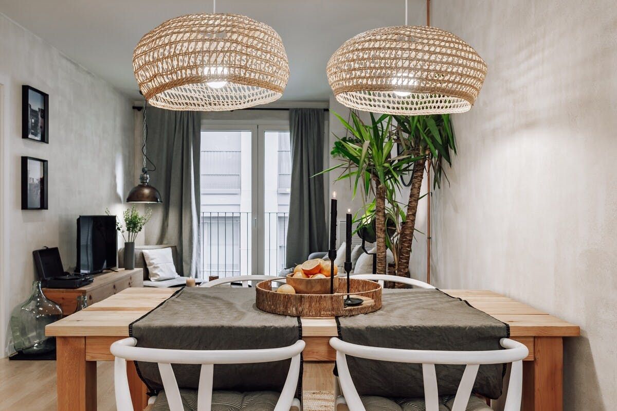Dense with wicker and self-watering foliage (via a smart irrigation system), this one-bed apartment opposite the Sagrada Famila is well-equipped for the modern traveller. A dedicated, clutter-free workspace makes working from home easy; pause between sessions with coffee at the sturdy wood table or on the squashy pouffe in your office. Floor-to-ceiling windows fill rooms with natural light. Grab an art book and curl up on the sofa in the afternoon or turn on the Netflix-equipped smart TV. For dinner, you’ll find the kitchen fully fitted out with cooker, oven, microwave and dishwasher. Should you wish to head out, you’ll find the central sights of Eixample right outside your door.