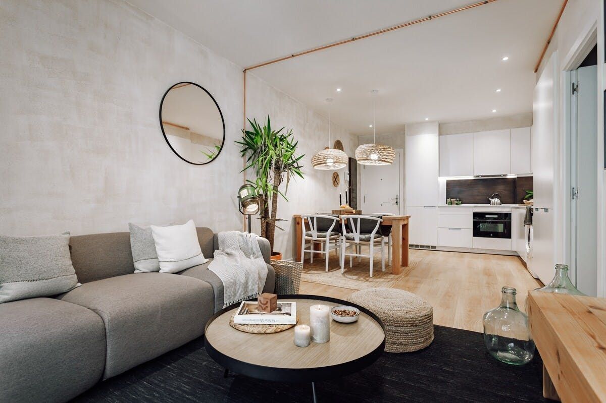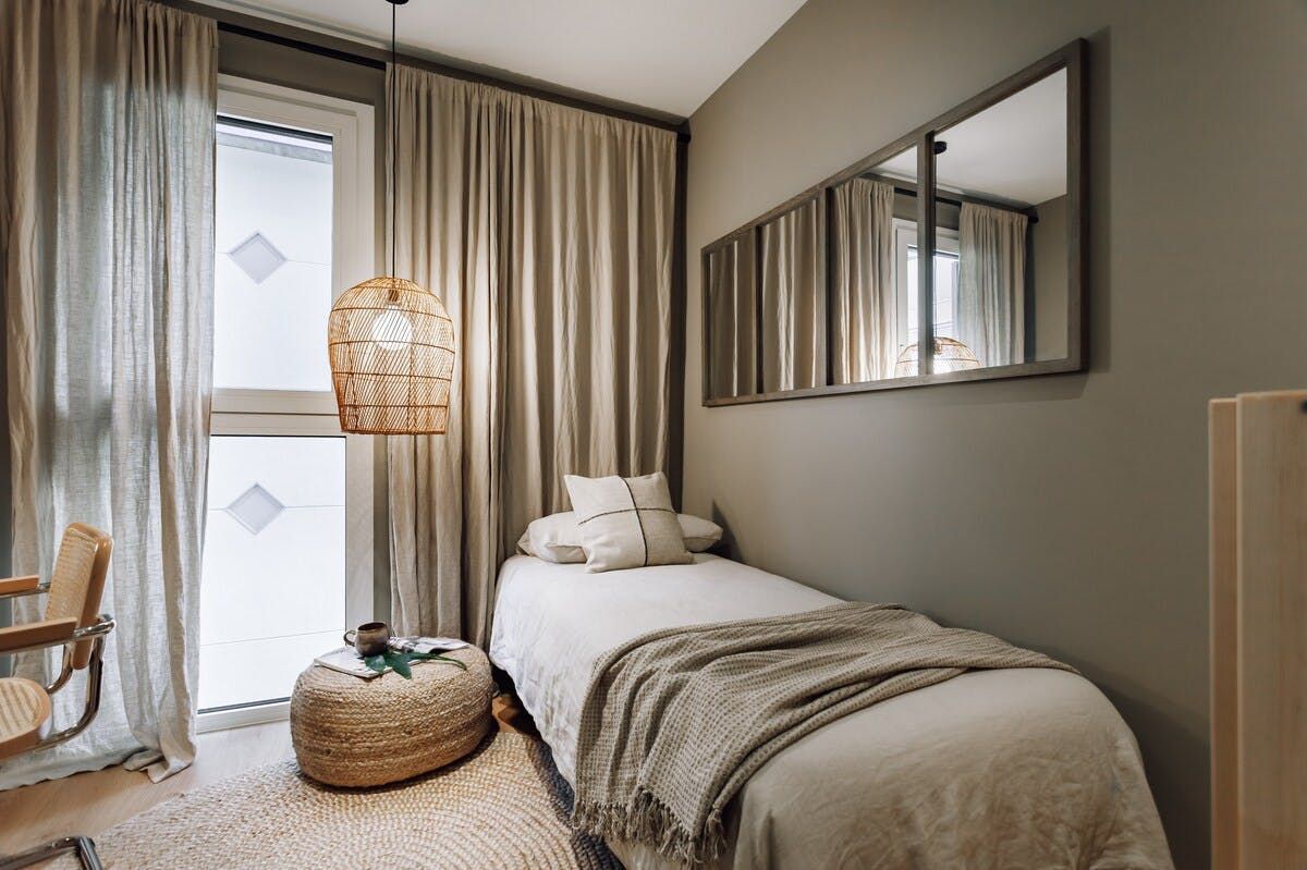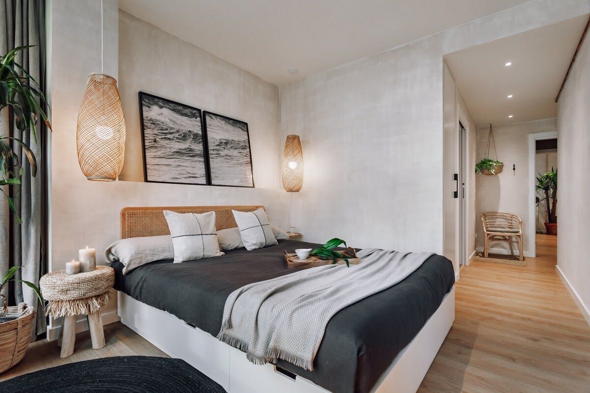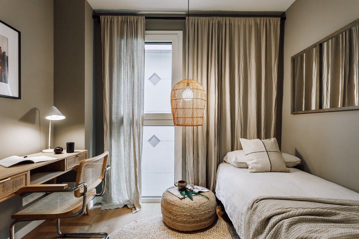 Dense with wicker and self-watering foliage (via a smart irrigation system), this one-bed apartment opposite the Sagrada Famila is well-equipped for the modern traveller. A dedicated, clutter-free workspace makes working from home easy; pause between sessions with coffee at the sturdy wood table or on the squashy pouffe in your office. Floor-to-ceiling windows fill rooms with natural light. Grab an art book and curl up on the sofa in the afternoon or turn on the Netflix-equipped smart TV. For dinner, you’ll find the kitchen fully fitted out with cooker, oven, microwave and dishwasher. Should you wish to head out, you’ll find the central sights of Eixample right outside your door.