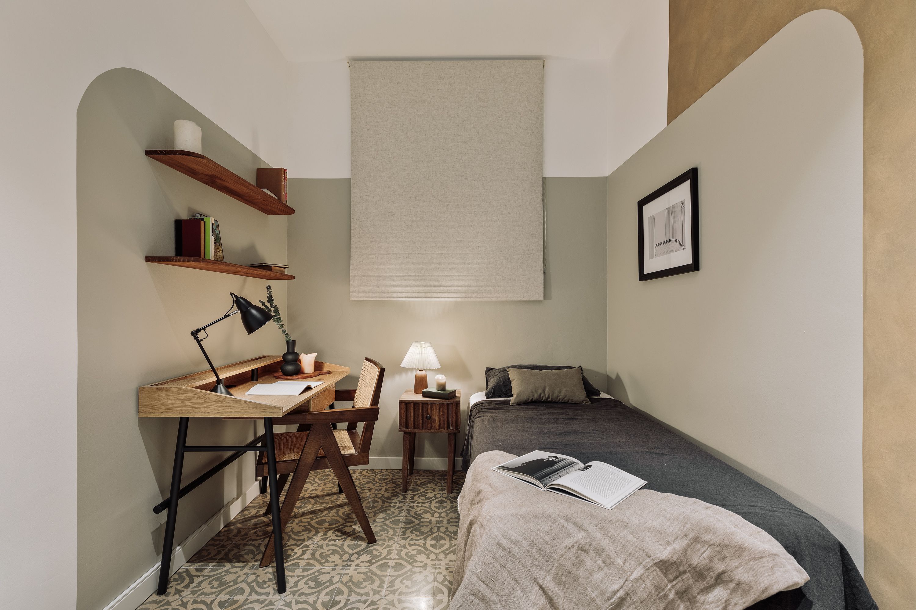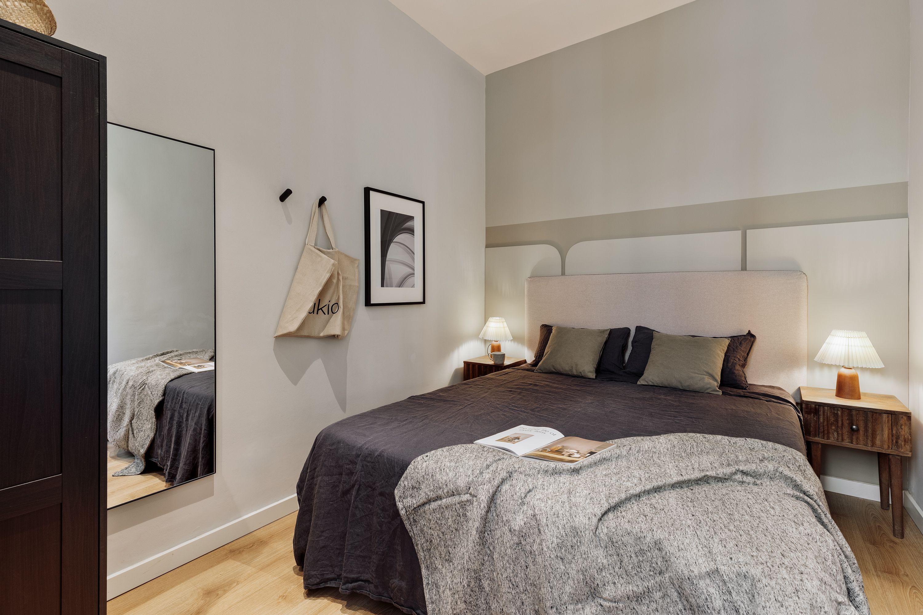 Nestled in Sagrada Família, this modern apartment is an ideal base for sightseeing in the city. Sure, it has a slightly quirky layout in that you have to go through a bedroom to reach the outdoor space, but it shouldn’t pose a problem for families and friends. The courtyard, though simple, is a welcome spot to enjoy the Mediterranean climate. Locally, you can discover hidden parks, streets lined with Spanish eateries, and of course, Gaudi’s Basílica de la Sagrada Família, a stone’s throw from the apartment and well worth a visit.