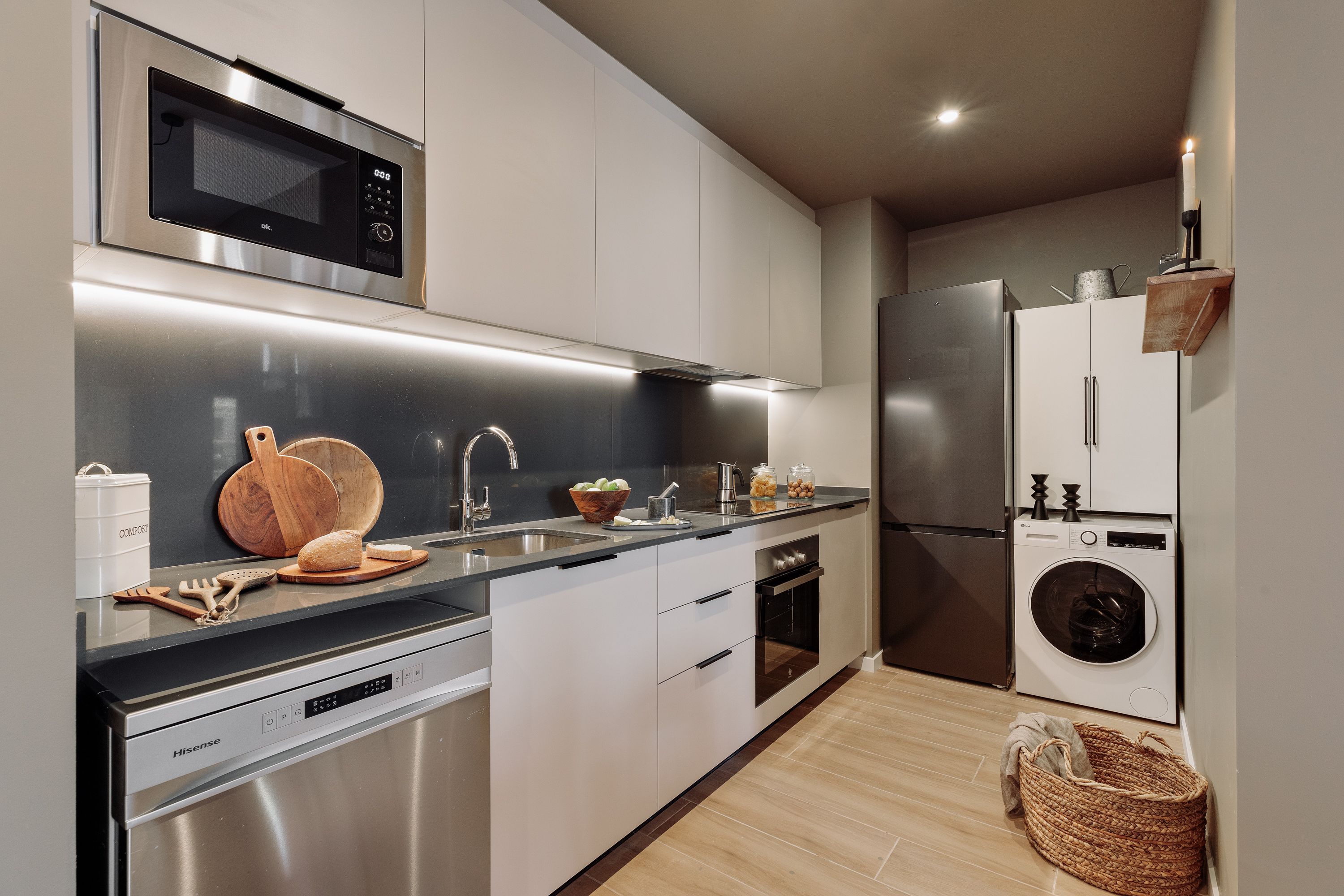 This cosy sanctuary is nestled in the heart of Sant Antoni. You can stroll to the famous market for fresh local produce and there's a great selection of restaurants, cafes and bars within easy reach. There’s no private parking available here, but there are great public transport links ensuring quick connections with the rest of the city. Wherever the day takes you, this apartment makes it easy to switch off and unwind. The living room is perfect for cosy evenings at home and there’s a dedicated desk in the second bedroom – perfect for remote workers.