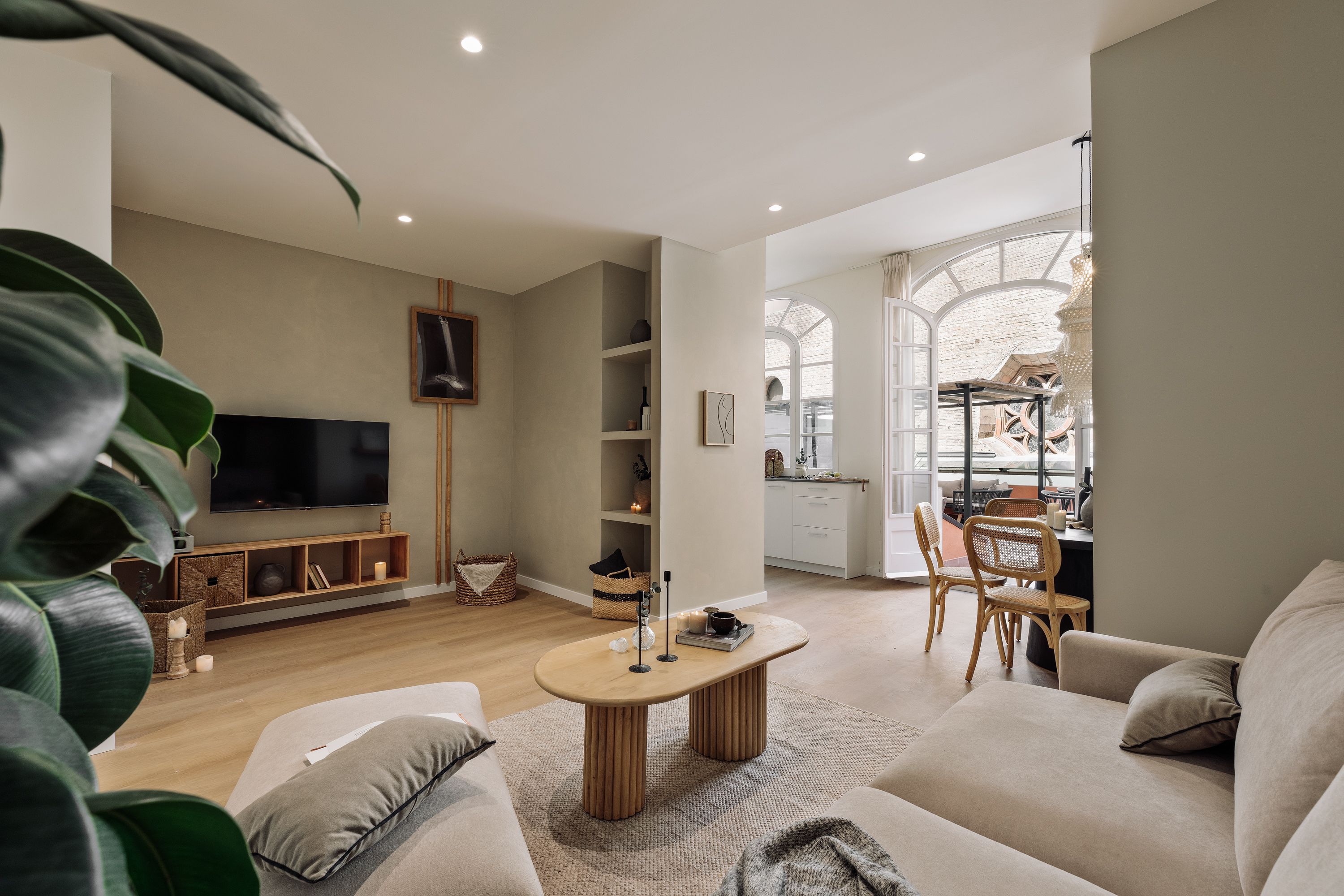 Tucked away in the Gràcia district of Barcelona, this apartment is just the ticket for families and friends alike. It’s worth noting that one bedroom is internal, but as long as you don’t mind the lack of natural light, it has everything needed for a comfortable night’s rest. But the cherry on the cake for us here is the outdoor space. For a city apartment, the terrace space is generous with areas for dining or relaxing on sofas – just the spot for soaking up the Spanish sun.