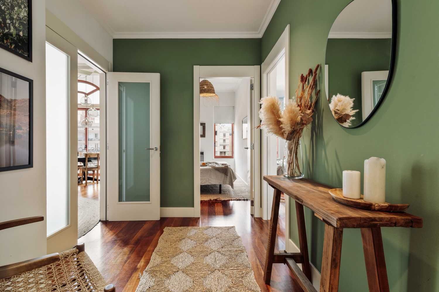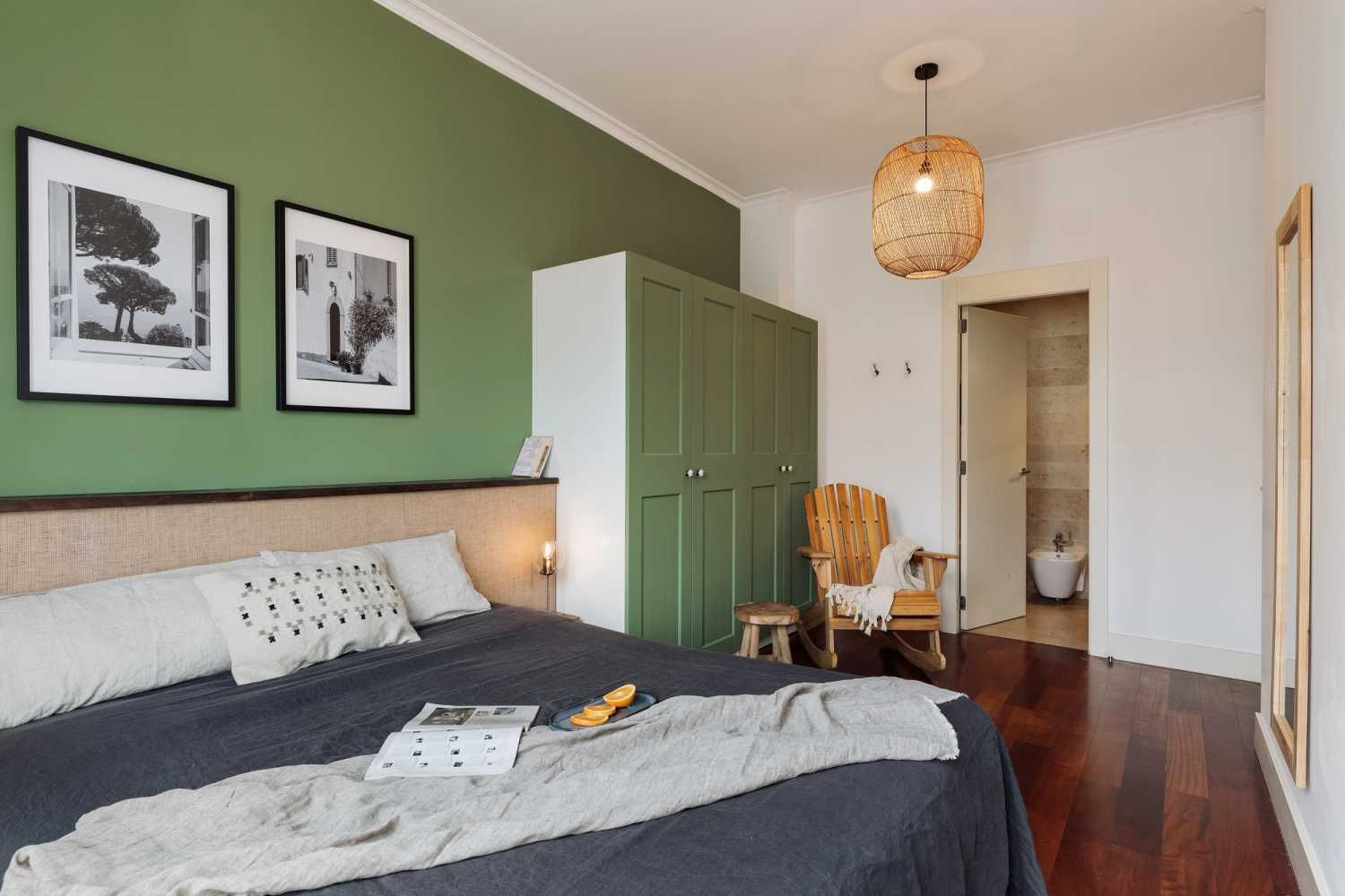 The bustling barrio of Eixample is home to plenty of stylish boutiques, kerbside cafés, and tasteful restaurants. It’s also a hotspot for some of the city’s most incredible architecture, with Gaudí’s Casa Batlló just a five-minute walk from this (almost) equally beautiful apartment. A masterclass in art deco design, the first things you’ll notice when entering the vast living space are the archway and enormous windows. With hardwood frames in a typical early 1900s style, preceded by tasteful green and white patterned diamonds on the inner arch, this unique space transports you back in time. From here, take a glass of Catalan wine out to the balcony and gaze out to city views. And for an extra touch of vintage elegance, why not stick something on the record player while you’re at it. Earthy greens, natural fibres, and wooden highlights create a calming atmosphere throughout the home. But if you're looking for a thrilling and vibrant environment, you can stroll to the Gothic Quarter in fifteen minutes. Spend an evening winding through the maze of cobbled streets, past the 13th-century cathedral, stopping in at various cocktail bars or nibbling tapas en route.