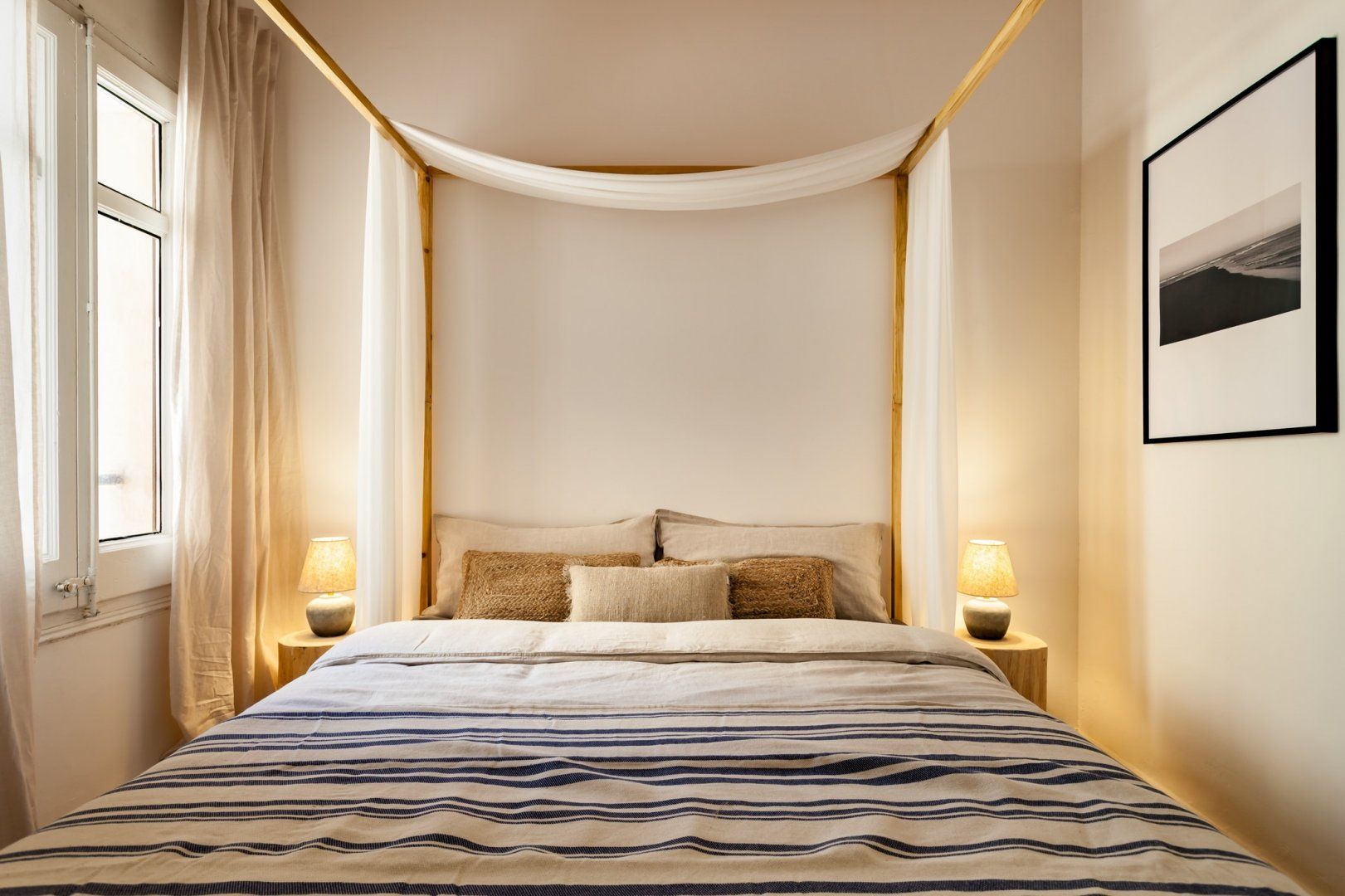 After a day of sightseeing, come back home for a glass of wine on the sofa while you listen to some tunes on the record player. The kitchen’s column of hanging herbs invites you to cook up a feast to enjoy at the industrial-style dining table when you're not out sampling the local tapas scene. And when sleep beckons, retreat to the calm bedrooms – we're particularly fond of the main bedroom's four-poster – where a serene night's sleep awaits.