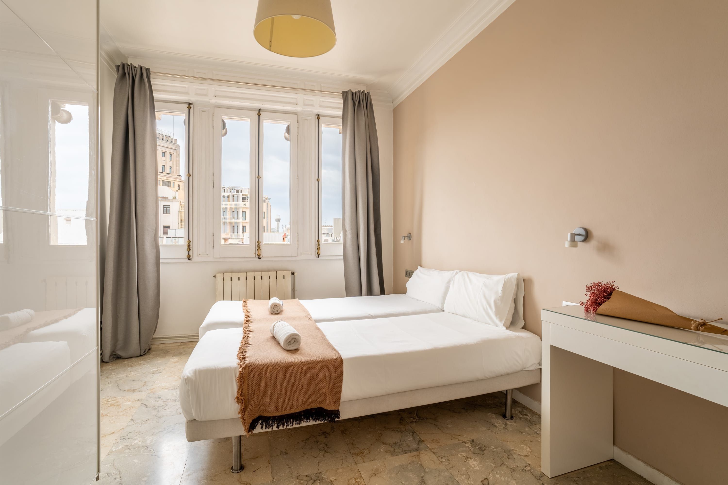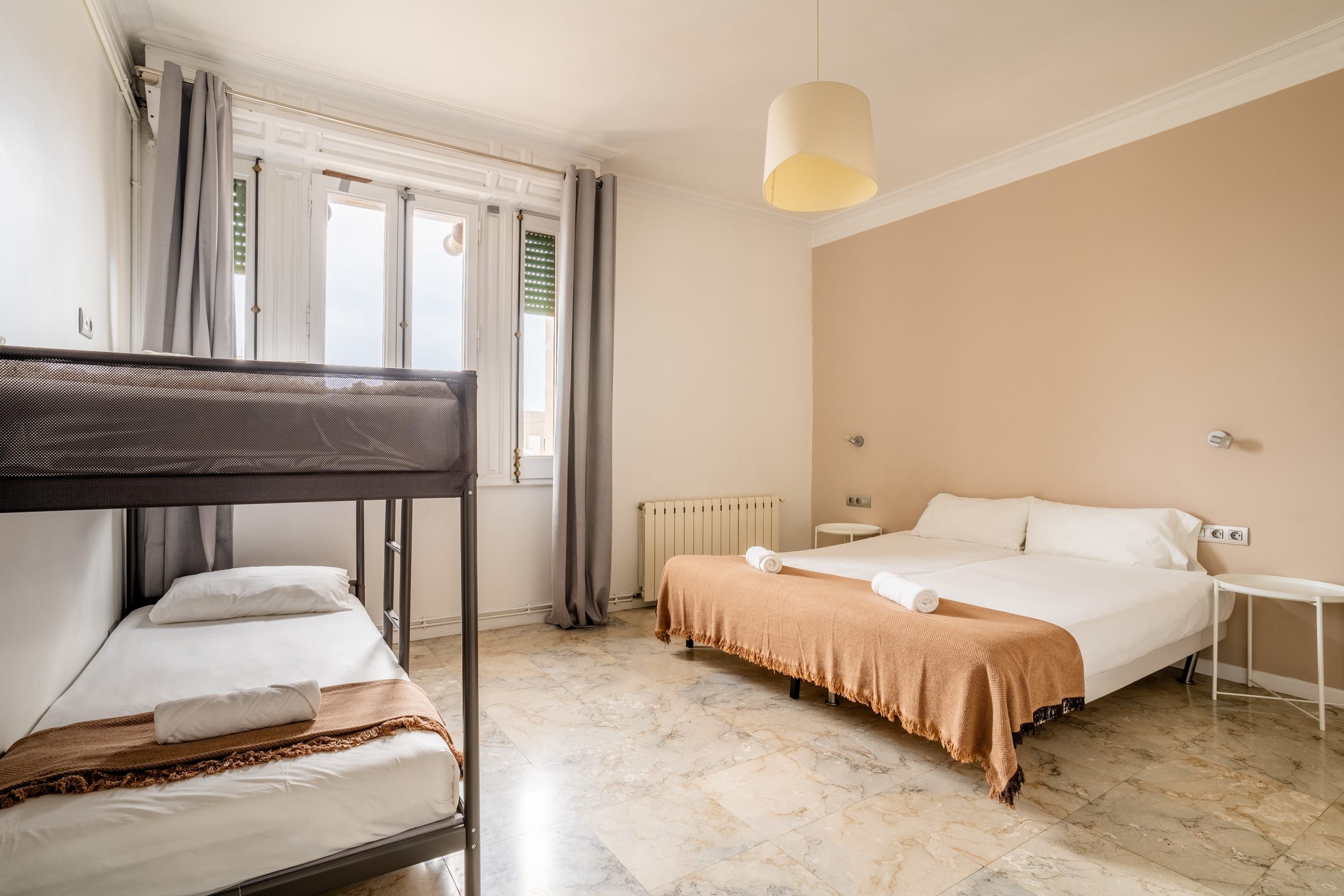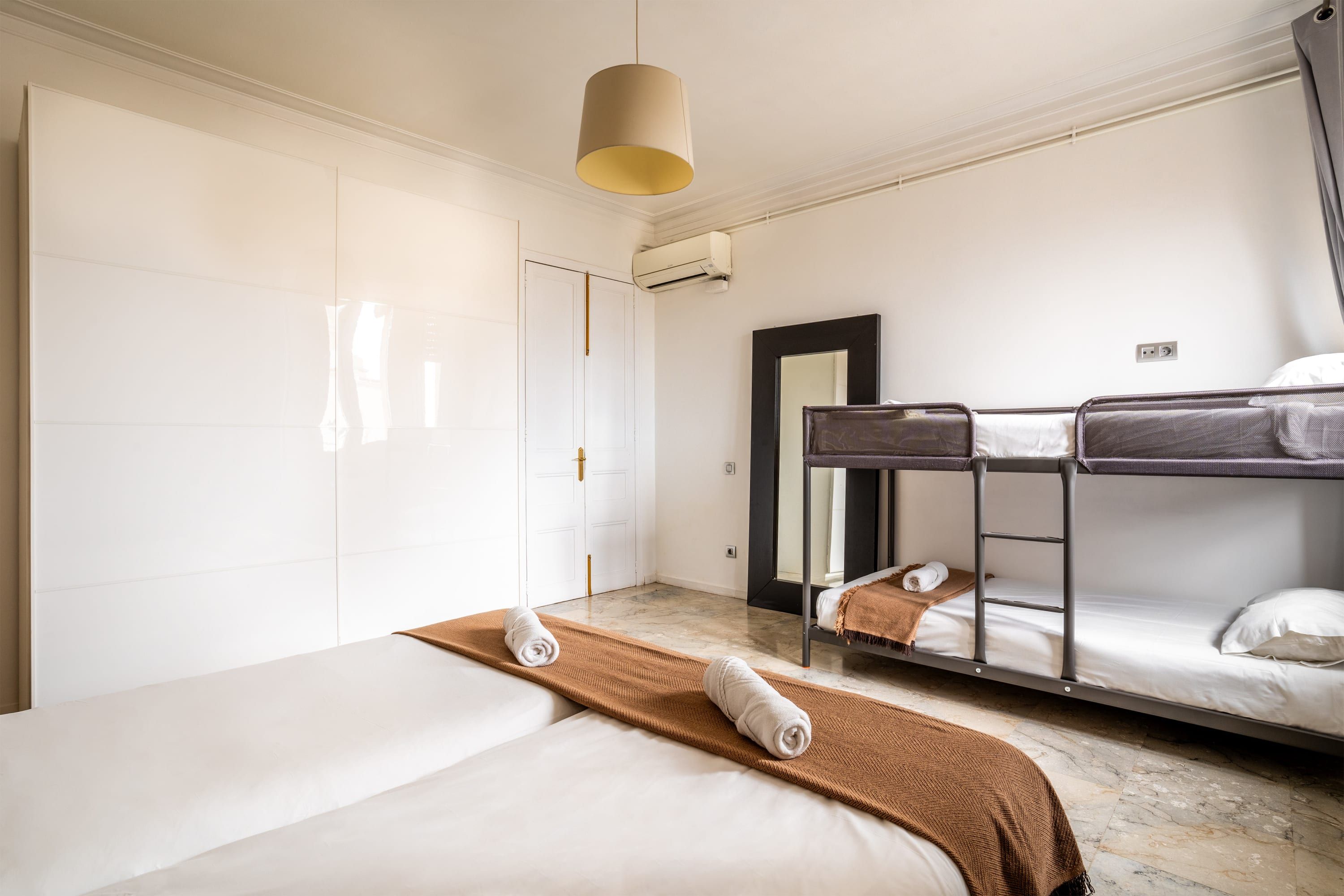 Situated in the heart of Barcelona, a stone’s throw from Plaça de Catalunya and a short walk from the bustling La Rambla, this apartment is a no-fuss crash pad. At capacity, there isn’t enough comfortable seating to go around, so we’d recommend this place for smaller groups or those who are always on the go. Self-catering is easy thanks to the fully equipped kitchen, and the dining table doubles as a workspace if you’re visiting on business.