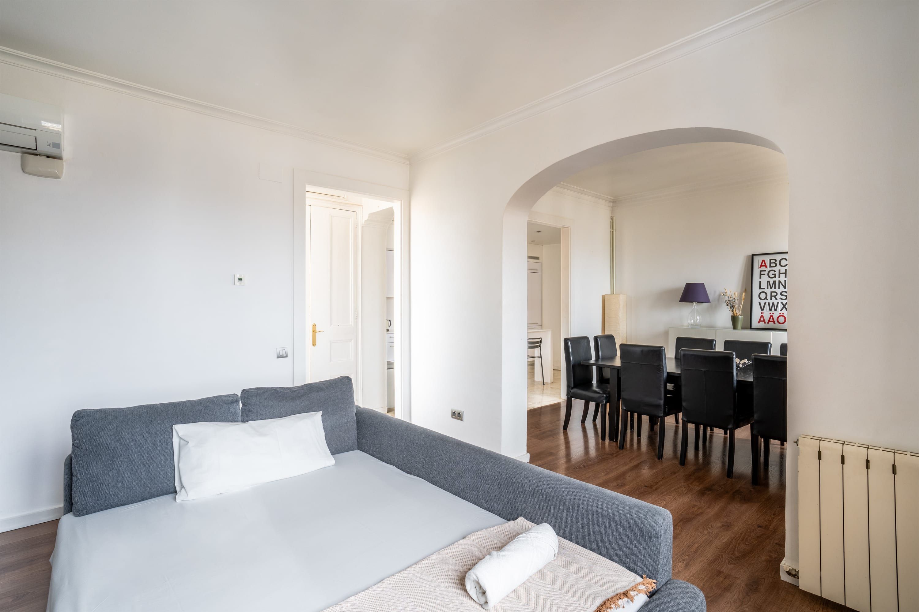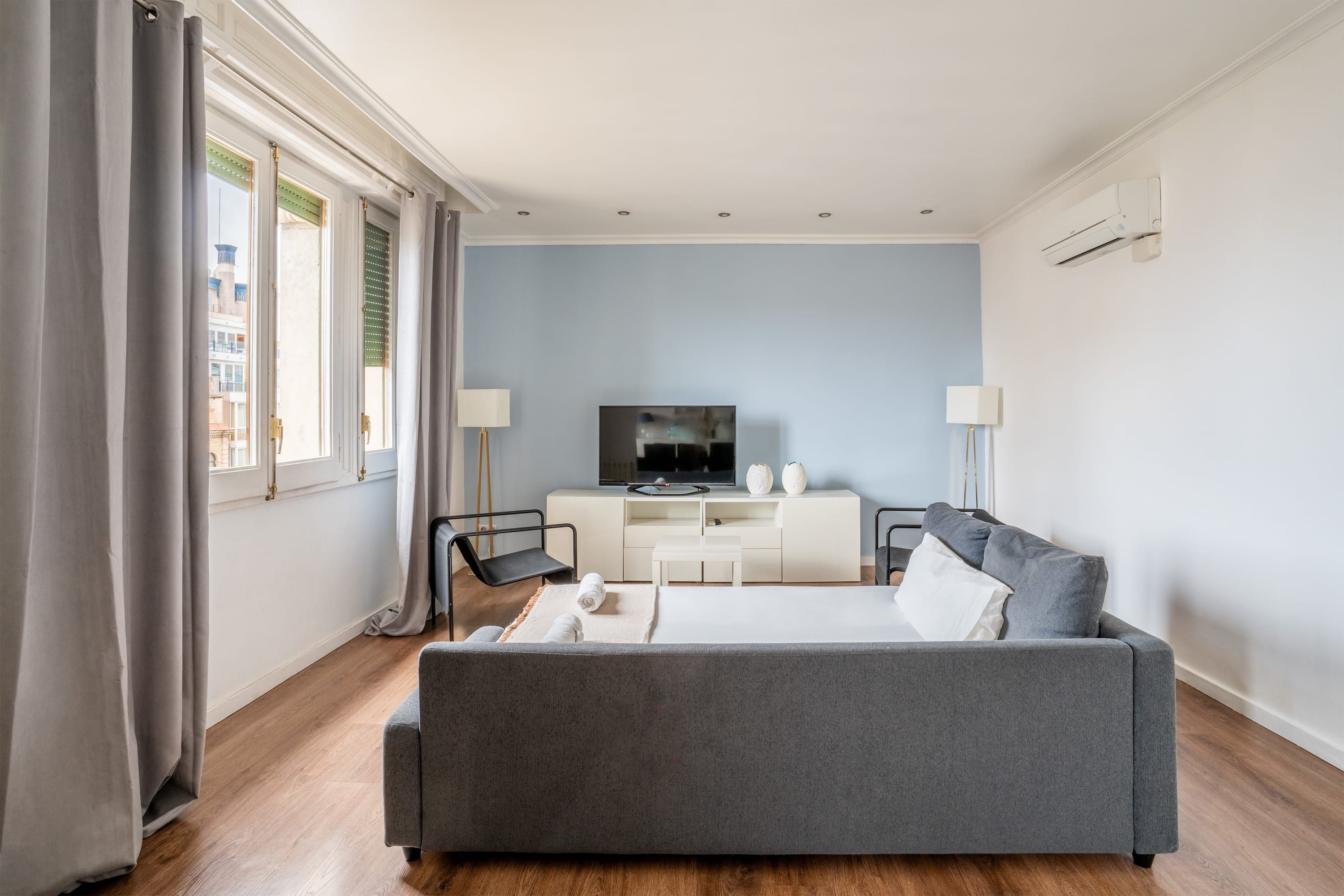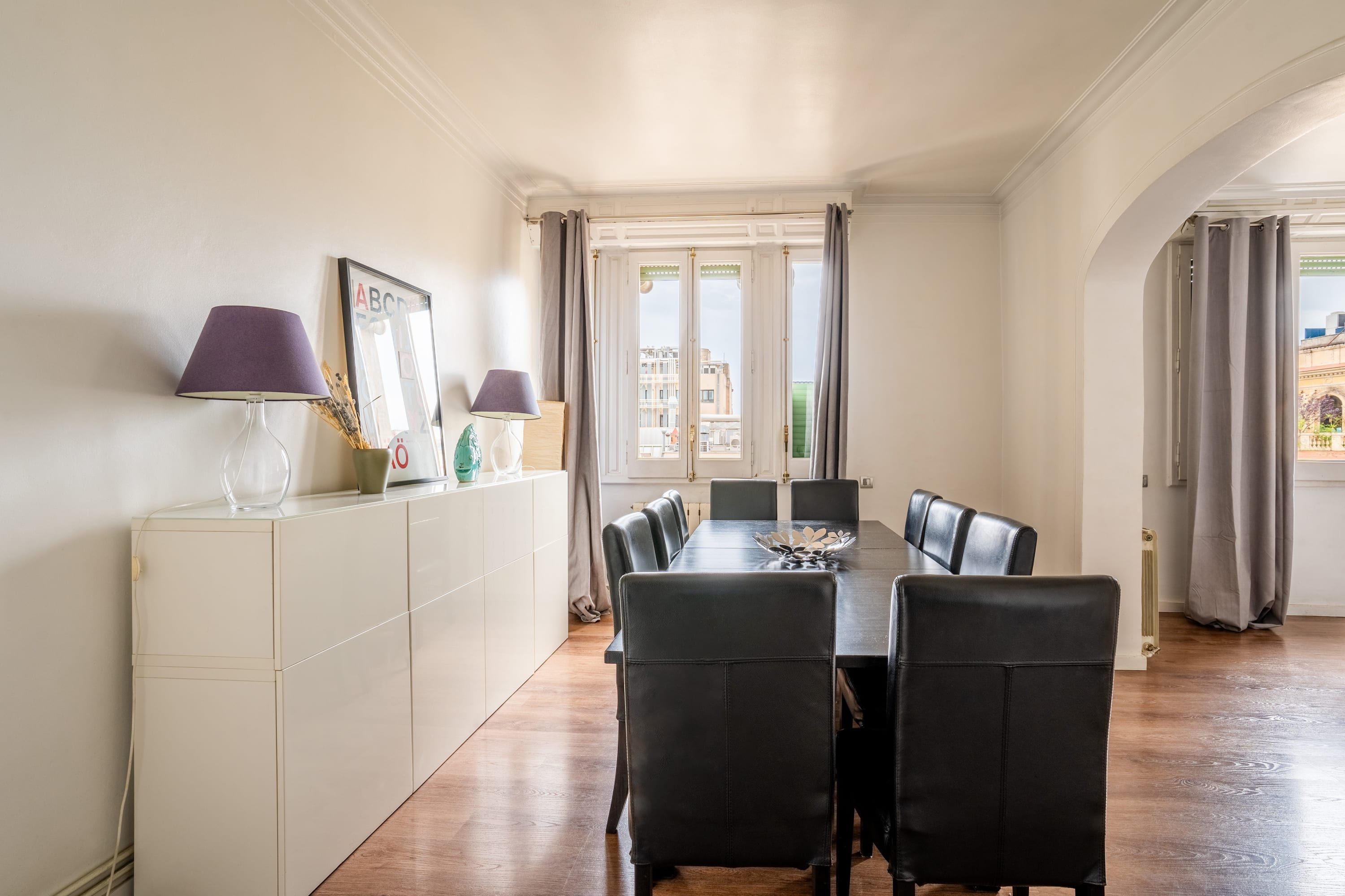 Situated in the heart of Barcelona, a stone’s throw from Plaça de Catalunya and a short walk from the bustling La Rambla, this apartment is a no-fuss crash pad. At capacity, there isn’t enough comfortable seating to go around, so we’d recommend this place for smaller groups or those who are always on the go. Self-catering is easy thanks to the fully equipped kitchen, and the dining table doubles as a workspace if you’re visiting on business.