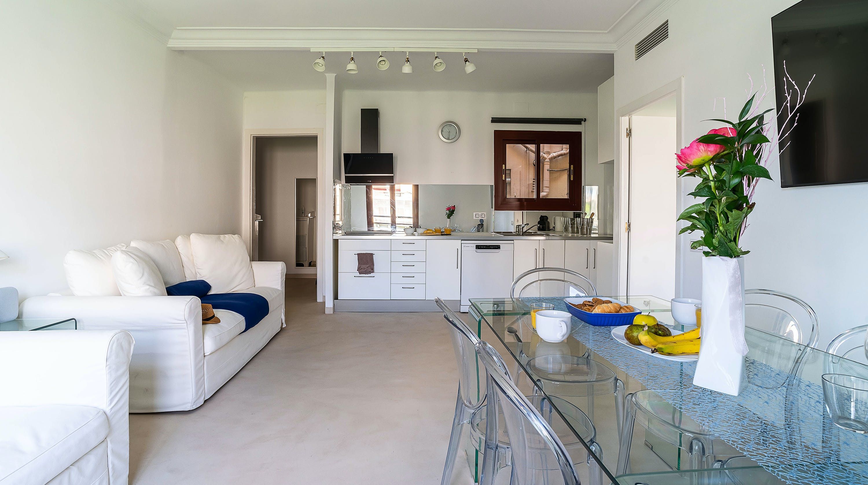 Back at home, the pristine, uncluttered interiors will appeal to all you minimalists out there. Flooded with natural daylight thanks to those floor-to-ceiling Juliet balcony windows, it feels like a breath of fresh air to return to after a day soaking up all that Gaudi extravagance in the streets below.
