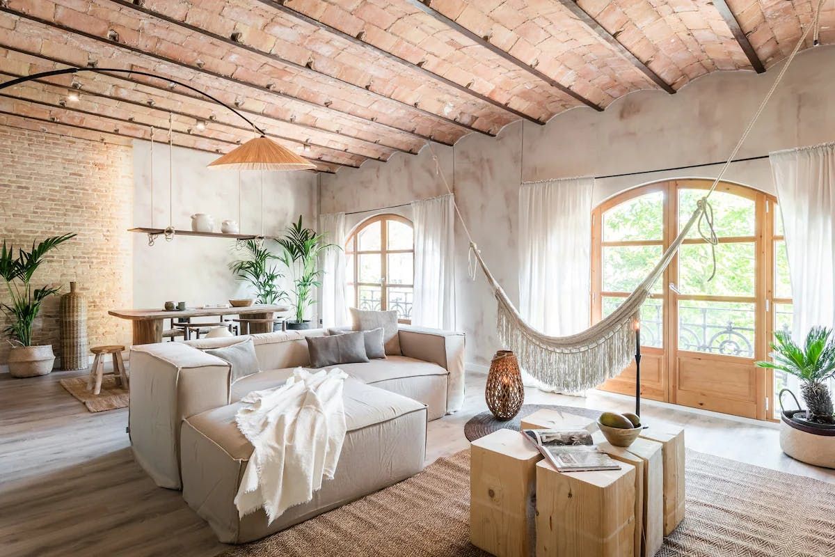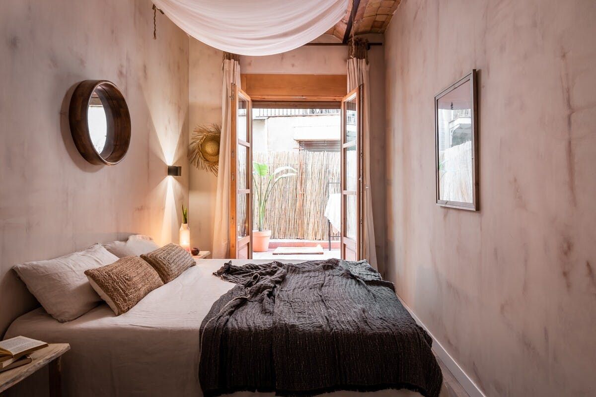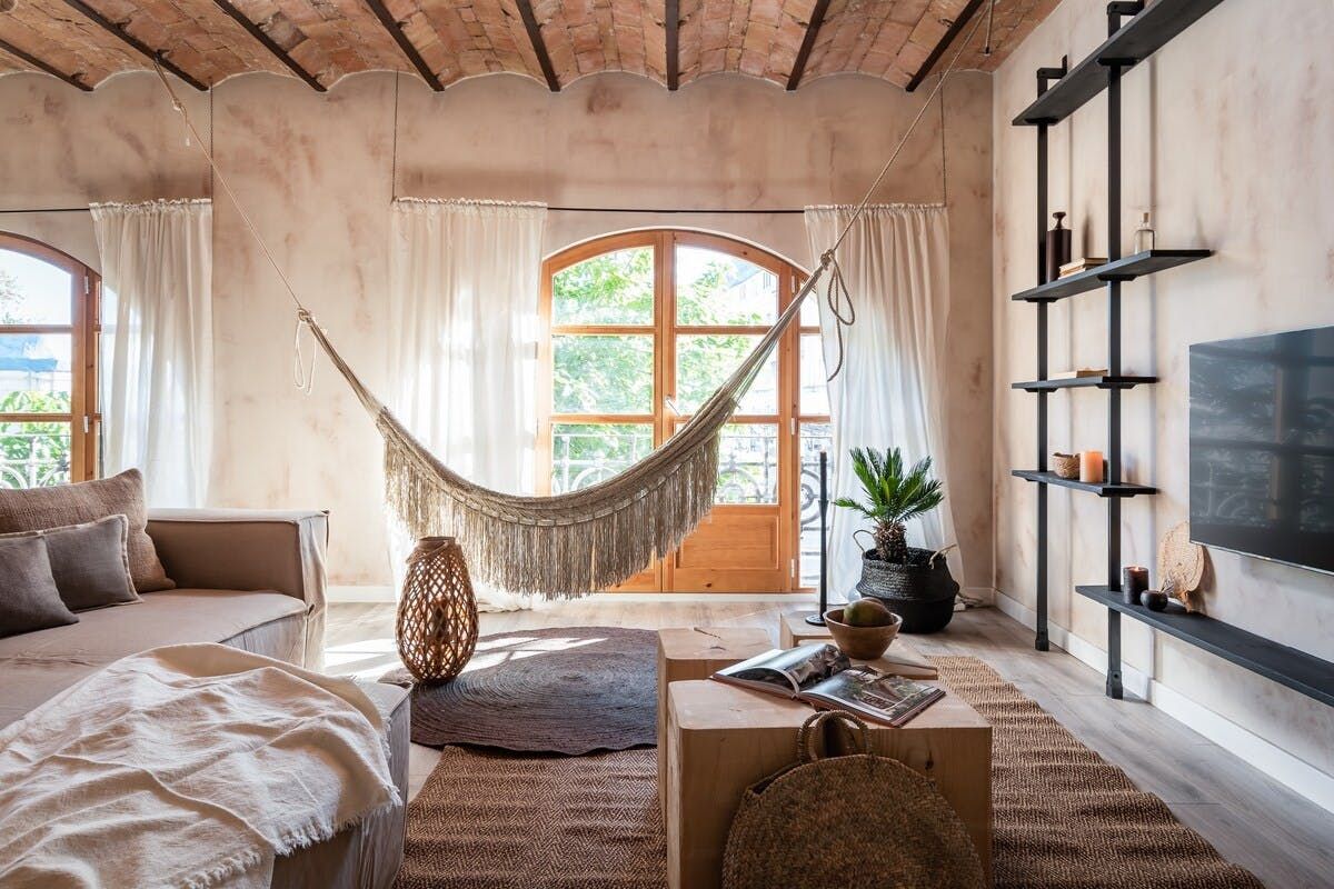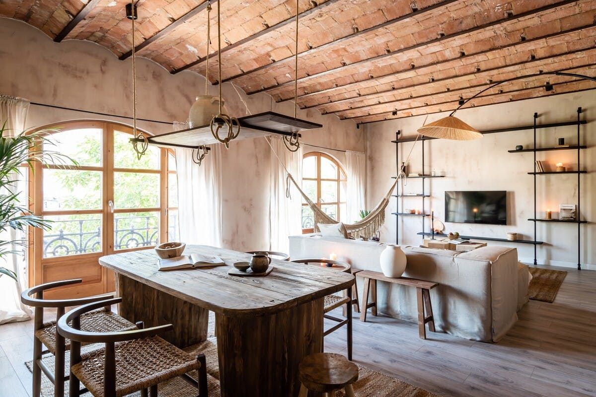 If you’re staying in El Born, one of Barcelona’s trendiest neighbourhoods, then you need an apartment to match – fortunately, this beachy boho abode is just the ticket. We loved how finca-style ceilings juxtapose the modern, sleek black accents and plaster-effect walls. Straw hanging lamps and an abundance of woven textures add a sense of grounding that encourages you to slow down and switch off. And where better to put your feet up than the covered terrace. Spend unhurried mornings sipping milky coffees in the hanging chair before setting the table ready for a breakfast of local produce.