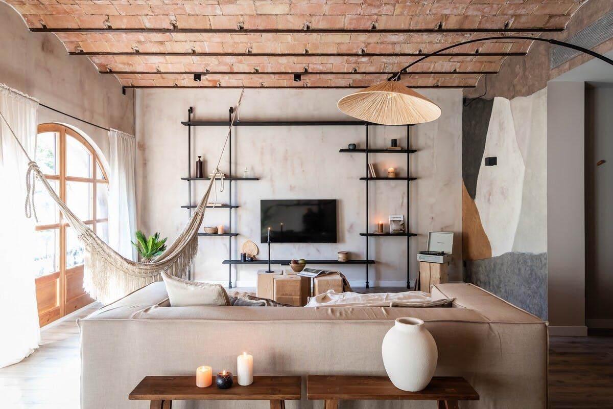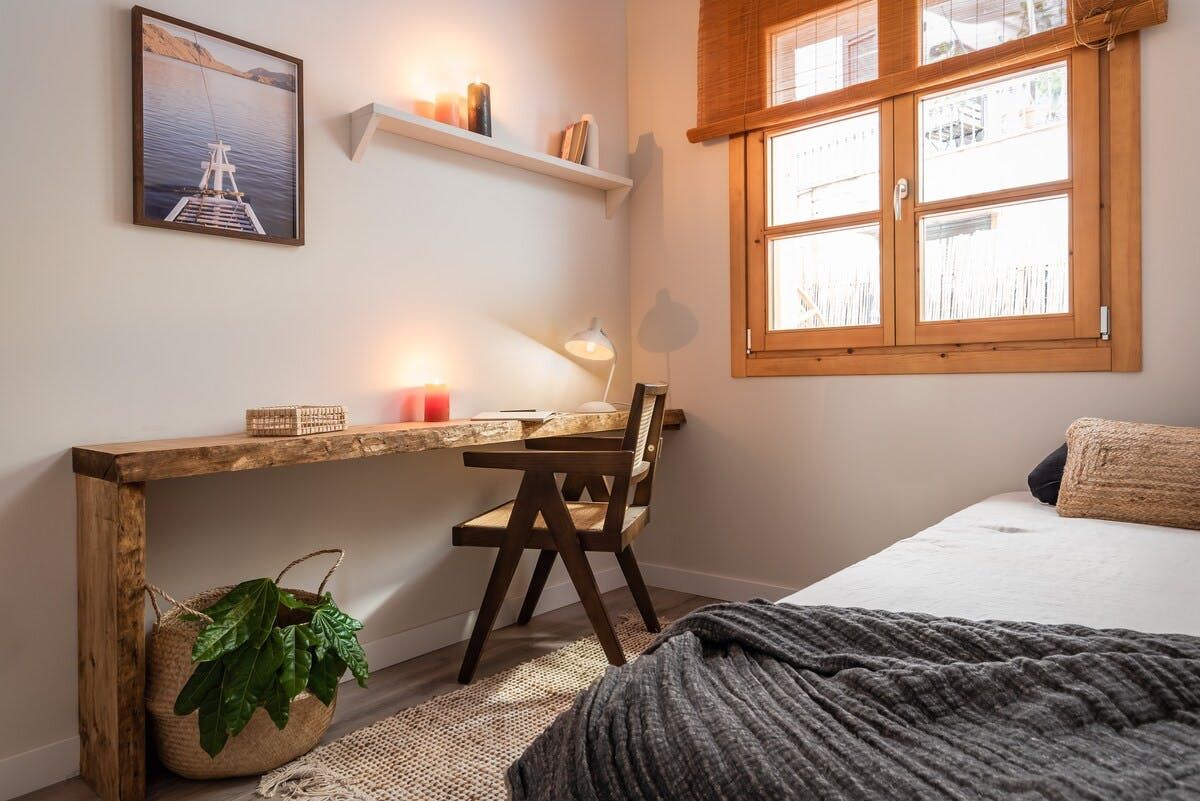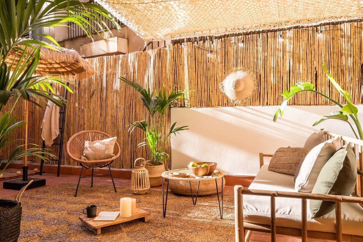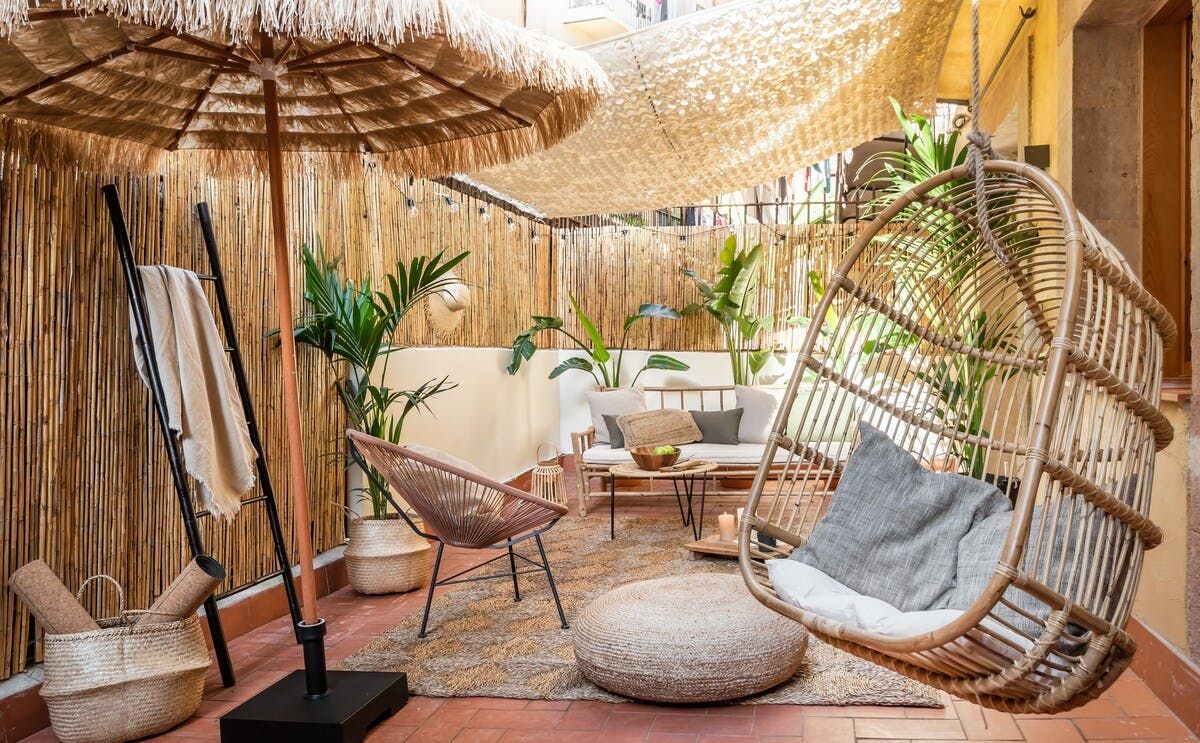 If you’re staying in El Born, one of Barcelona’s trendiest neighbourhoods, then you need an apartment to match – fortunately, this beachy boho abode is just the ticket. We loved how finca-style ceilings juxtapose the modern, sleek black accents and plaster-effect walls. Straw hanging lamps and an abundance of woven textures add a sense of grounding that encourages you to slow down and switch off. And where better to put your feet up than the covered terrace. Spend unhurried mornings sipping milky coffees in the hanging chair before setting the table ready for a breakfast of local produce.
